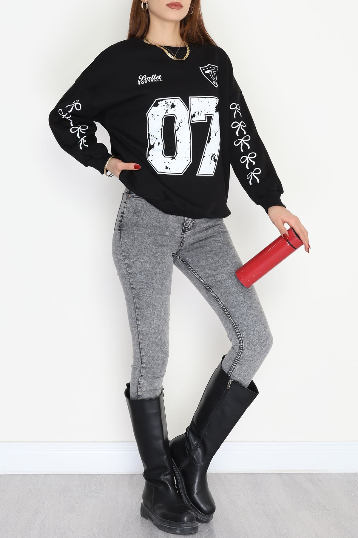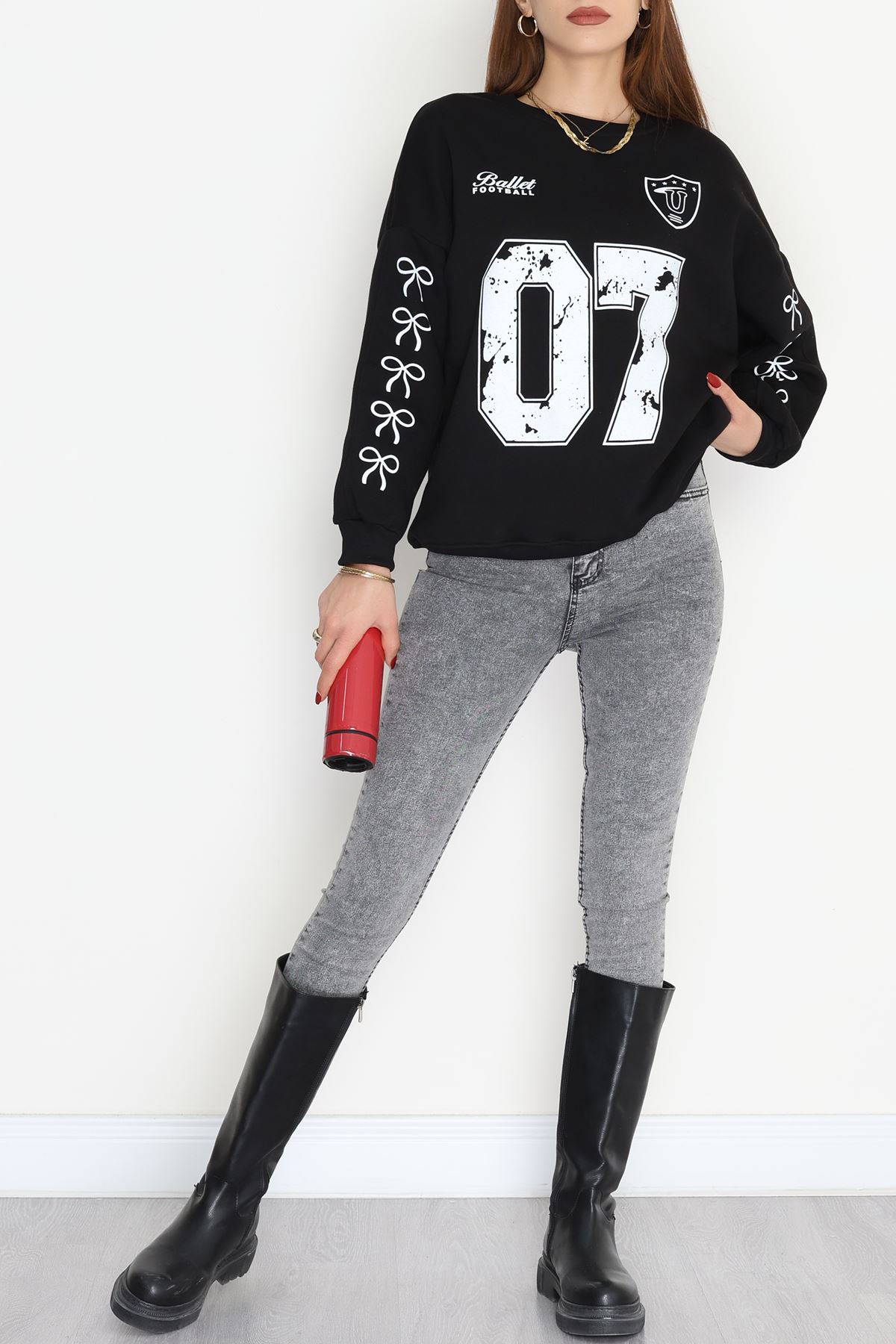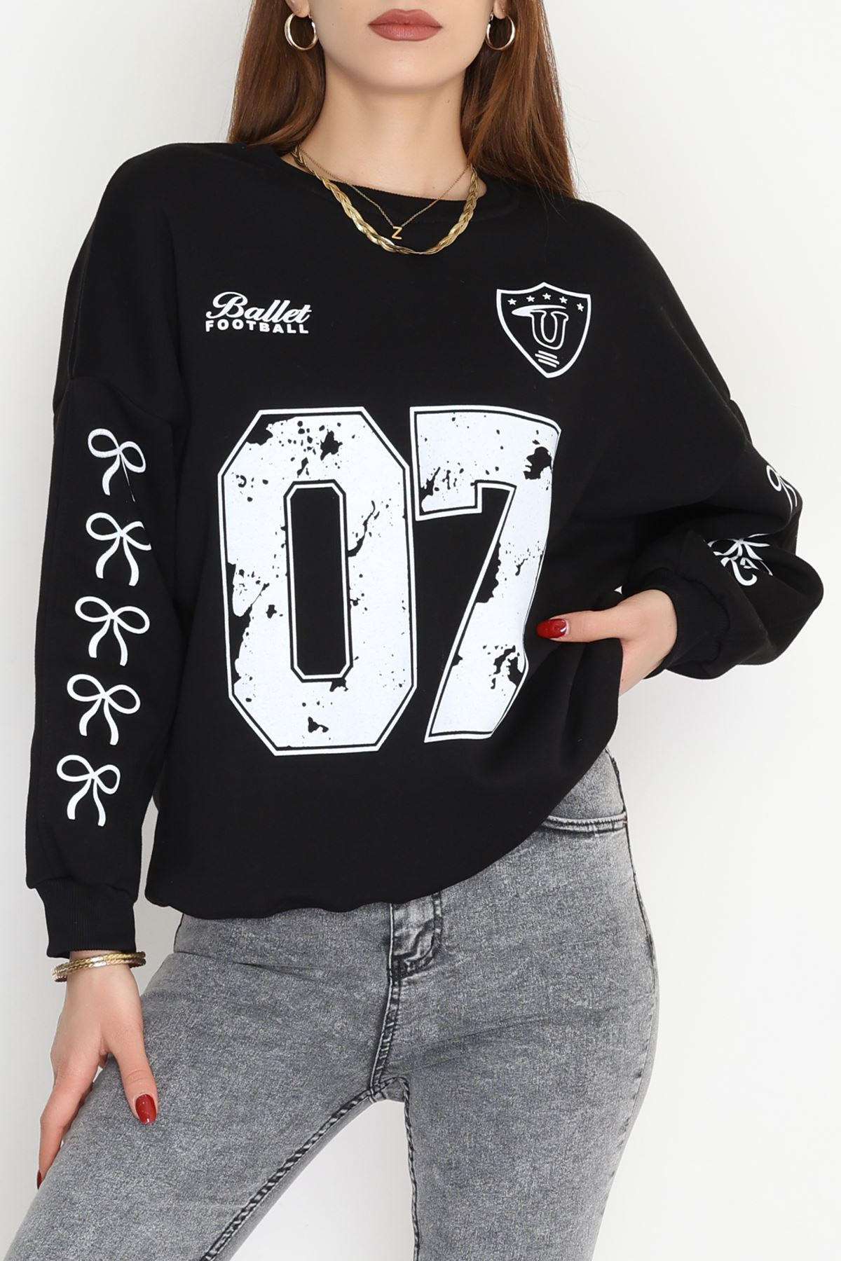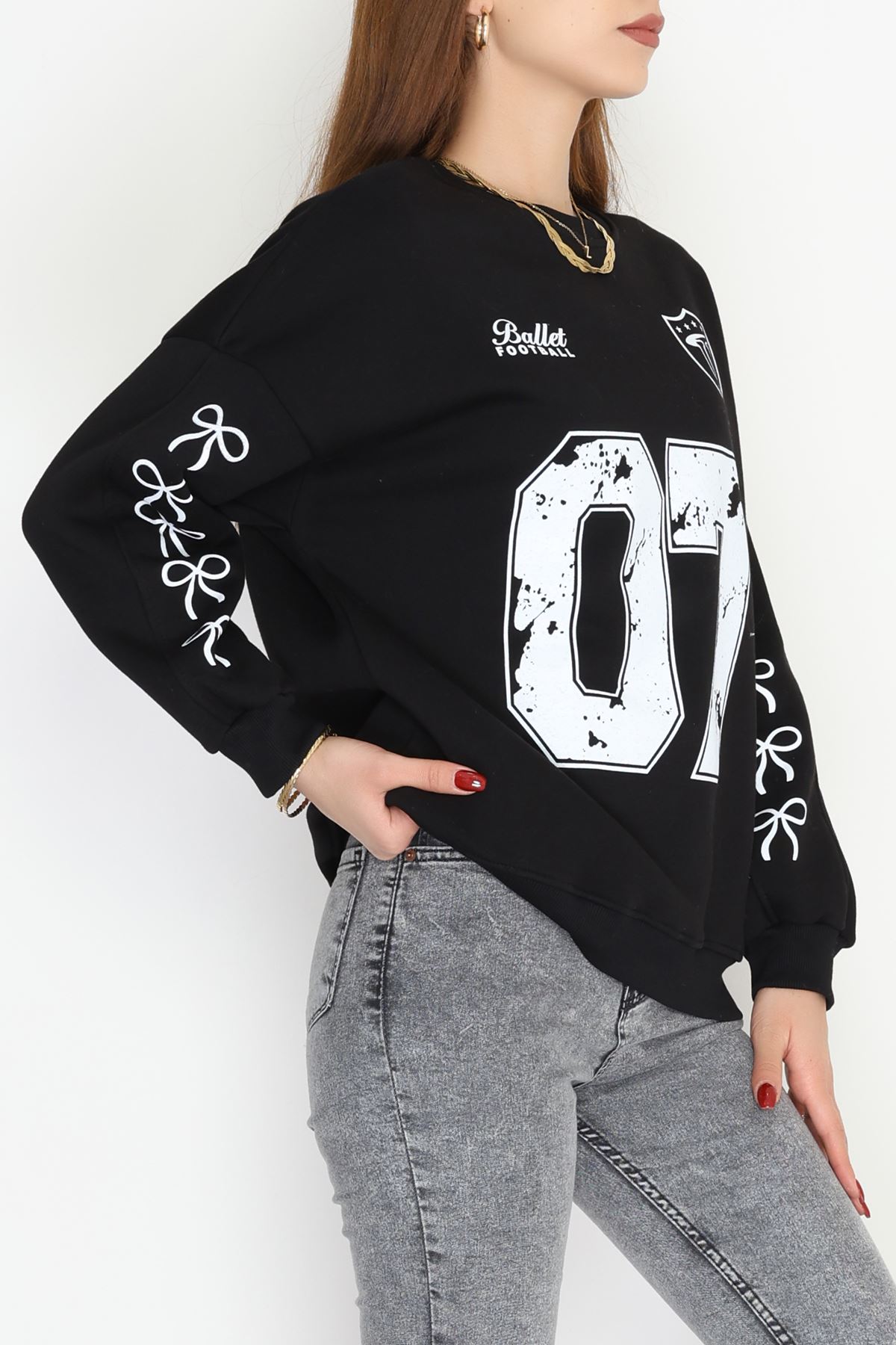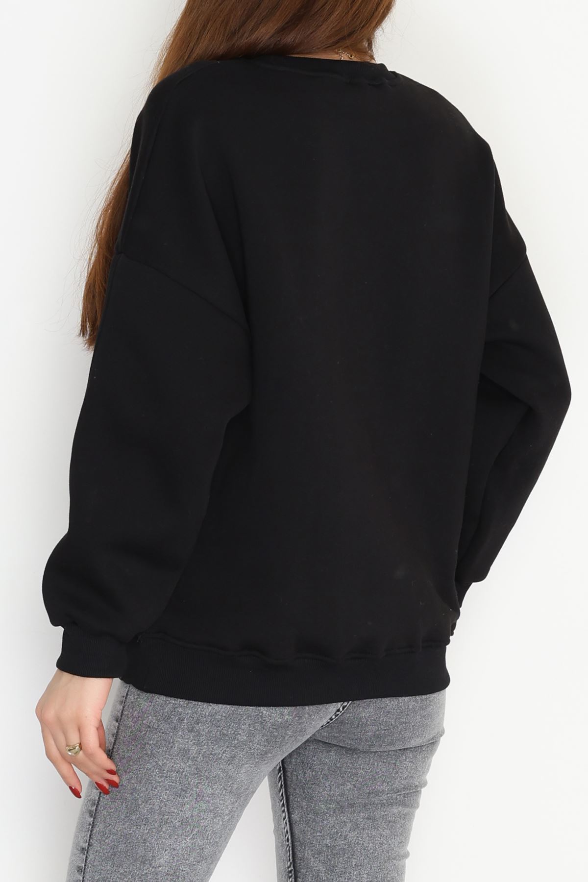 3 İplik Şardonlu Oversize Sweat Siyah - 50920.1878.