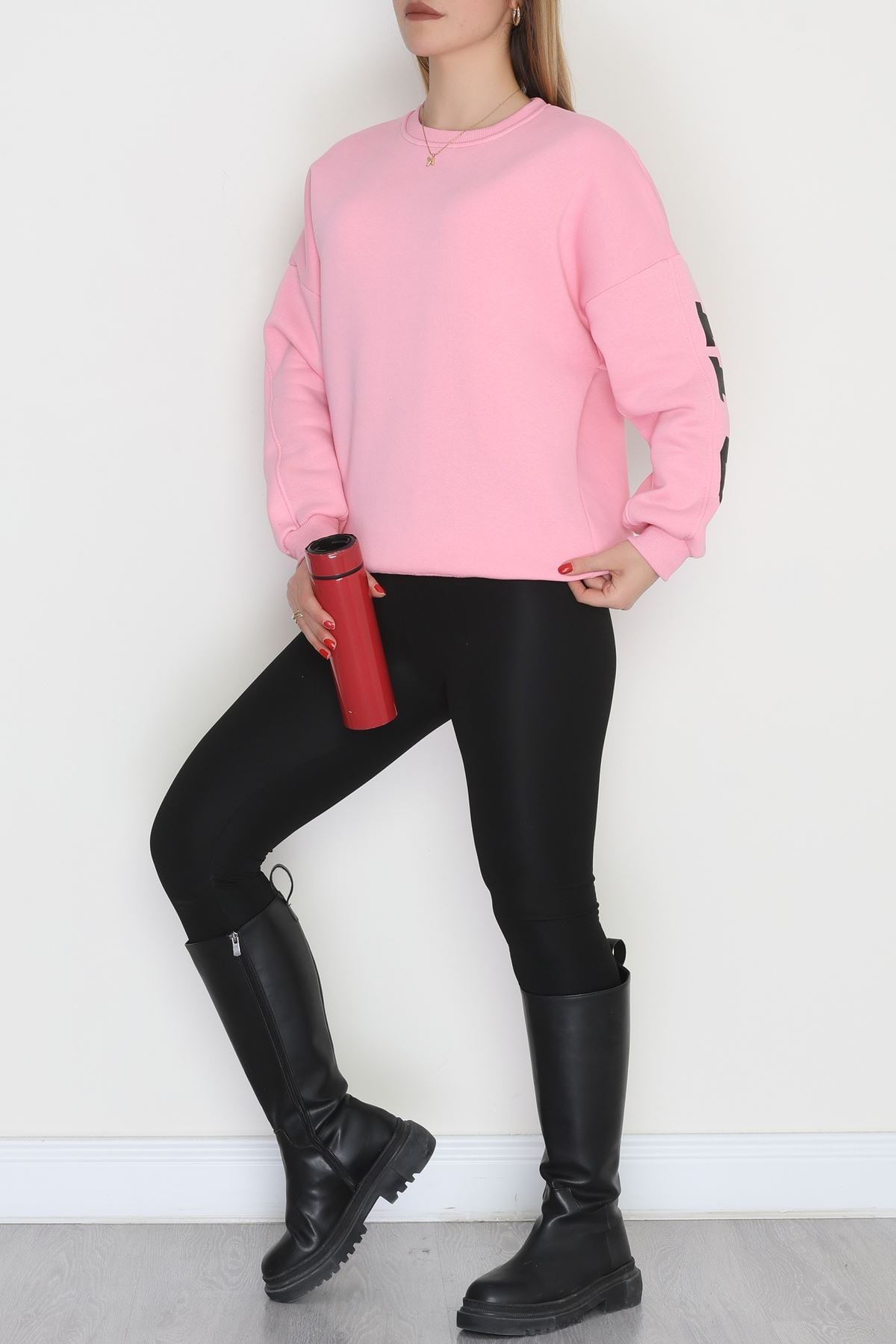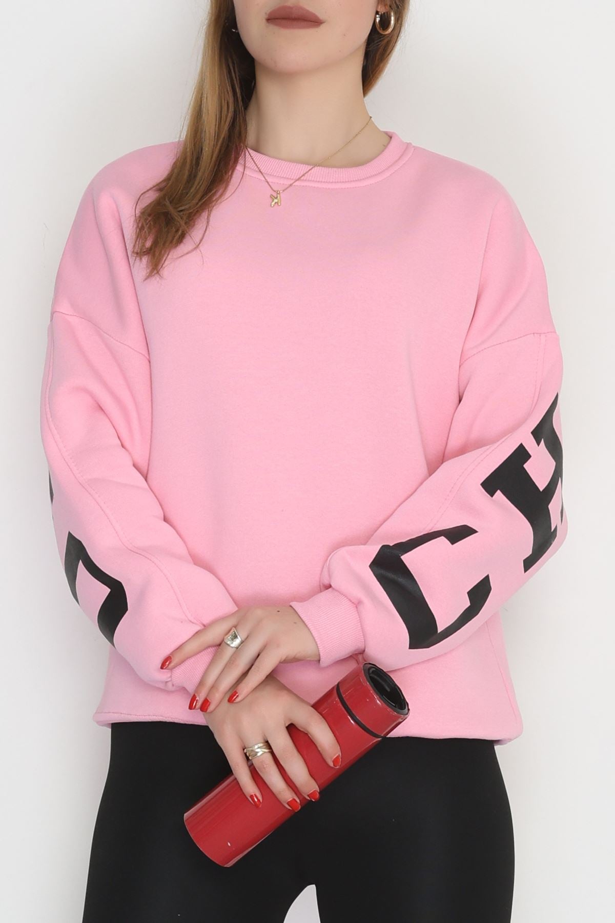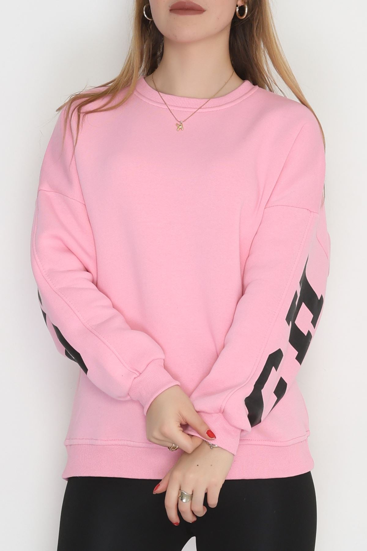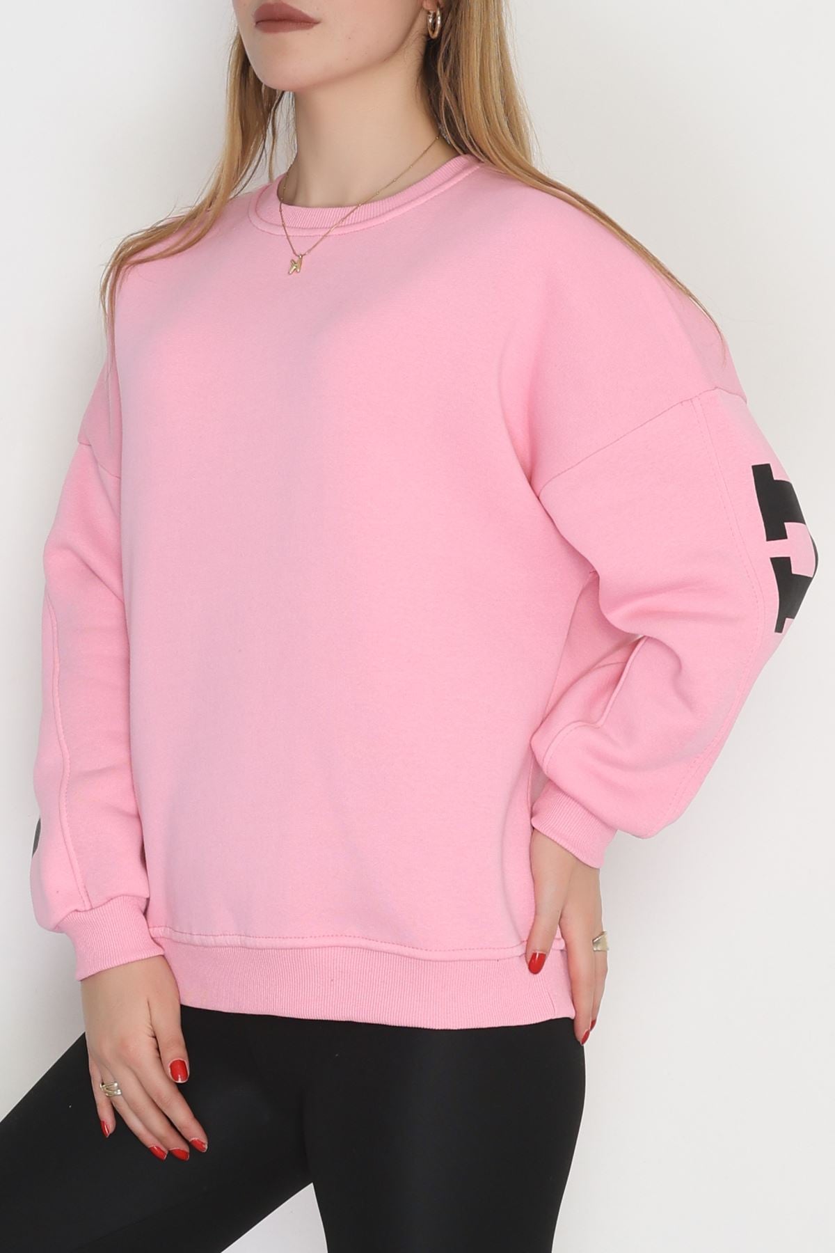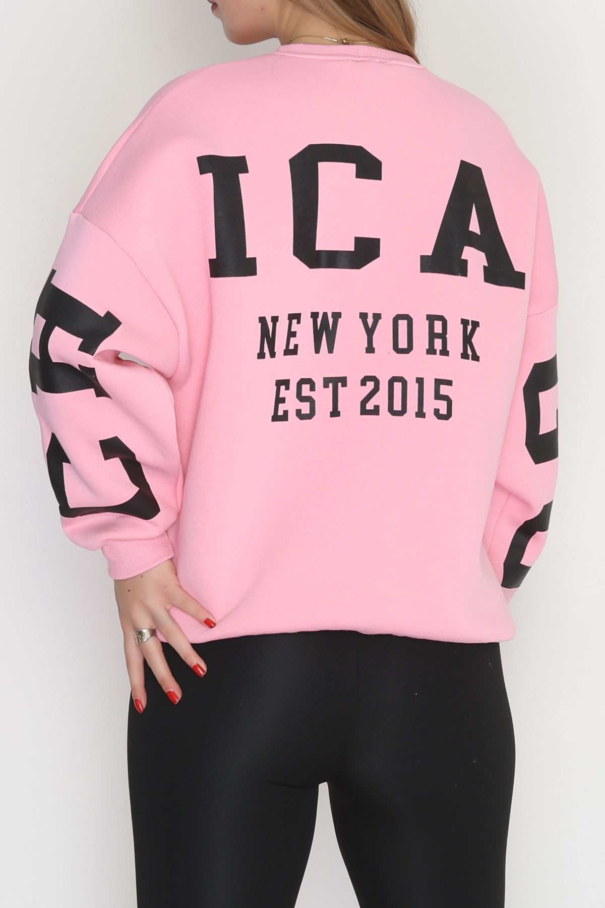 3 İplik Şardonlu Oversize Sweat Açıkpembe - 50923.1878.