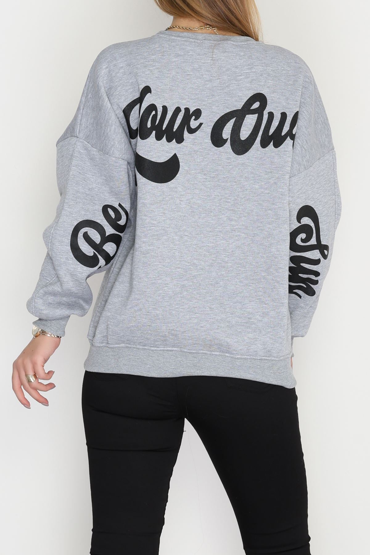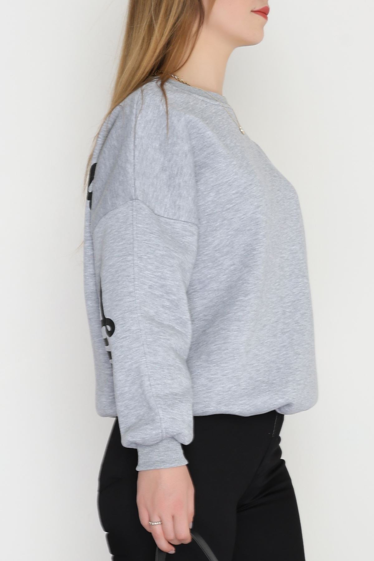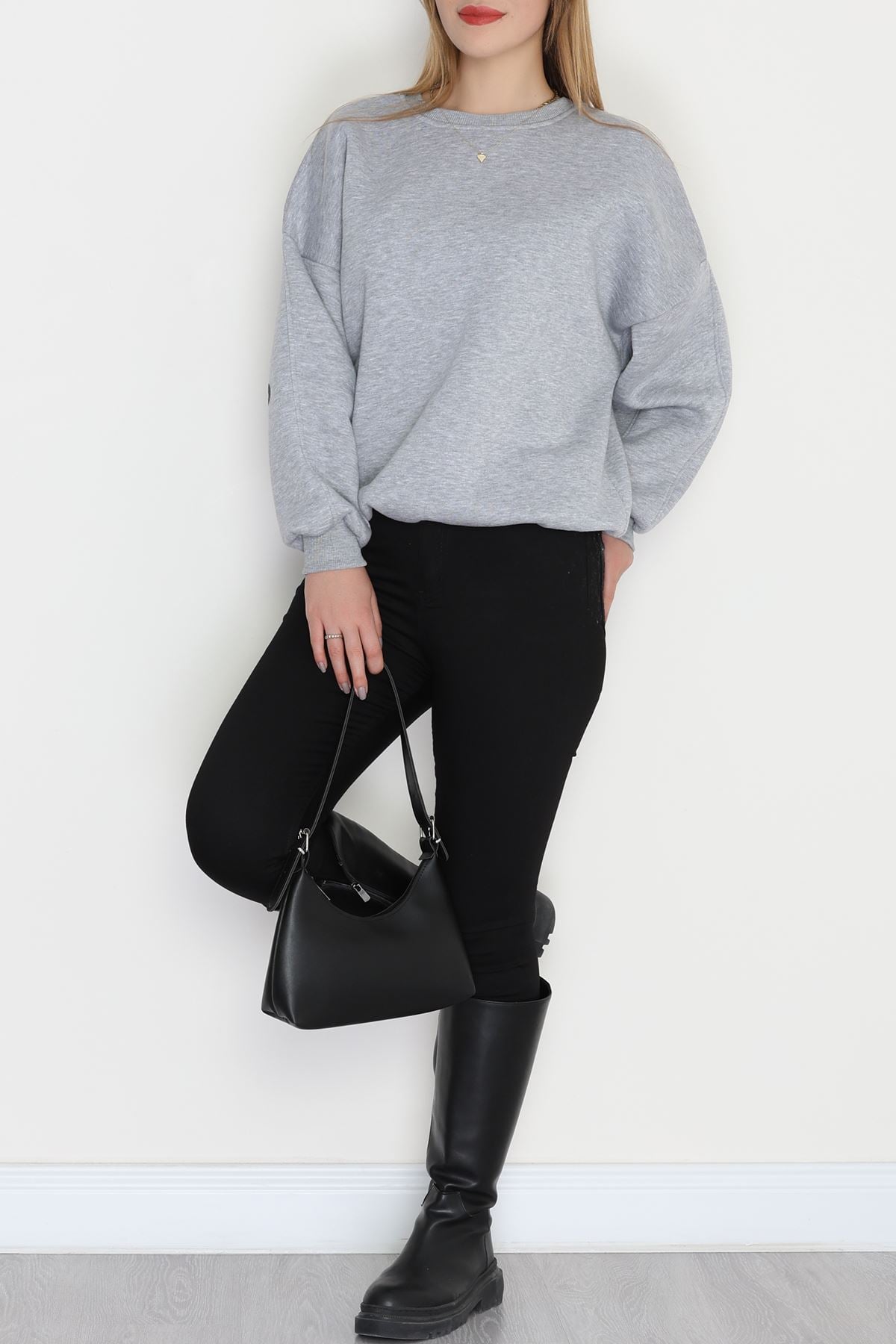 3 İplik Şardonlu Oversize Sweat Gri - 50921.1878.