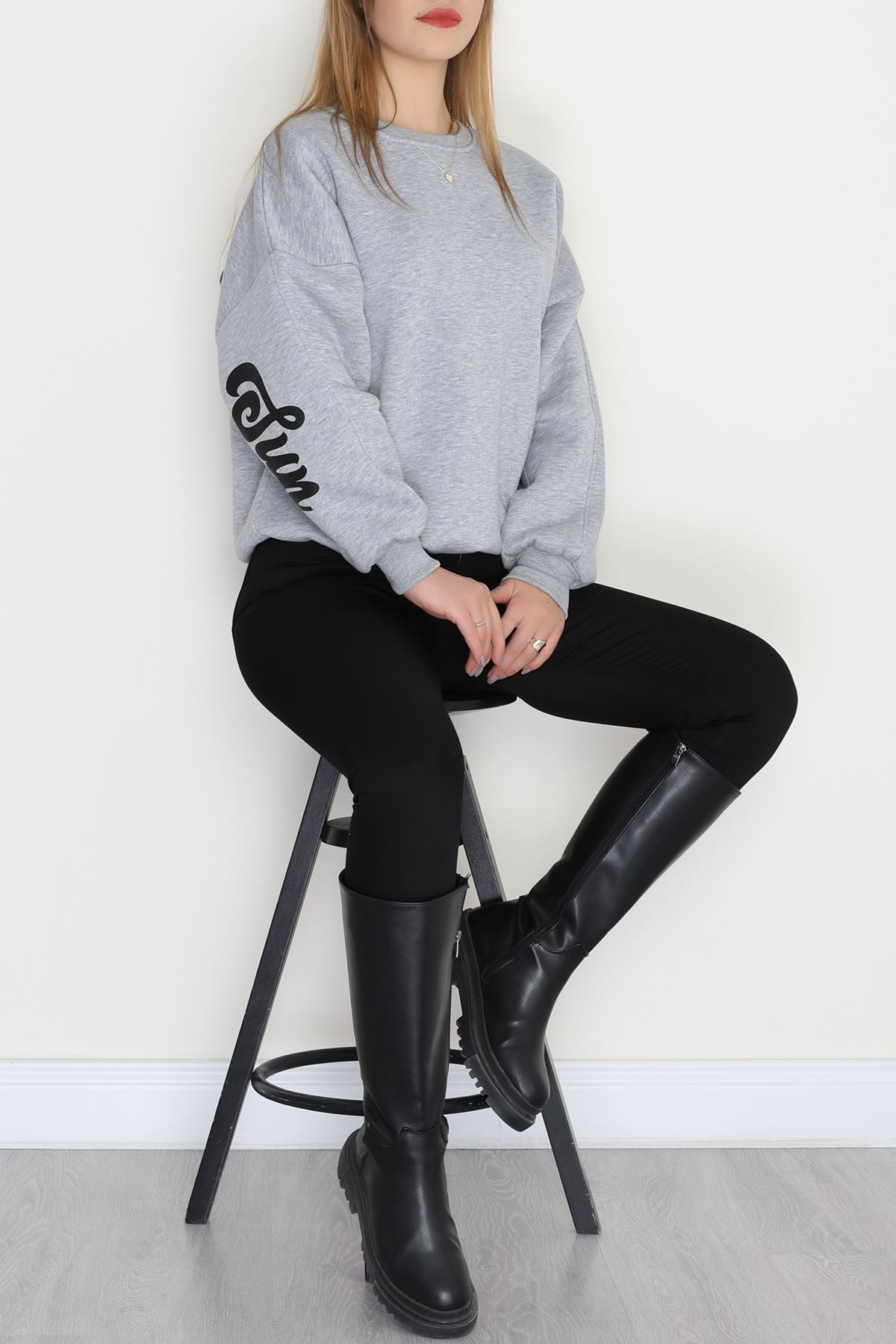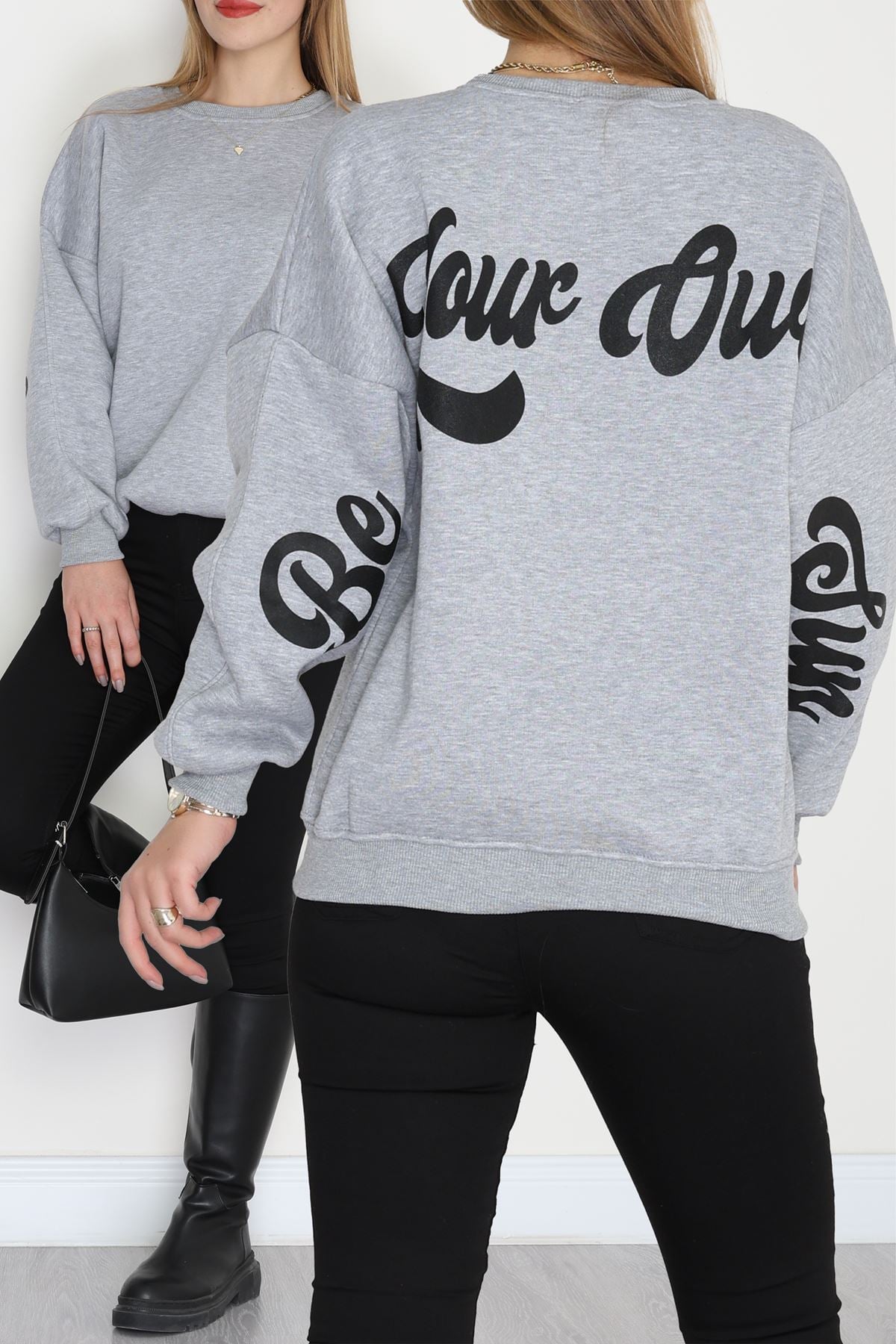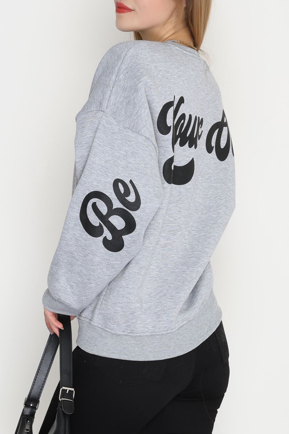 3 İplik Şardonlu Oversize Sweat Gri - 50921.1878.
