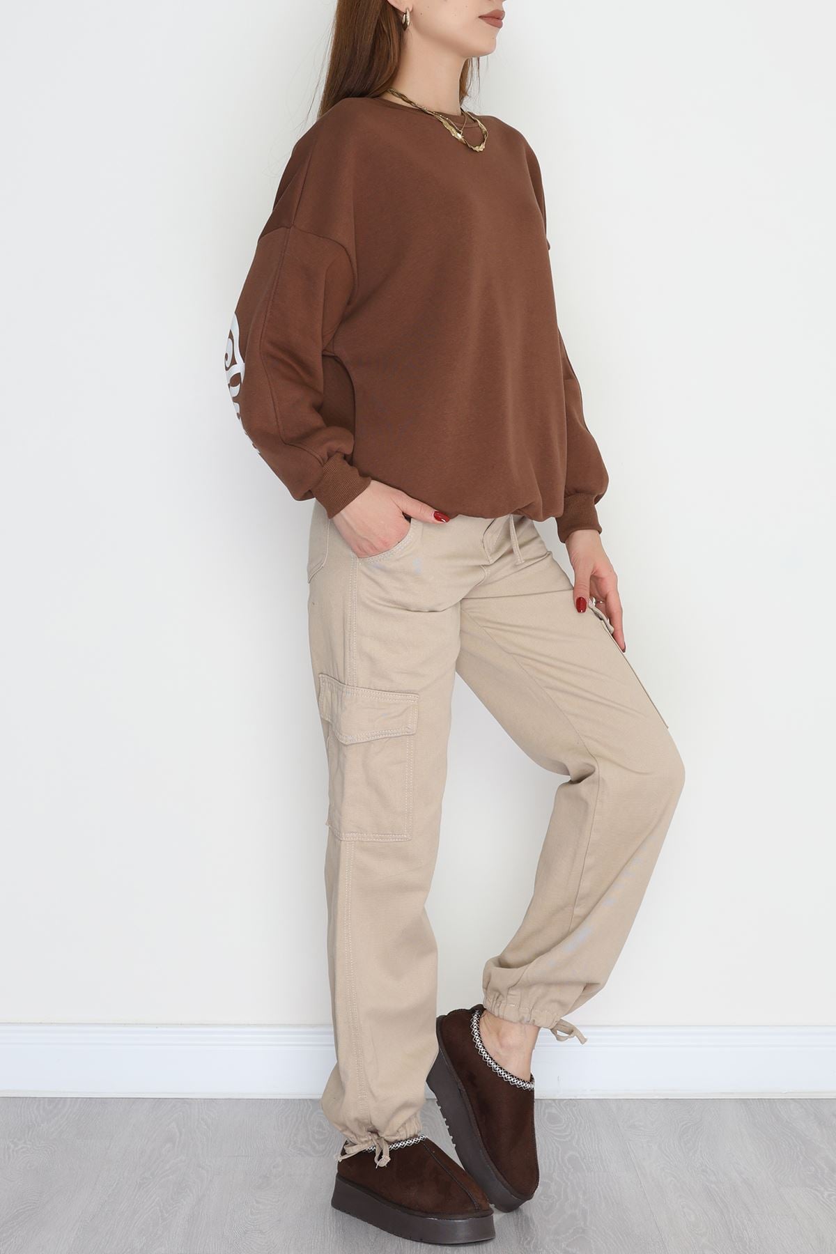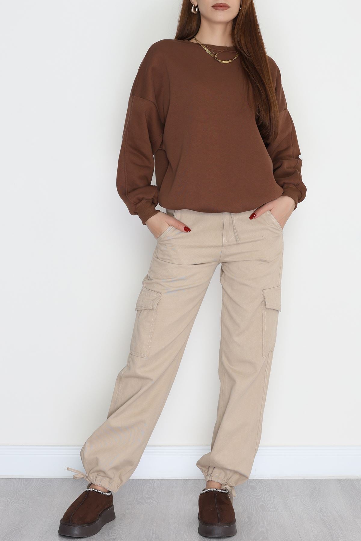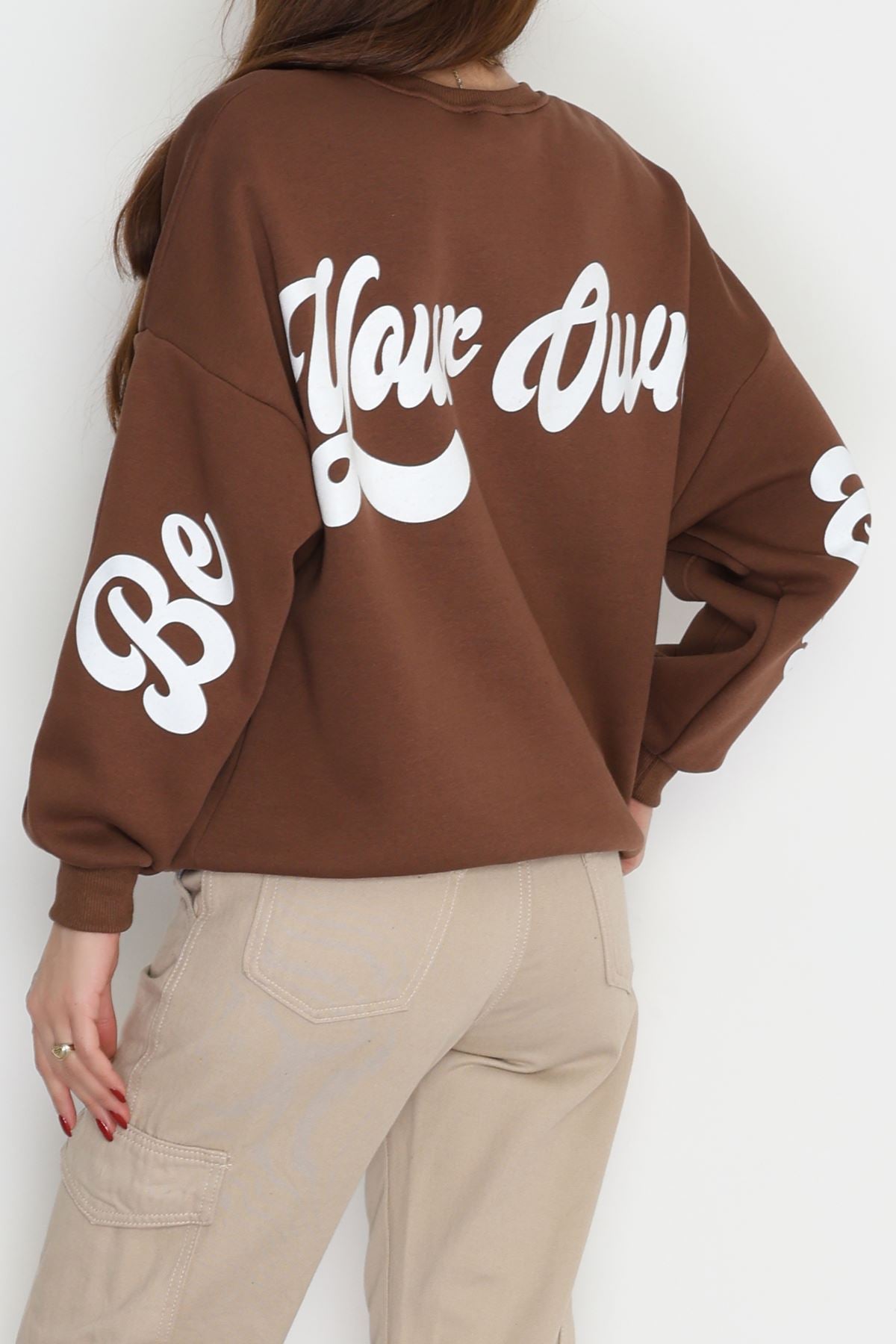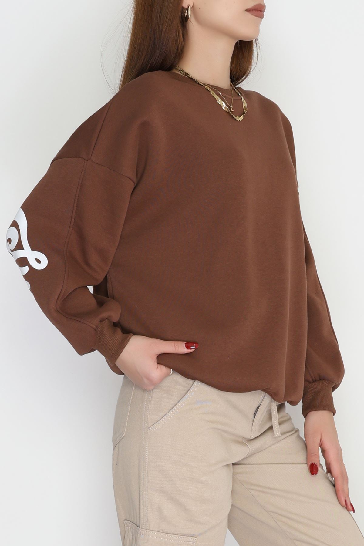 3 İplik Şardonlu Oversize Sweat Kahve - 50921.1878.