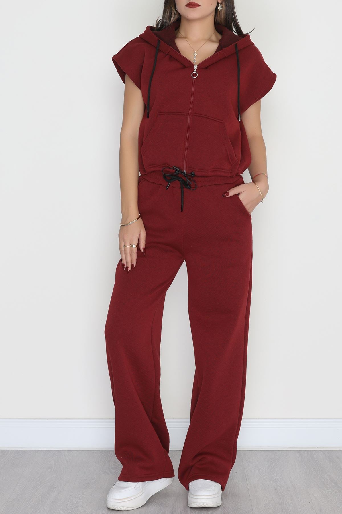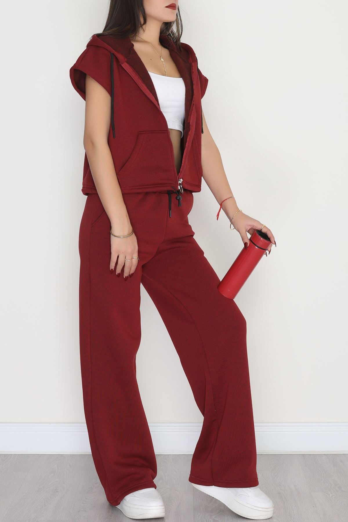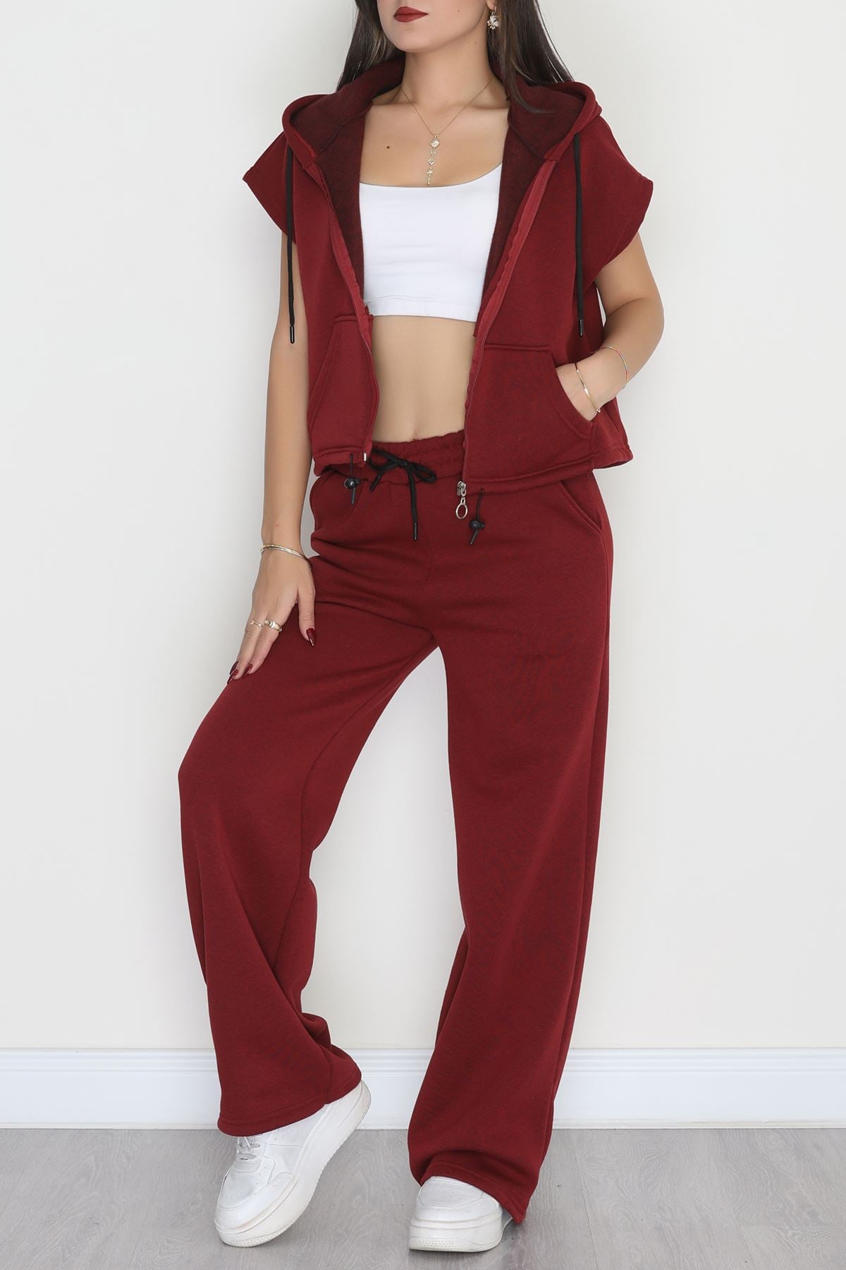 3 İplik Şardonlu Yelekli Takım Bordo - 42200.1857.