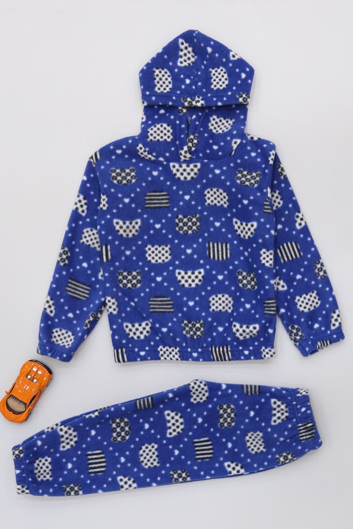 4-10 Yaş Polar Kapşonlu İkili Takım Saks - 52076.1776.