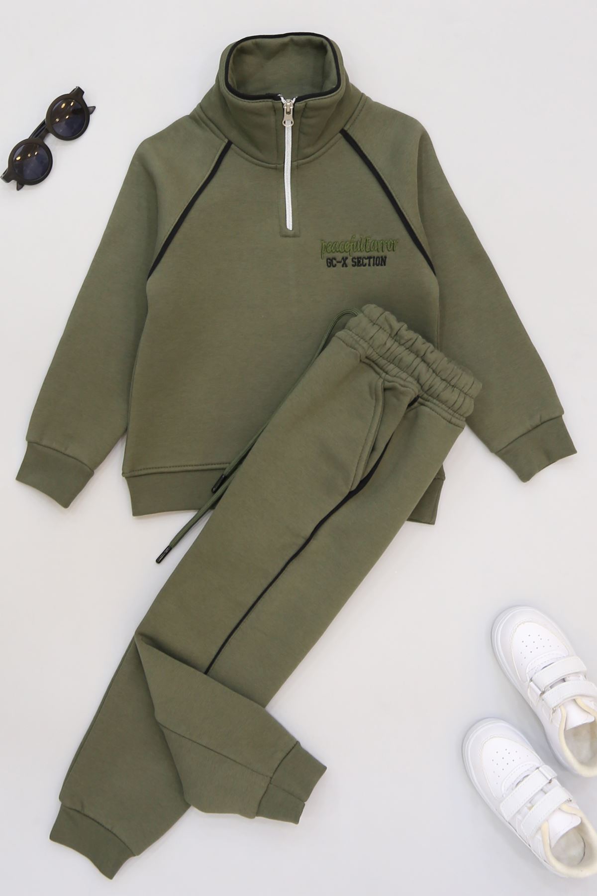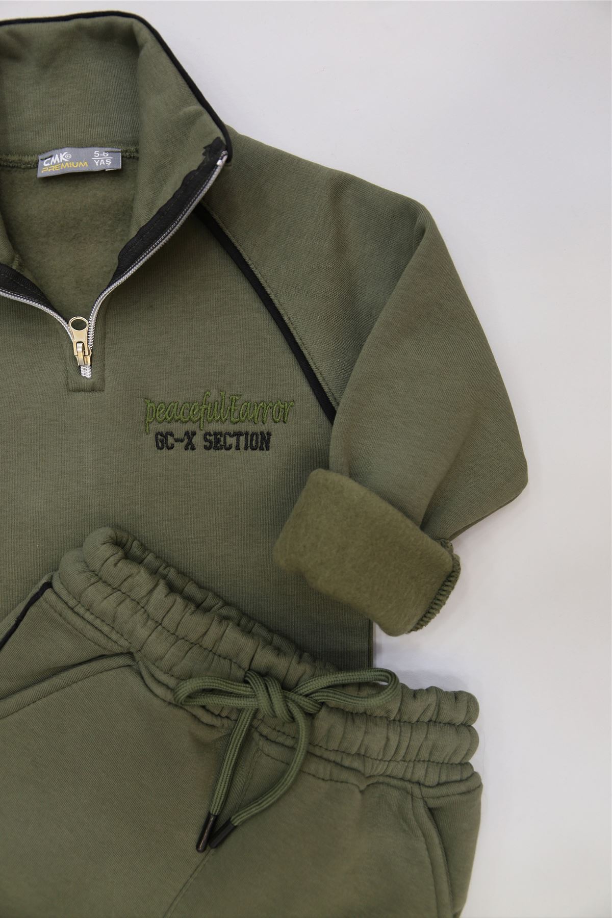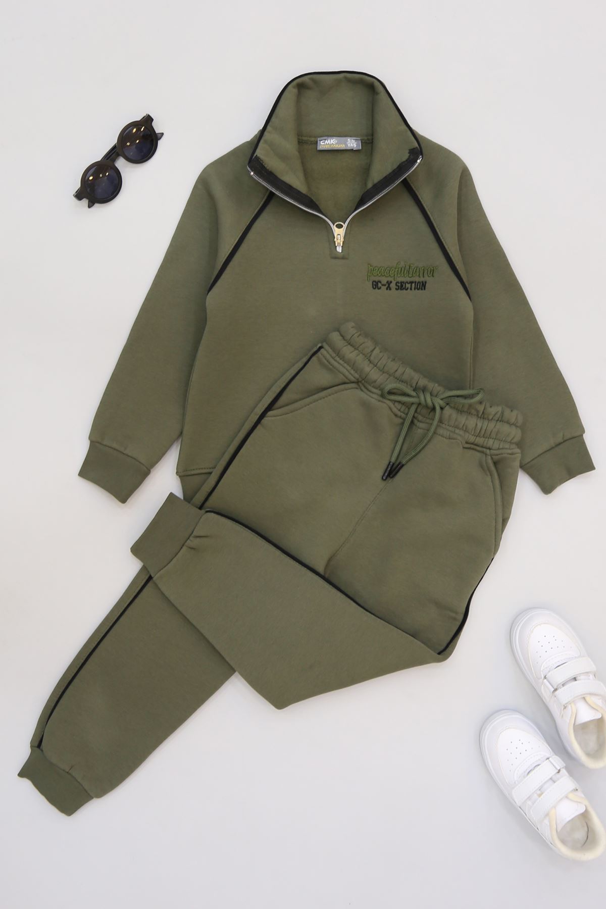 5-12 Yaş 3 İplik Şardonlu Biyeli Takım Haki - 60200.1867.