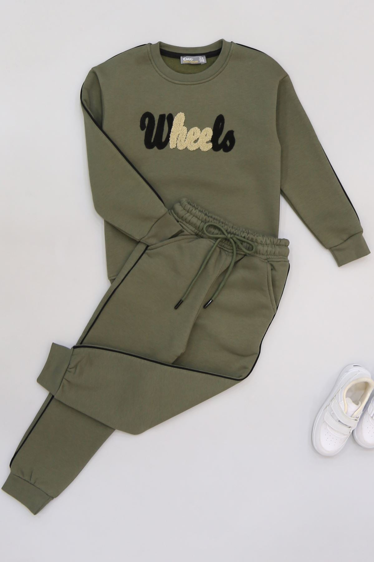 5-12 Yaş 3 İplik Şardonlu Biyeli Takım Haki - 60210.1867.