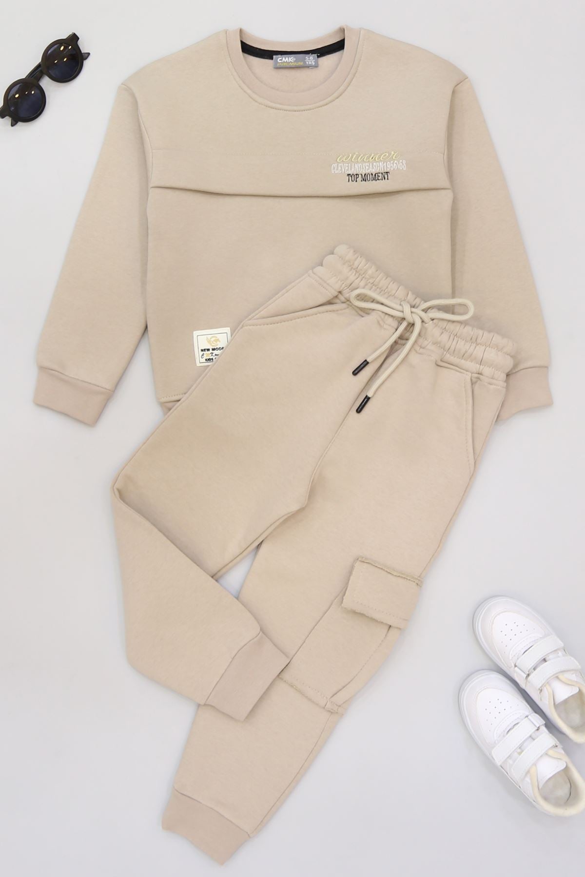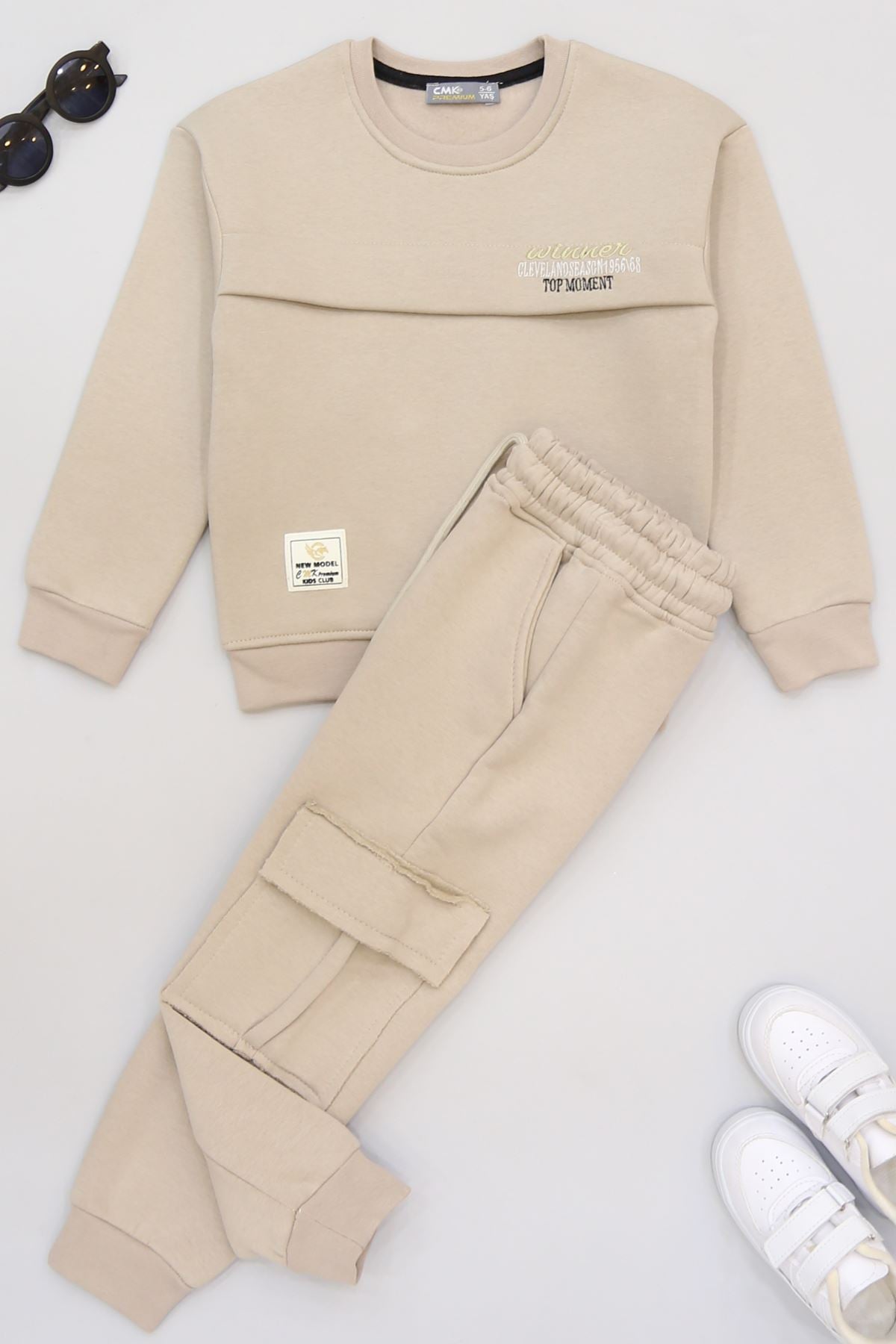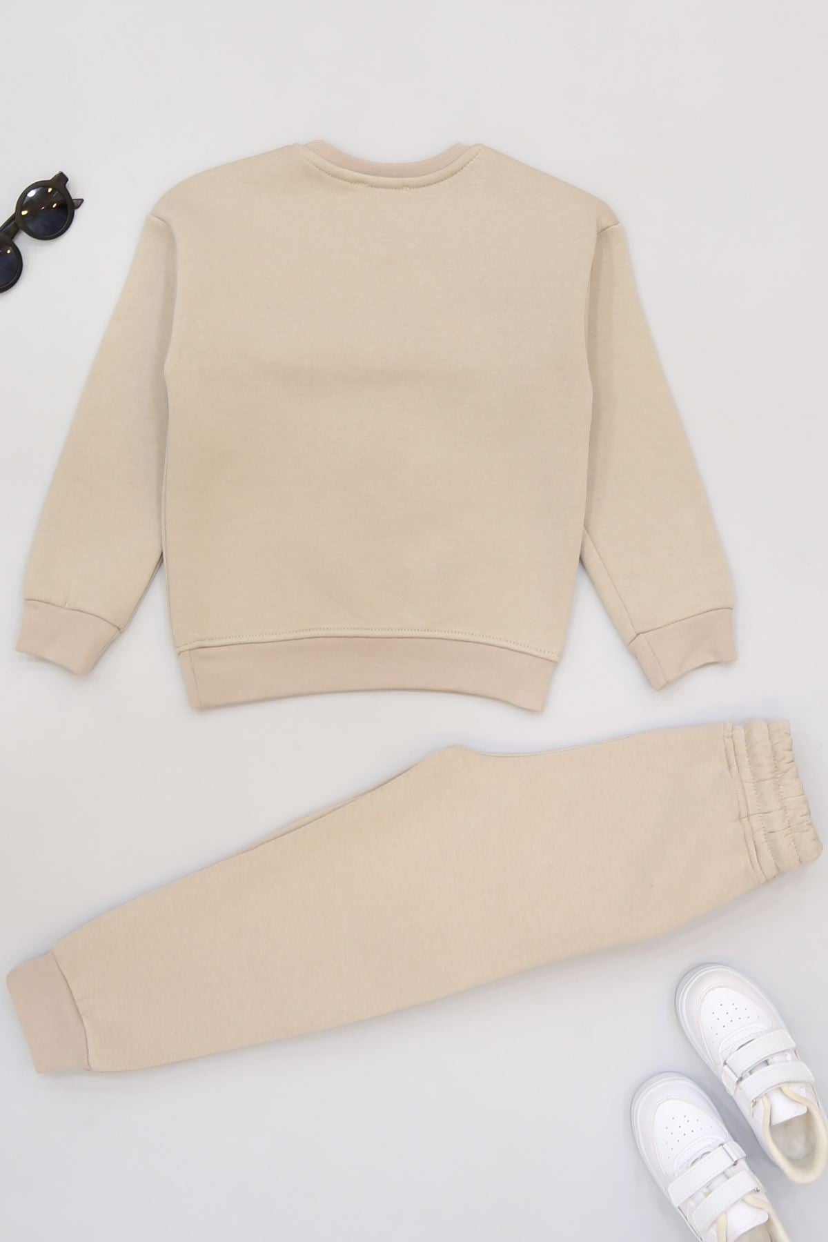 5-12 Yaş 3 İplik Şardonlu Kargo Cep Takım Bej - 60205.1867.