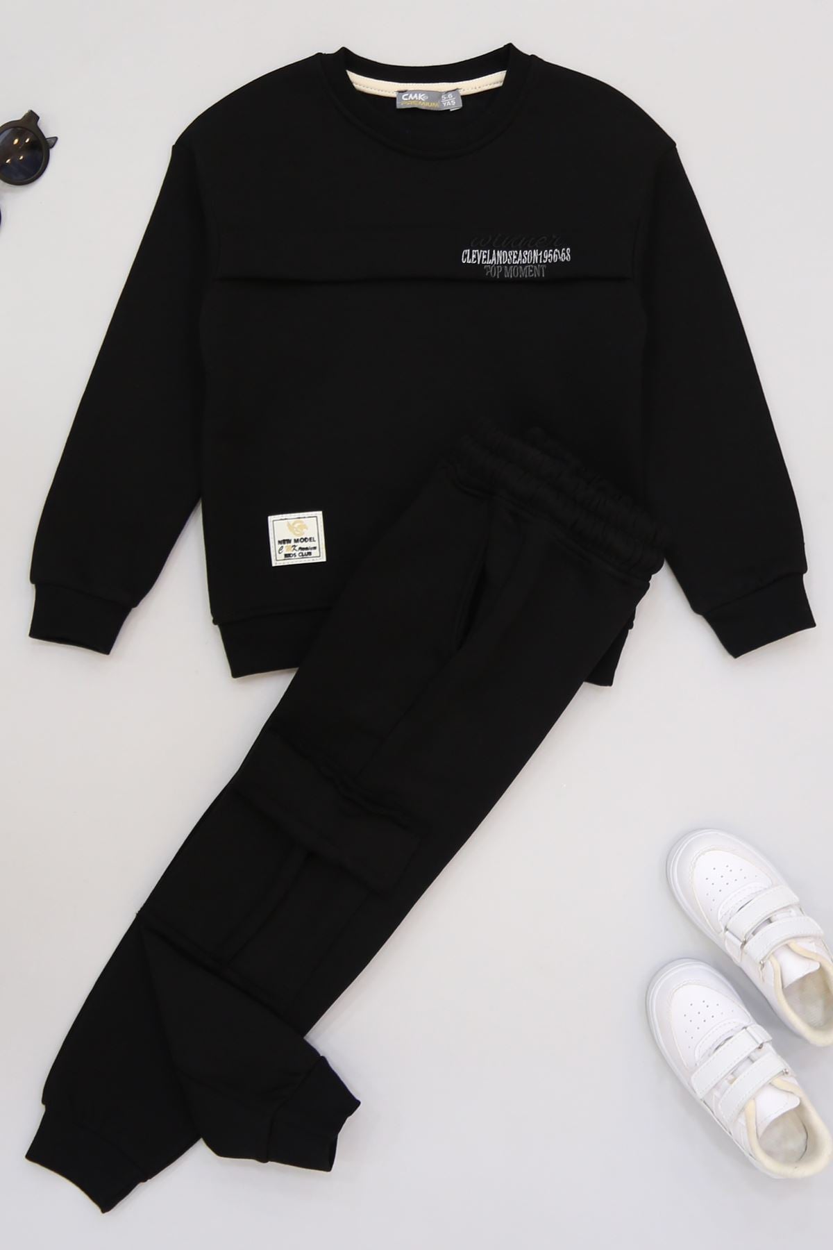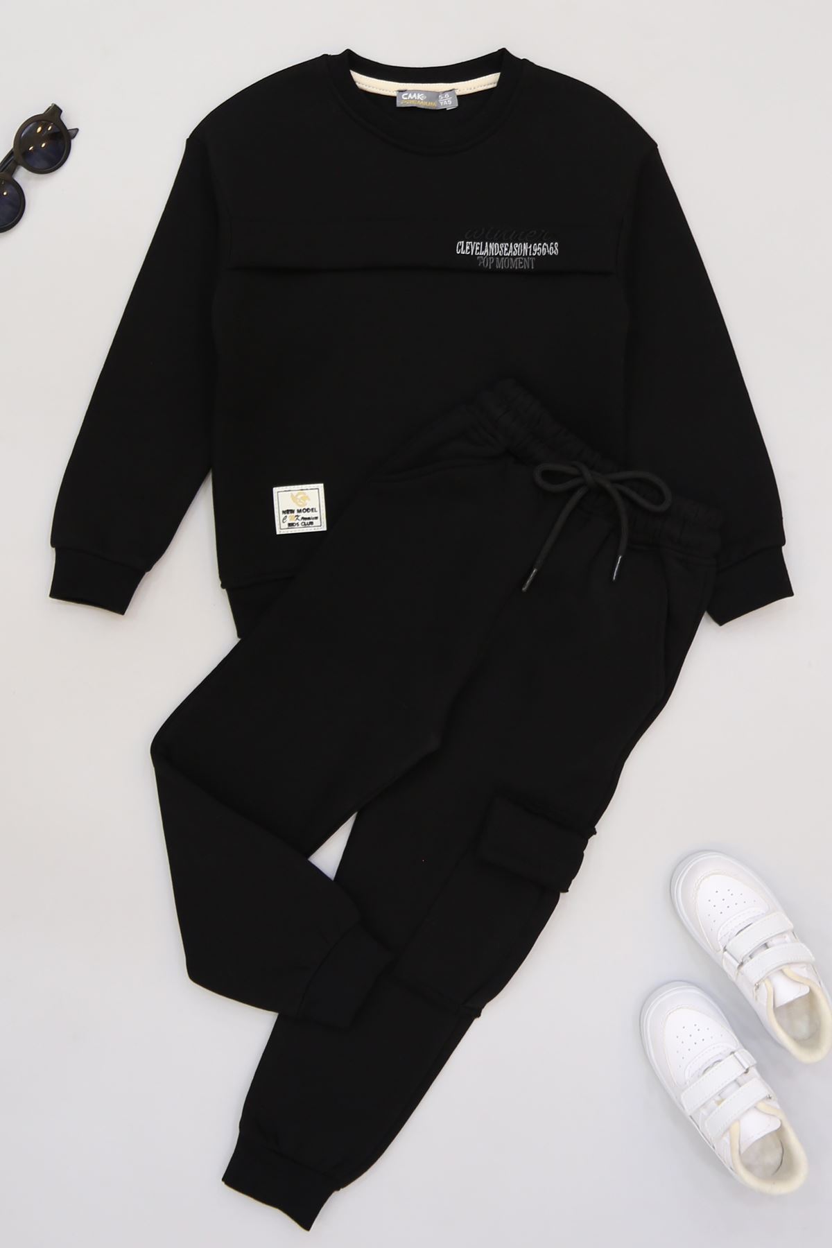 5-12 Yaş 3 İplik Şardonlu Kargo Cep Takım Siyah - 60205.1867.