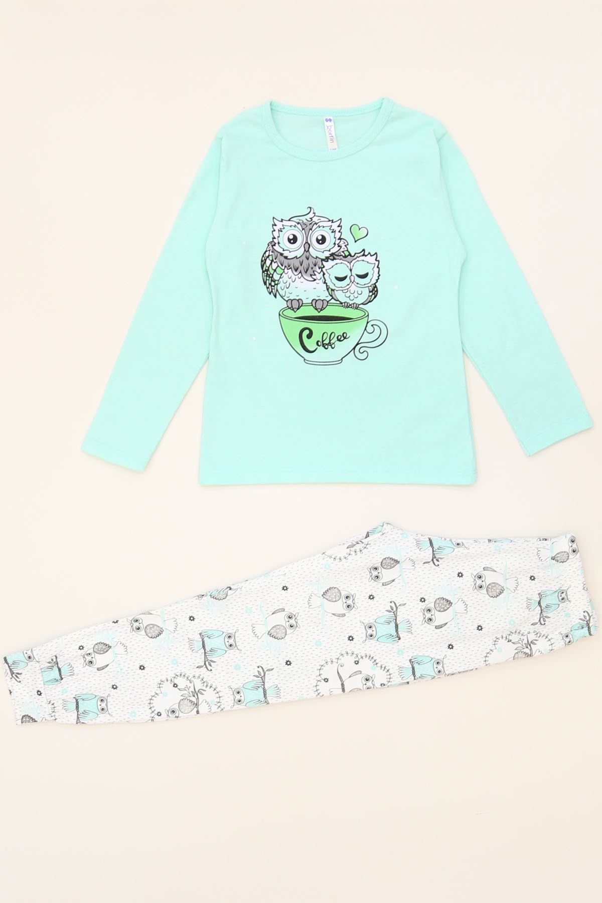 6-14 Yaş Baskılı Çocuk Pijama Takımı Mint - 40101.1931.