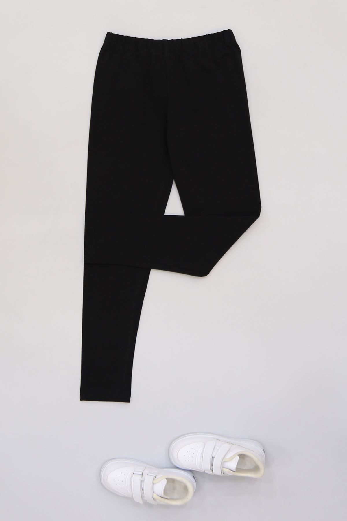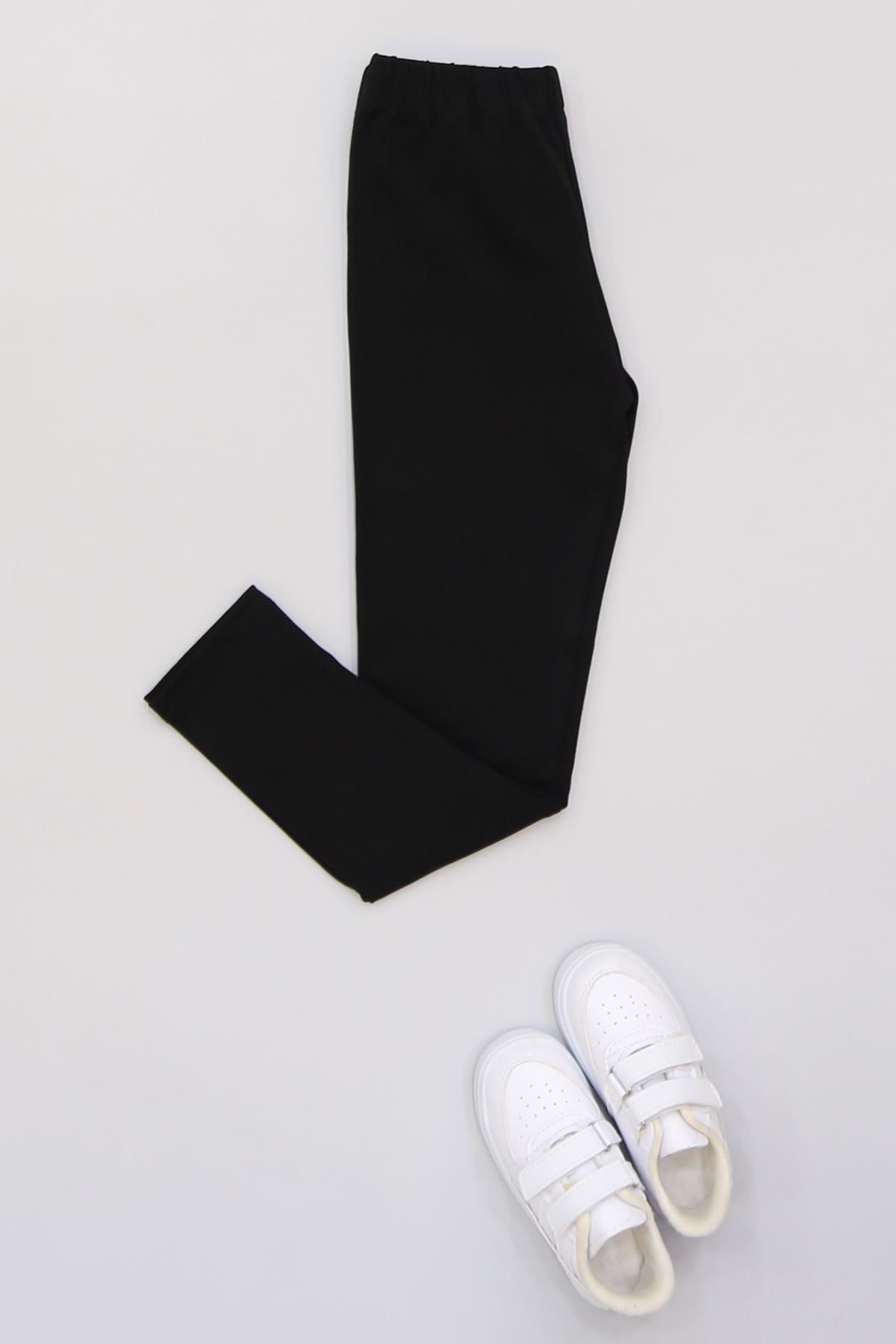 7-12 Yaş Likralı Penye Tayt Siyah - 50946.1981.