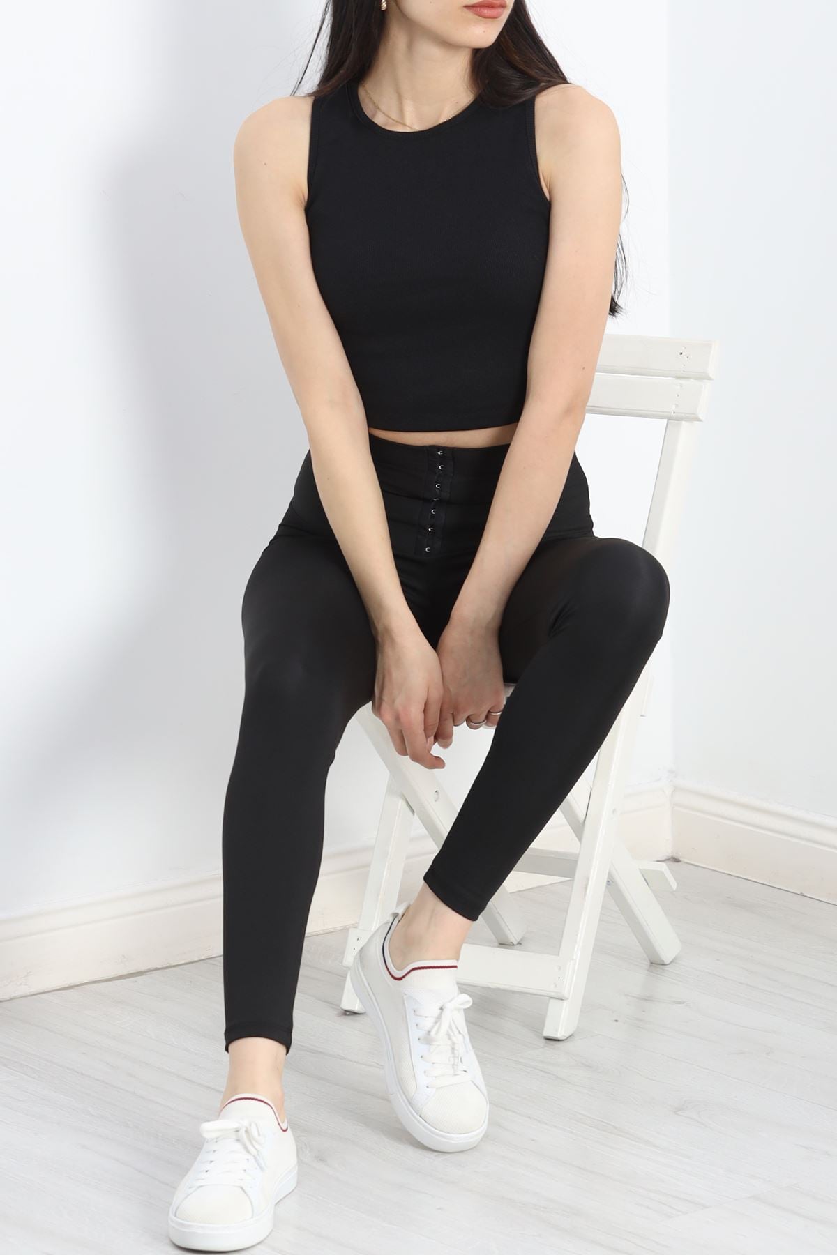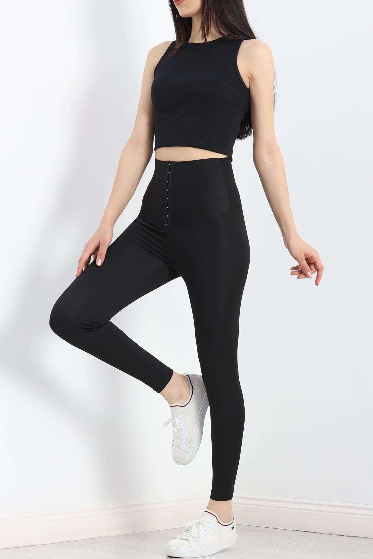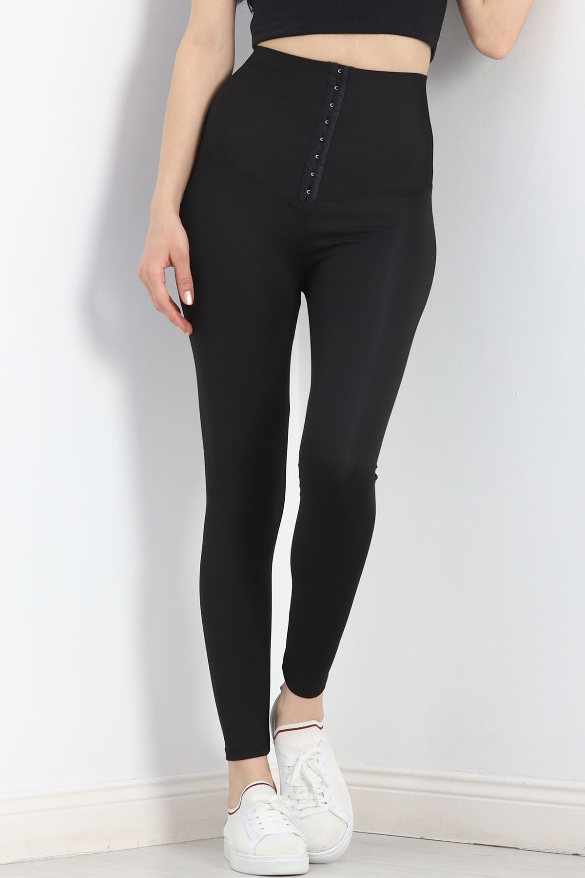Agraflı Yüksel Bel Tayt Siyah - 20141.1881.
