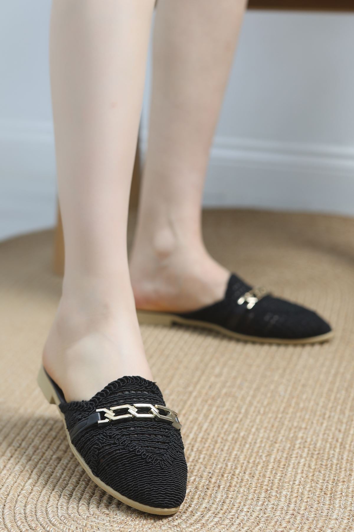 Aksesuarlı nakışlı terlik, zarif tasarımı ve şık detaylarıyla yaz stilinin vazgeçilmez parçalarından biri! Hafif ve konforlu yapısı sayesinde gün boyu rahat bir kullanım sunarken, şık aksesuar detayıyla her kombine sofistike bir hava katıyor. Nakış işçiliği ile öne çıkan bu terlik, hem günlük kullanım hem de özel anlar için mükemmel bir seçimdir. Şıklık ve rahatlığı bir arada sunan tasarımıyla stilinizi tamamlayın.