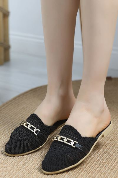 Aksesuarlı Nakışlı Terlik Siyah - 30377.1846.
