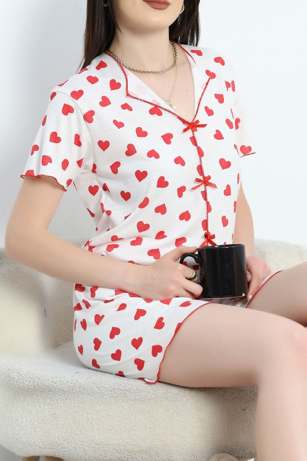 Alaçatı Şortlu Pijama Takımı Beyazkalp - 50681.1952.