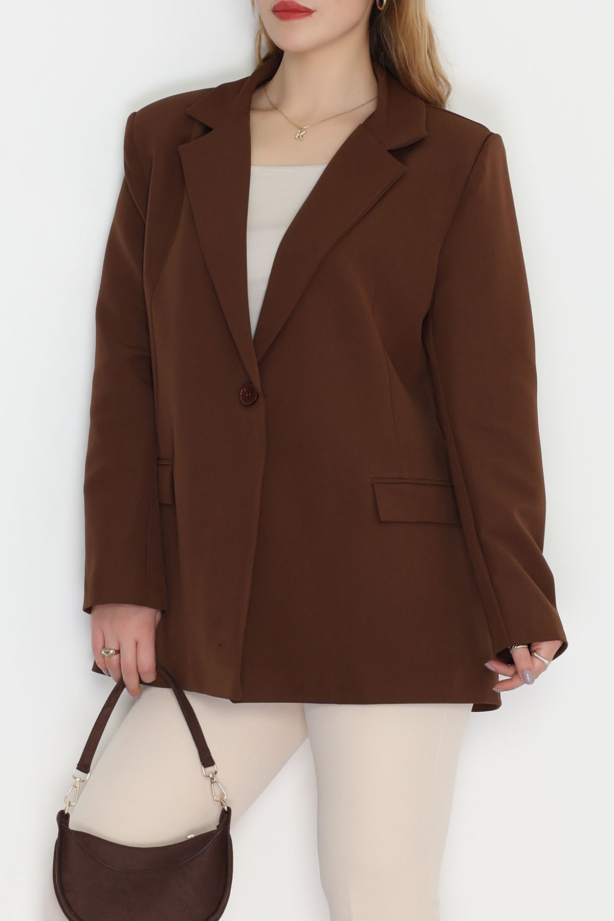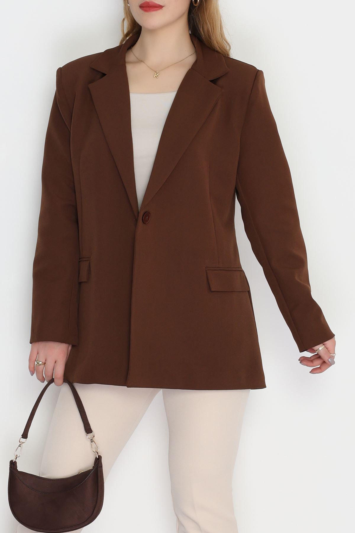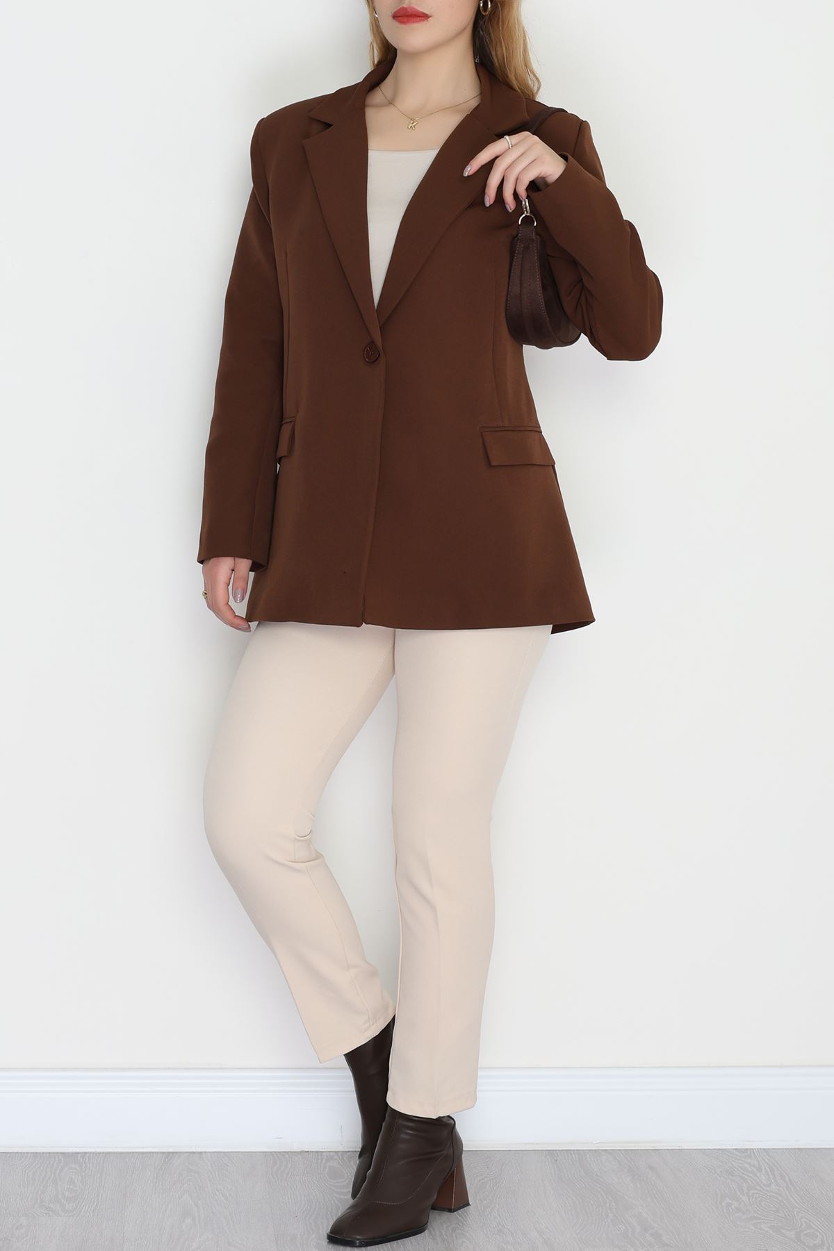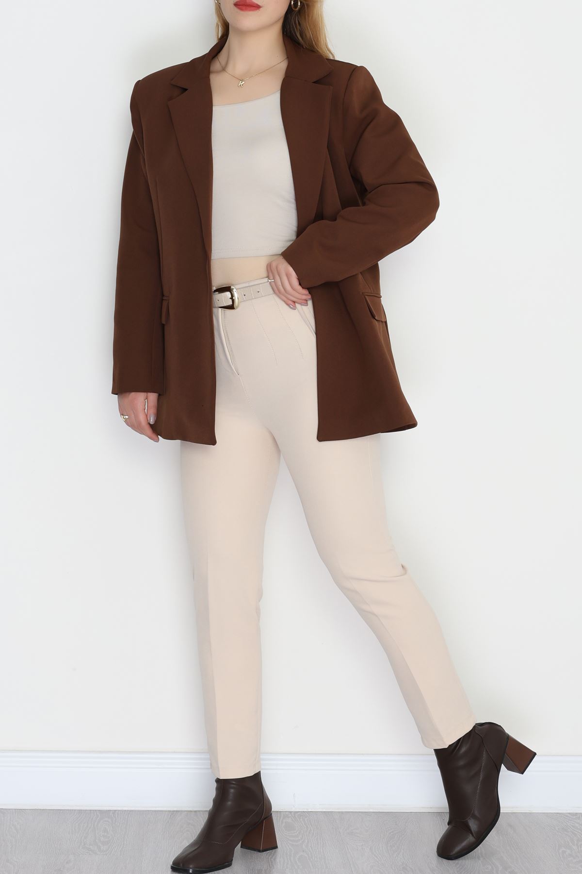 Astarı Çizgili Blazer Ceket Acıkahve - 31448.1397.
