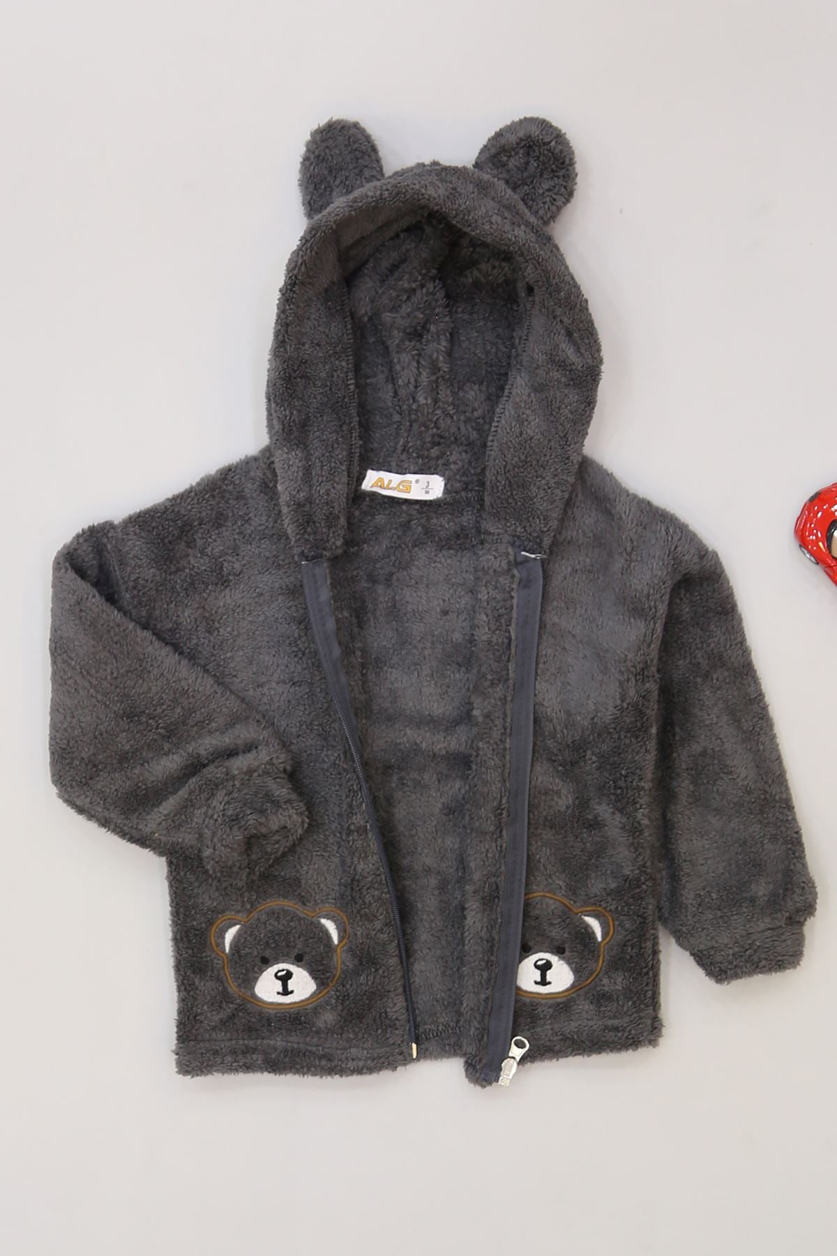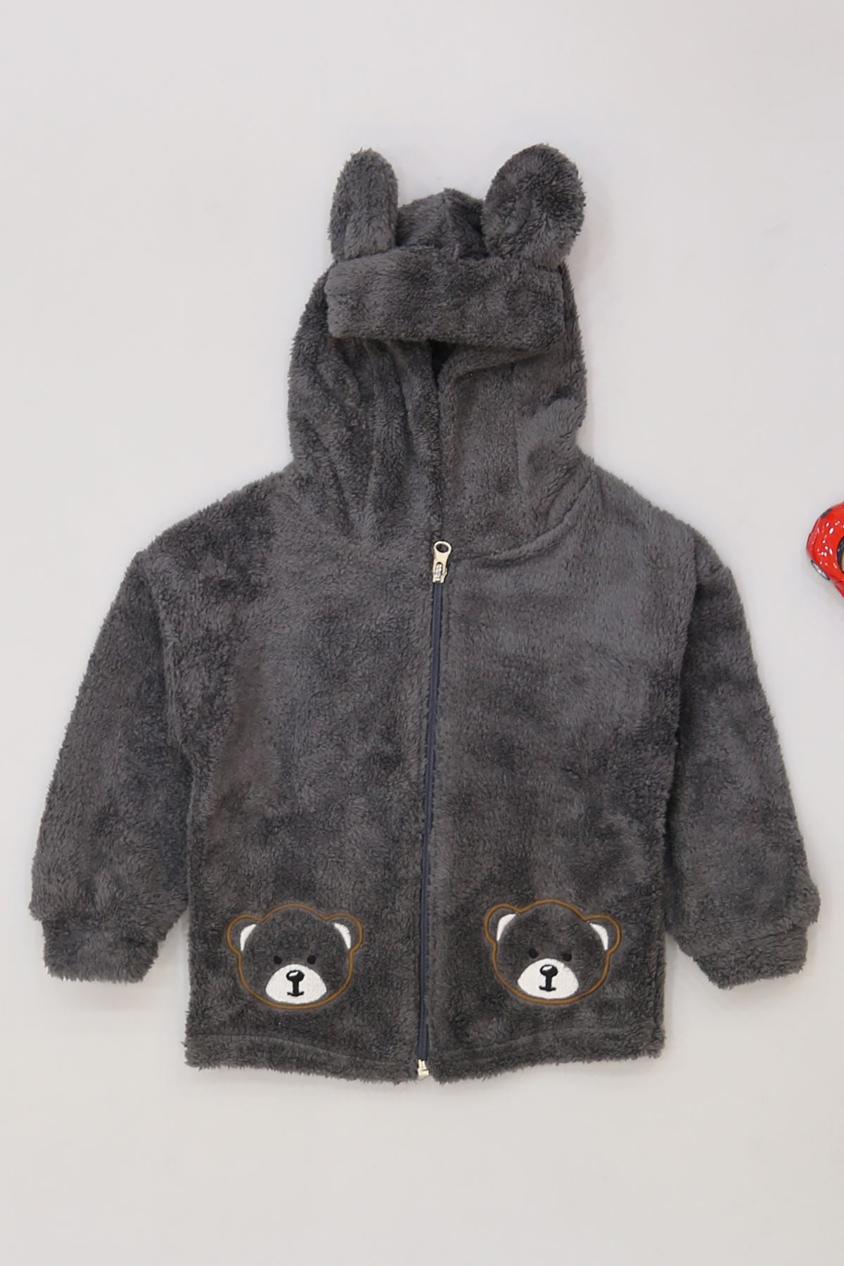 3-7 Yaş Ayı Nakışlı Çocuk Peluş Antrasit - 224456.1576.