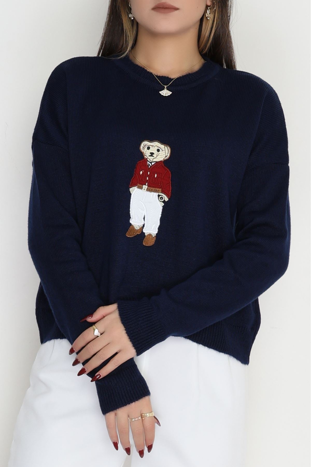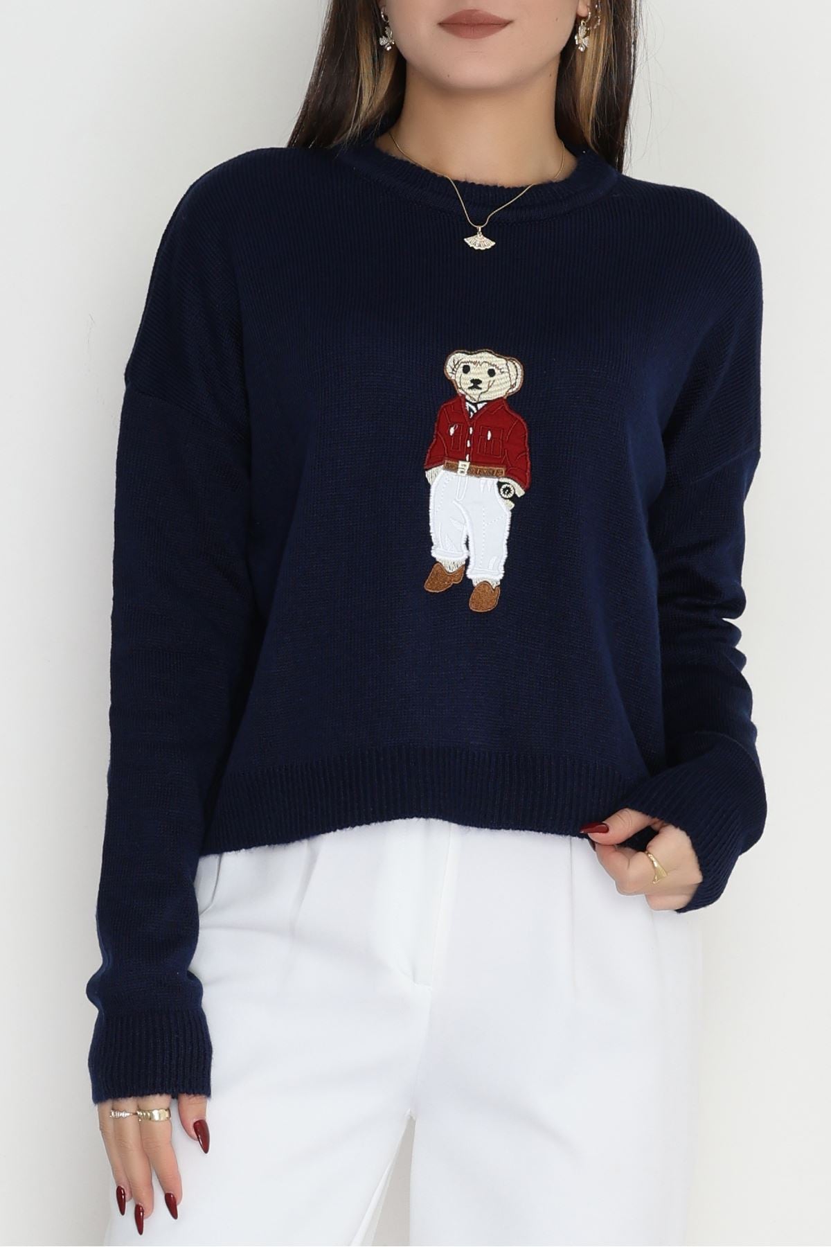 Ayıcık Nakışlı Triko Lacivert - 2340.1765.