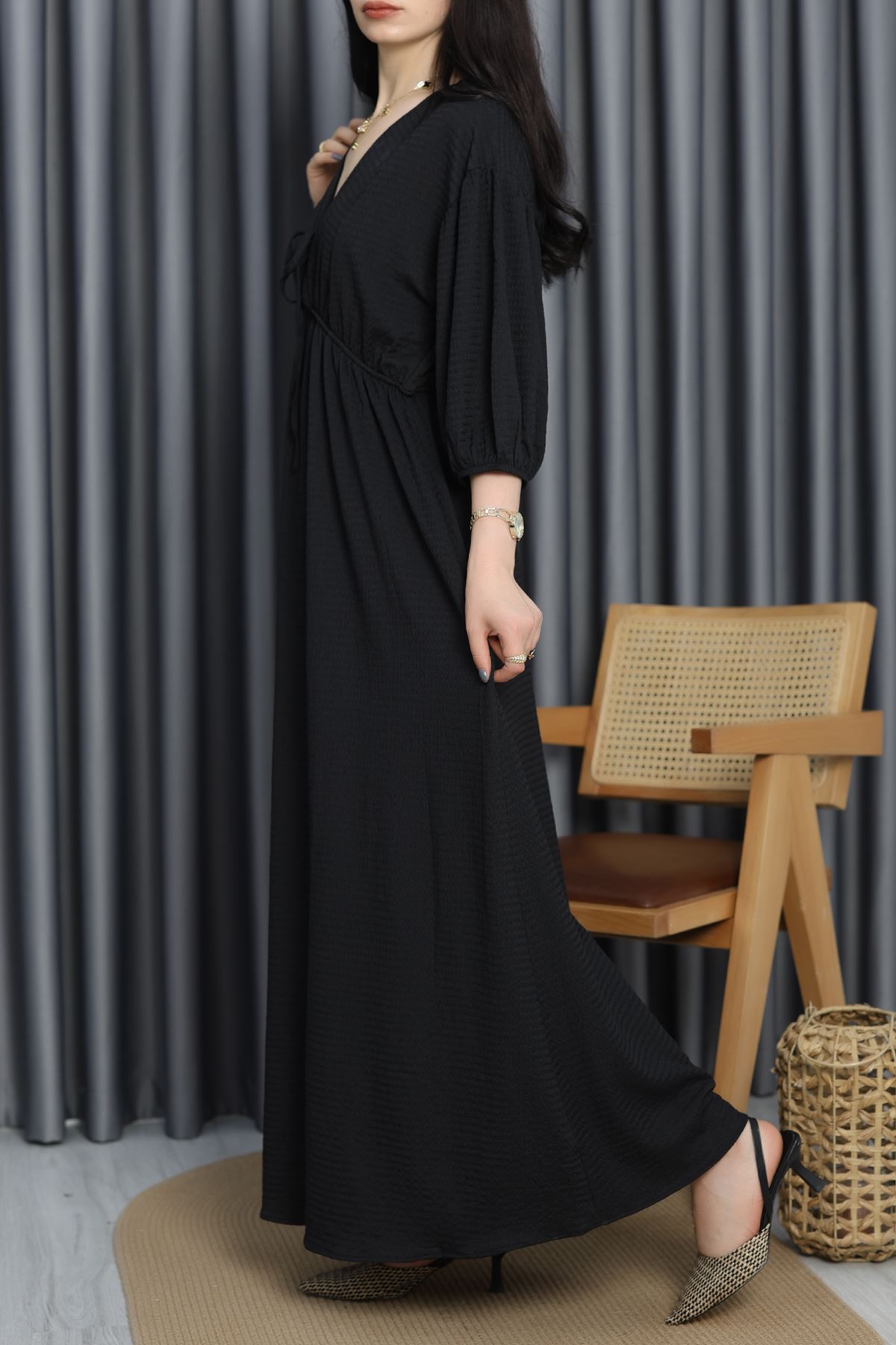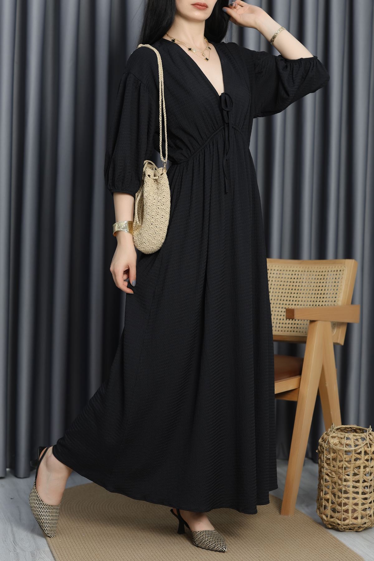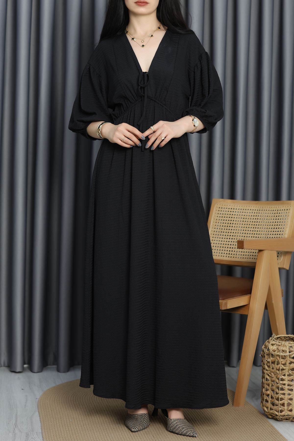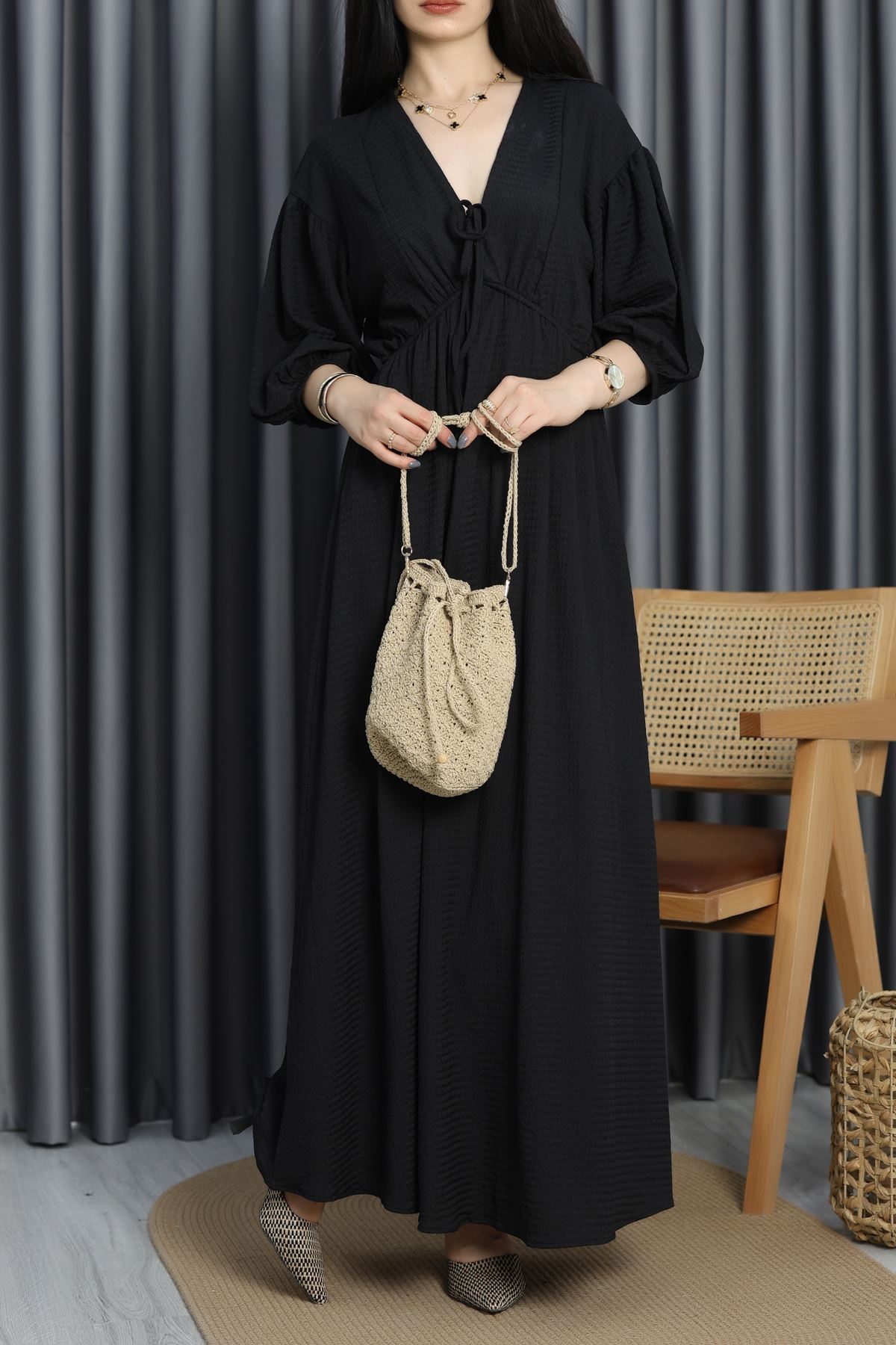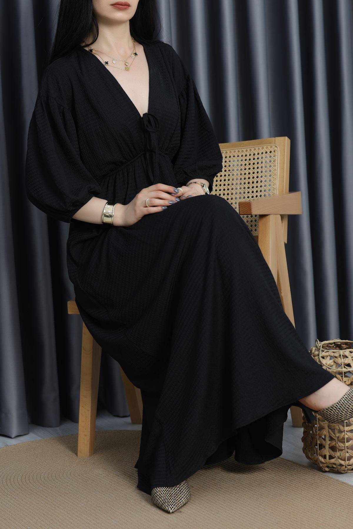 Ru Merter Bağcıklı Elbise Siyah - 70438.1934.