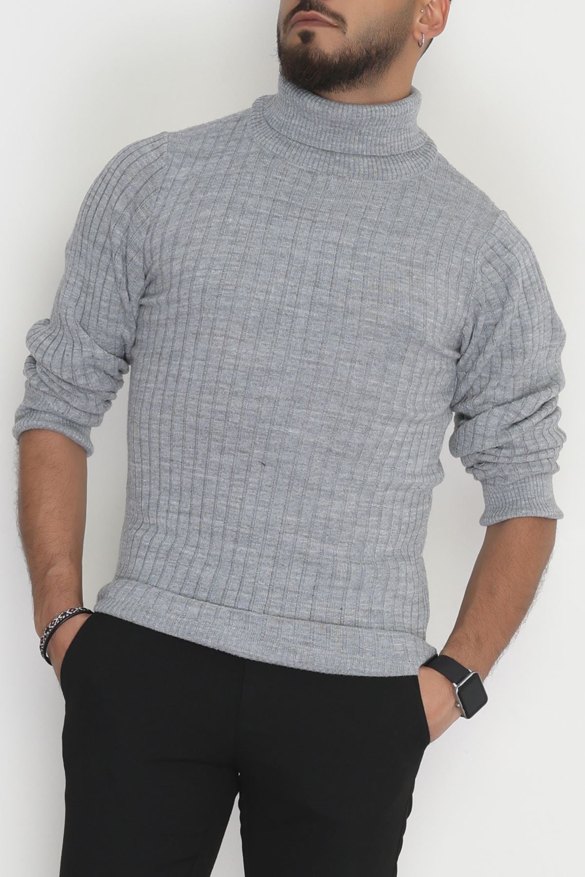 Balıkçı Yaka Erkek Triko Gri - 70774.1766.