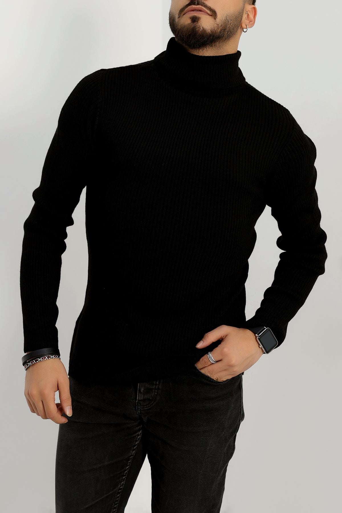 Balıkçı Yaka Erkek Triko Siyah - 70781.1766.