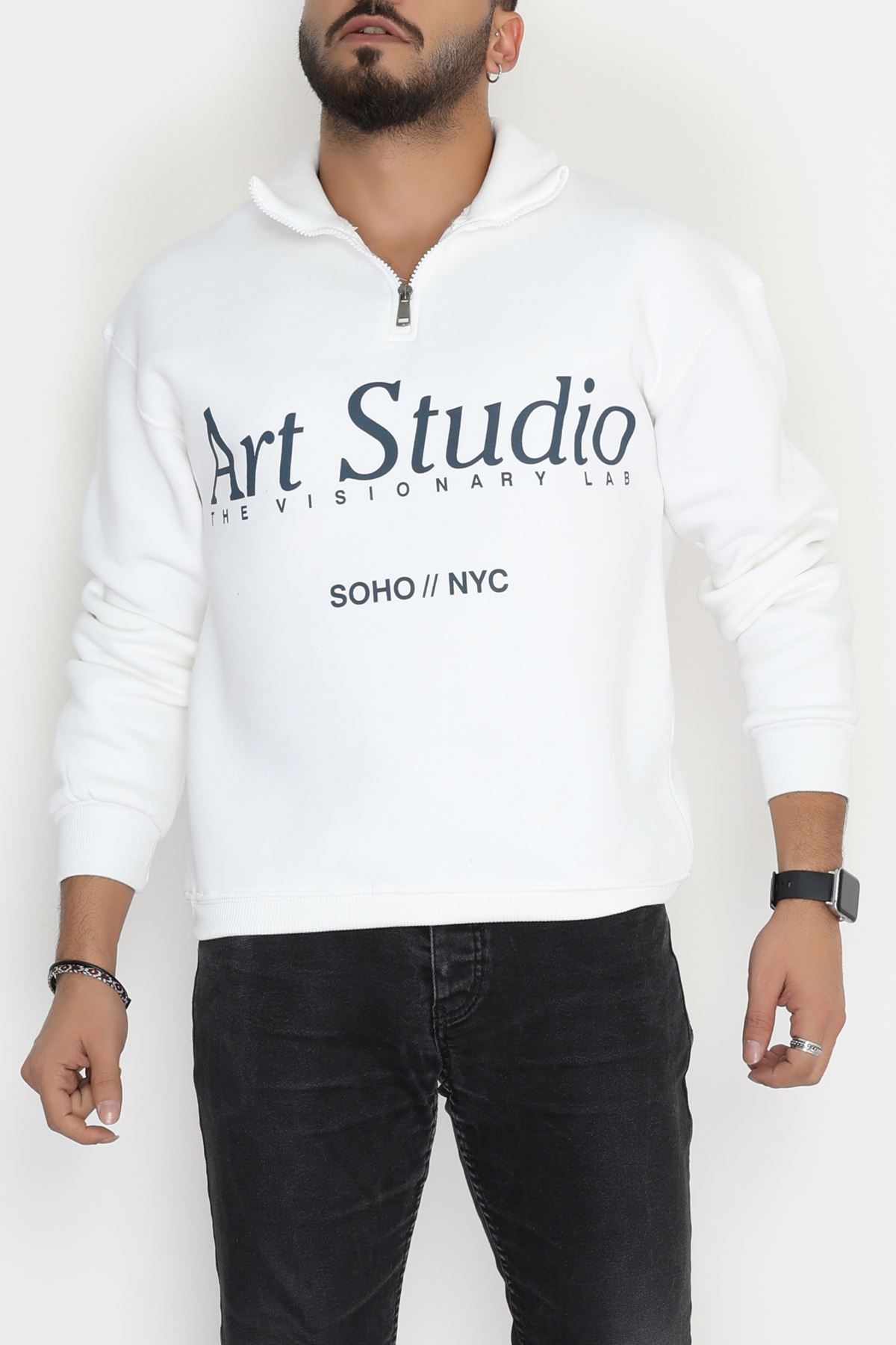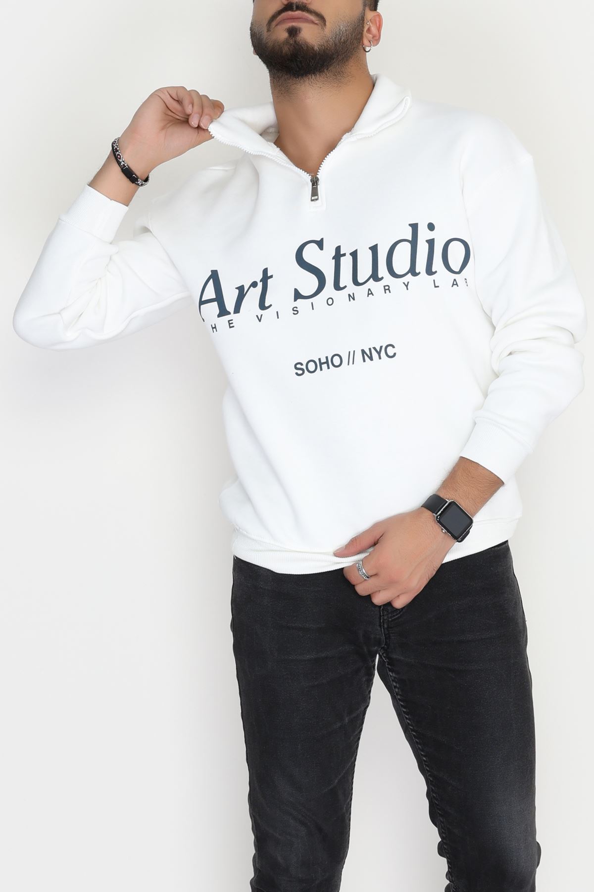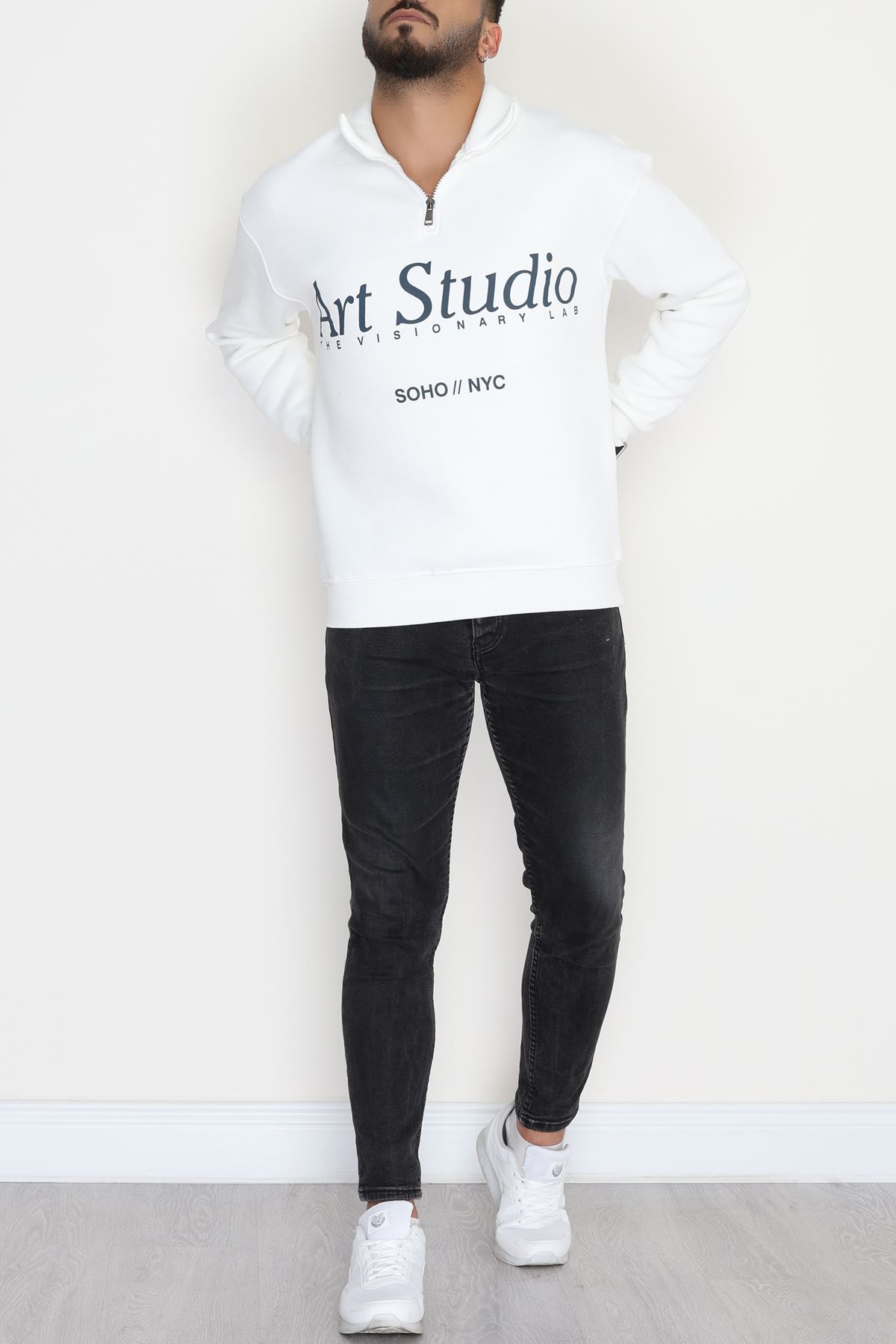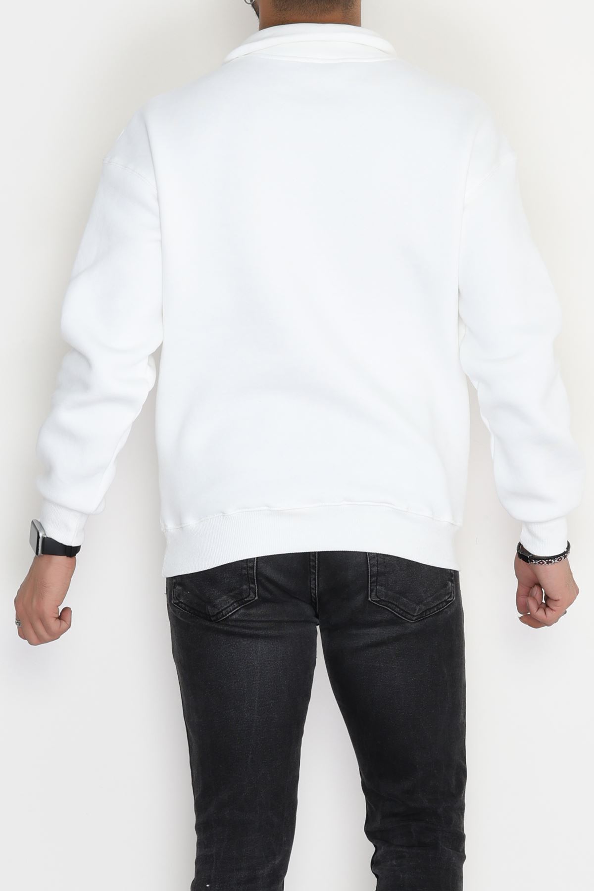 Baskılı 3 İplik Şardonlu Erkek Sweat Beyaz - 42584.1872.