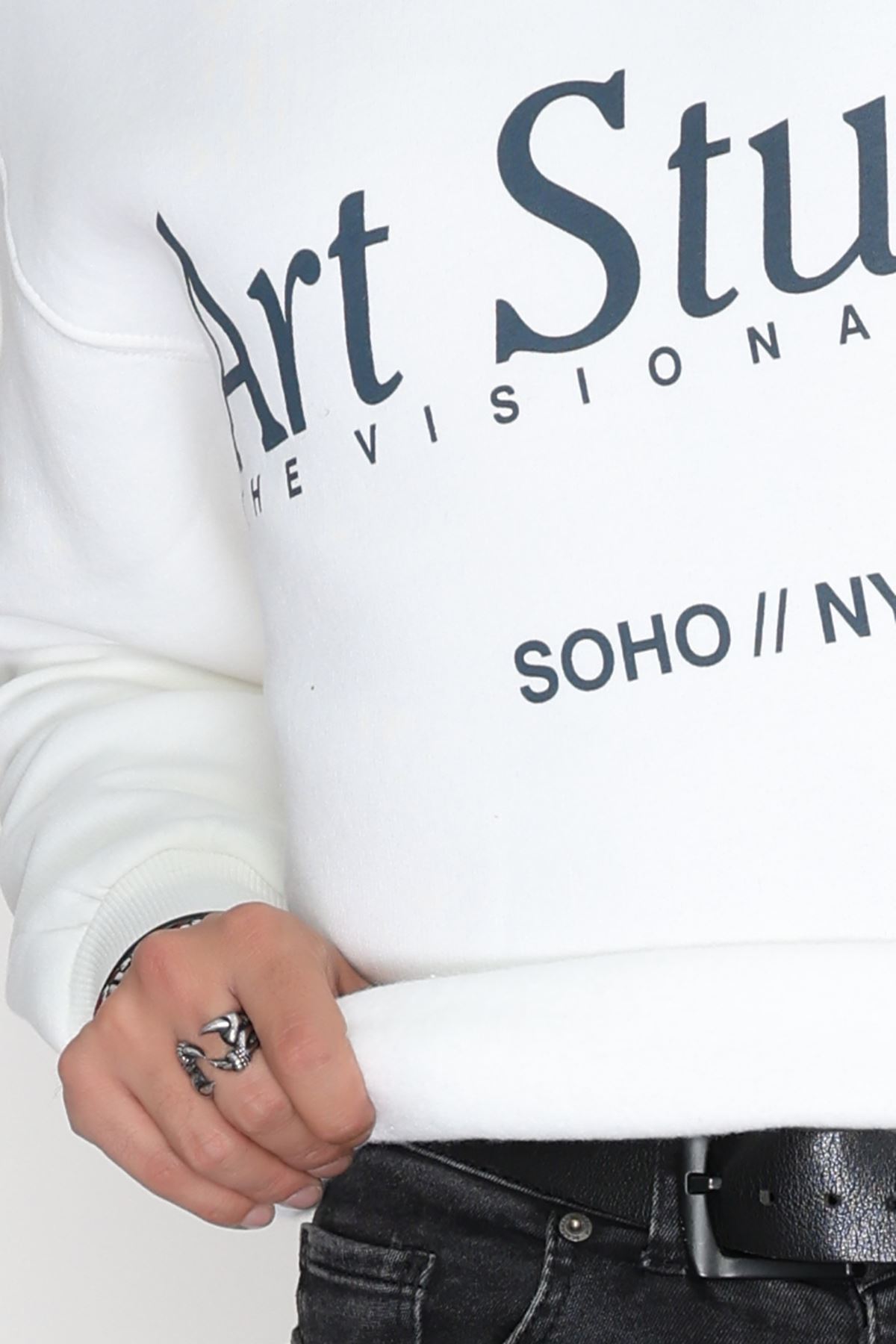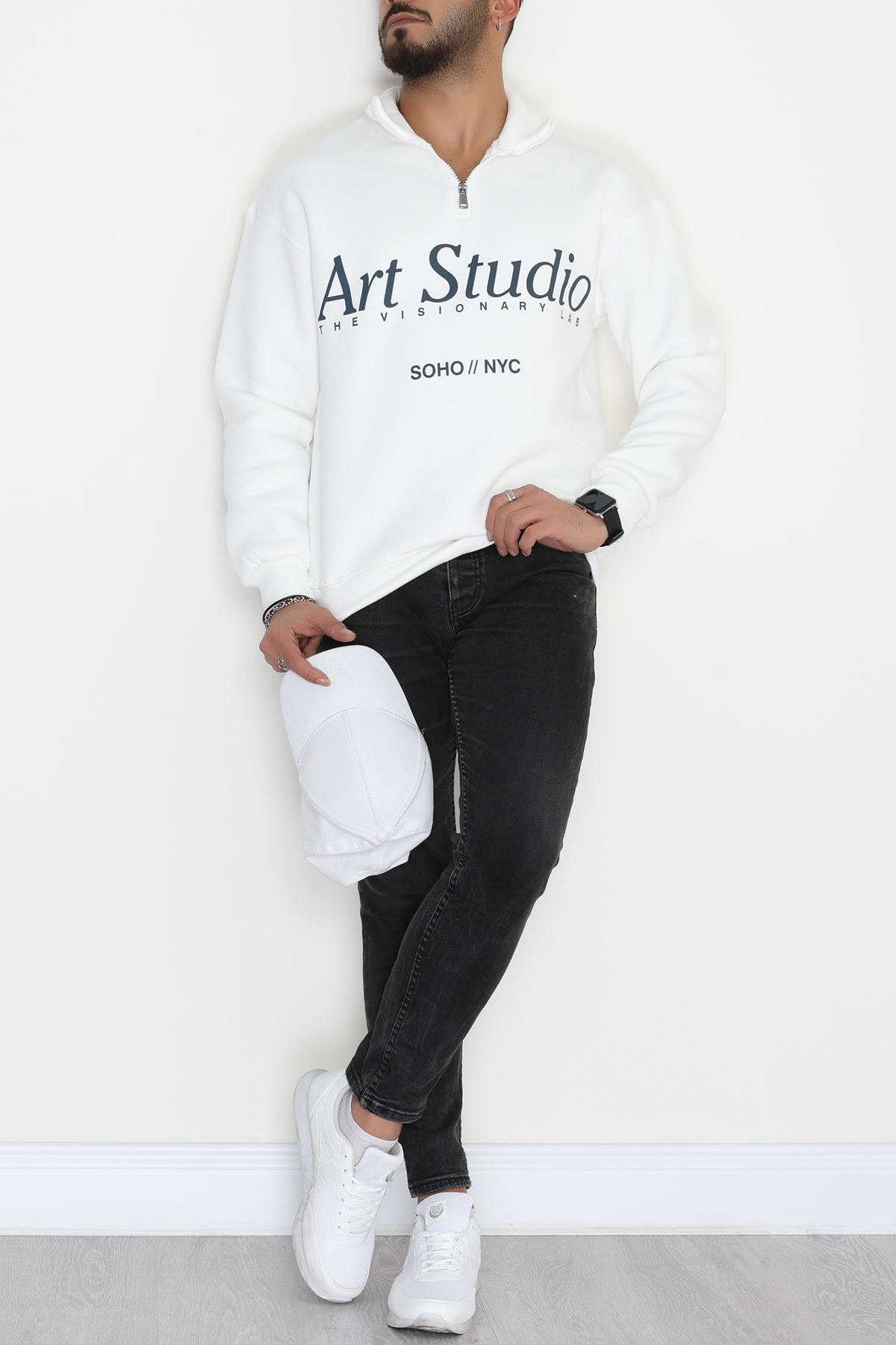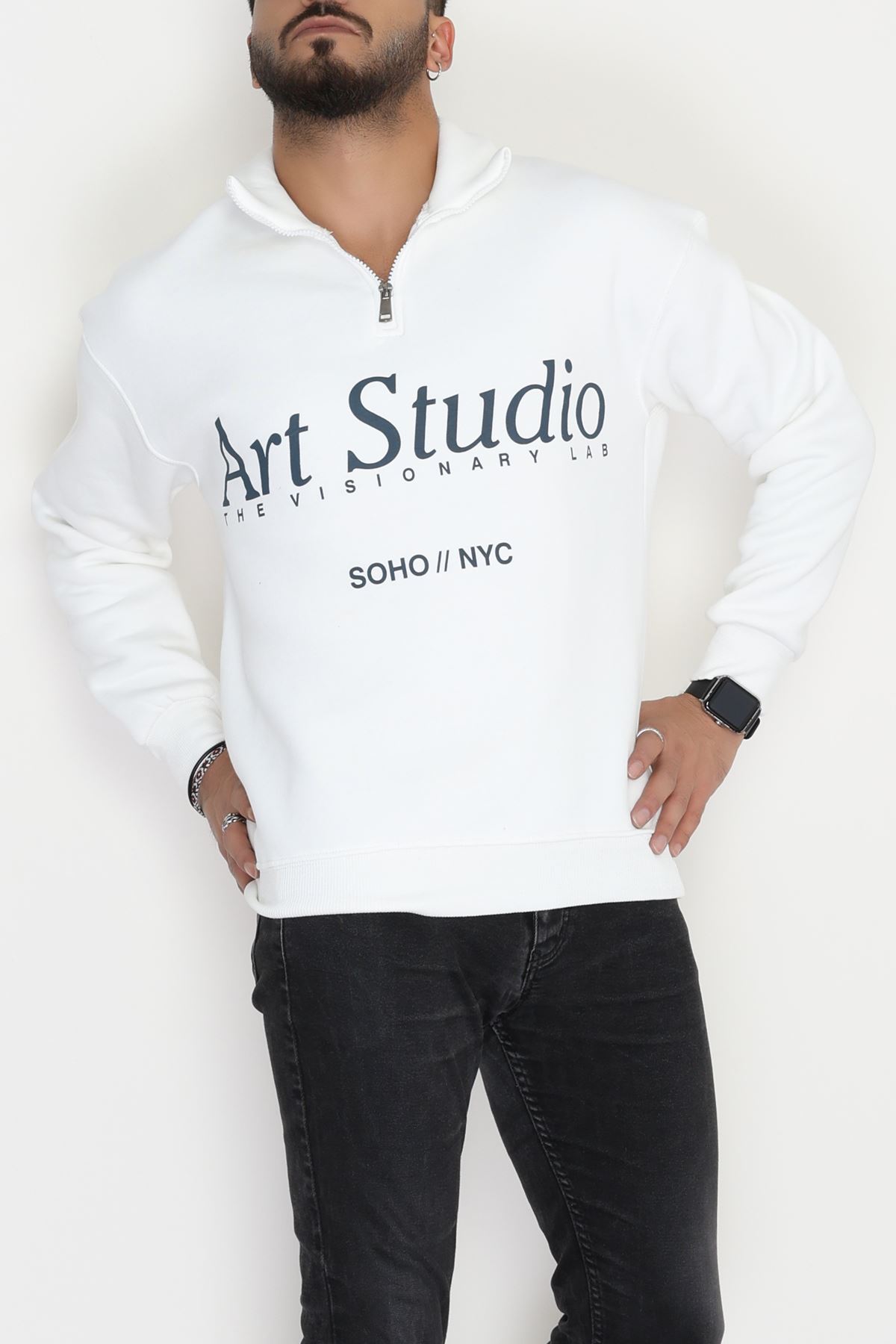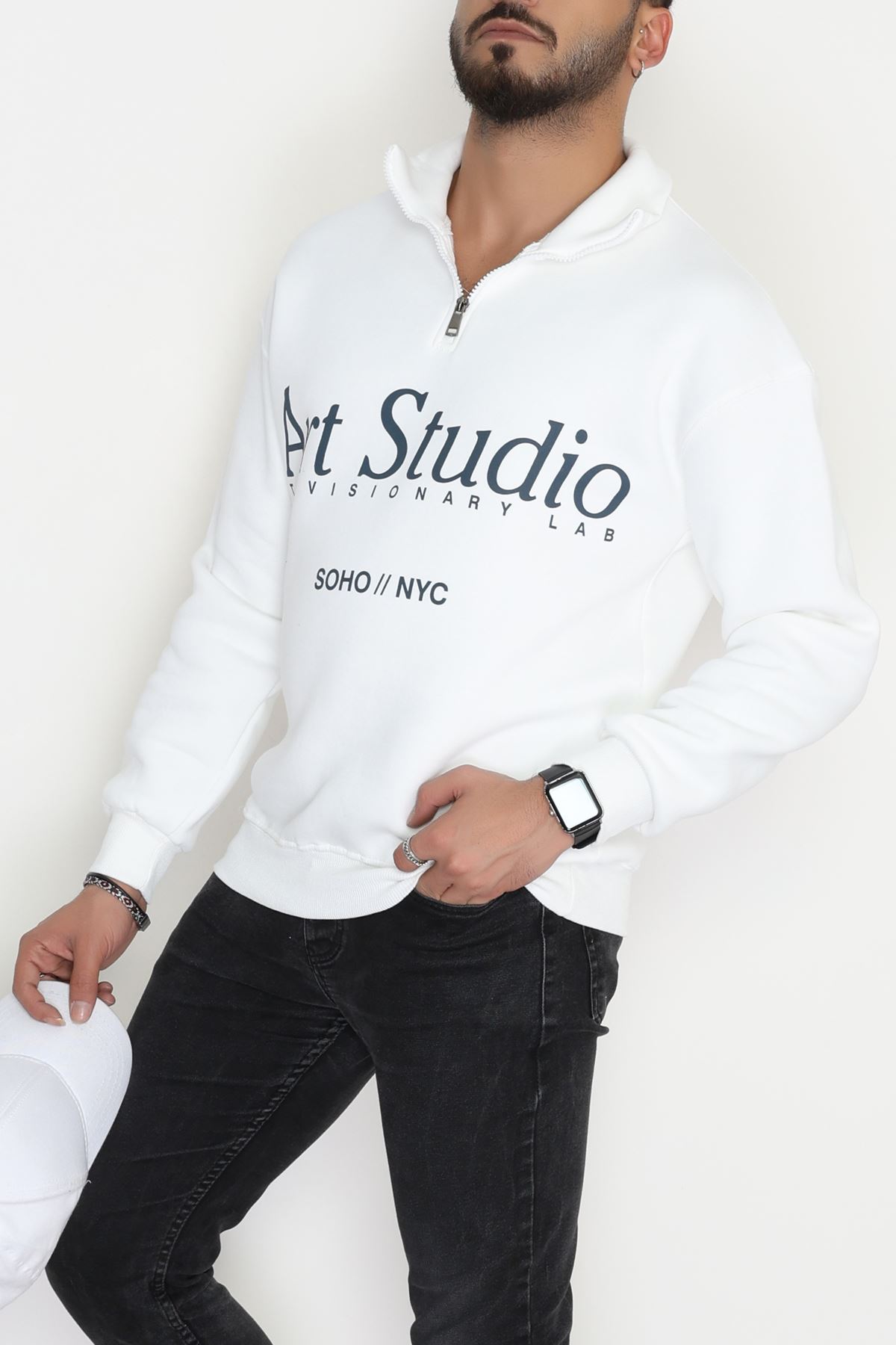 Baskılı 3 İplik Şardonlu Erkek Sweat Beyaz - 42584.1872.