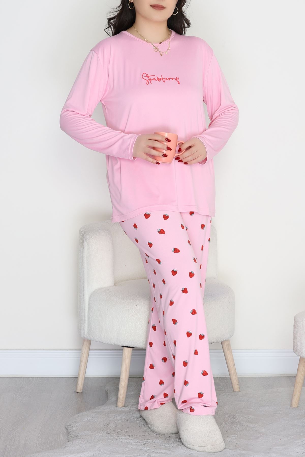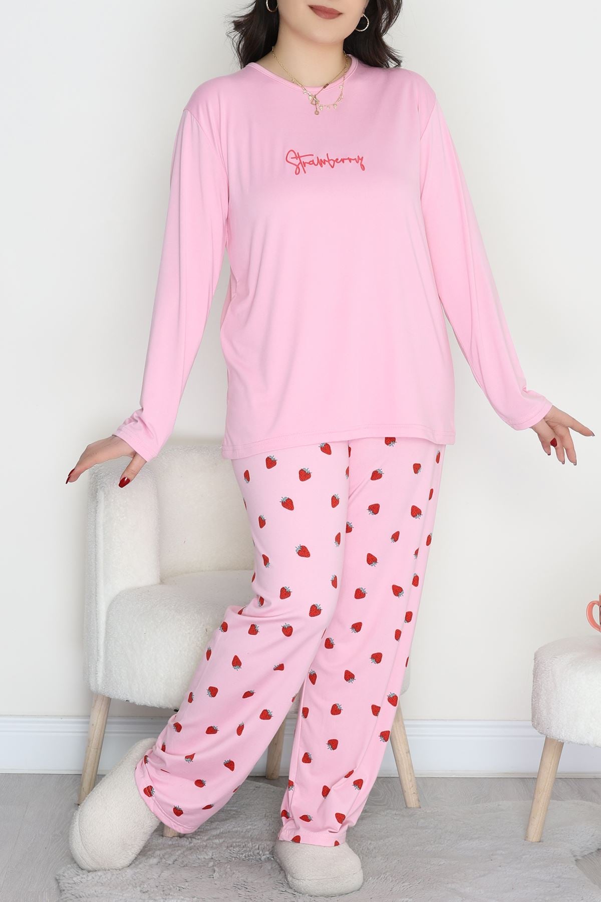 Şardonlu Milan Büyük Beden Pijama Takımı Pembeçilek - 665.1287.