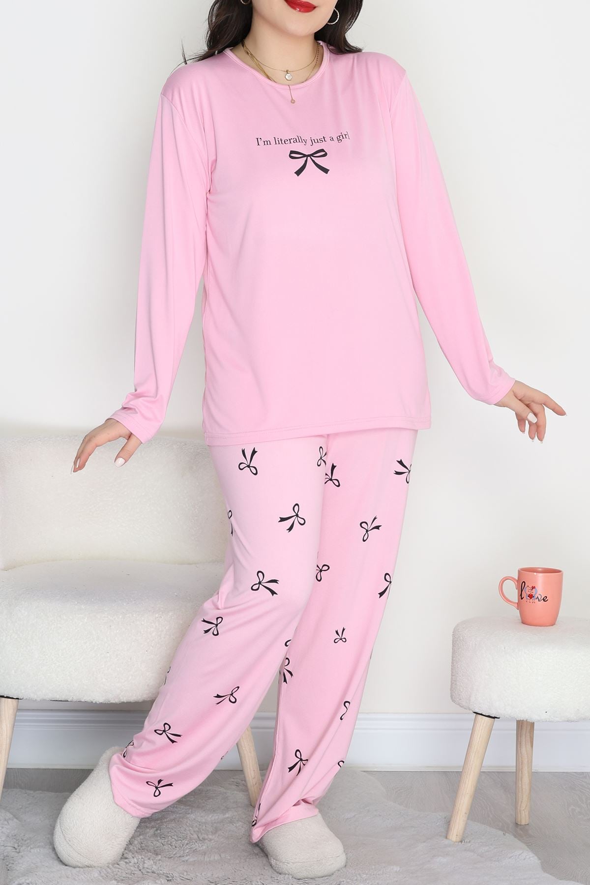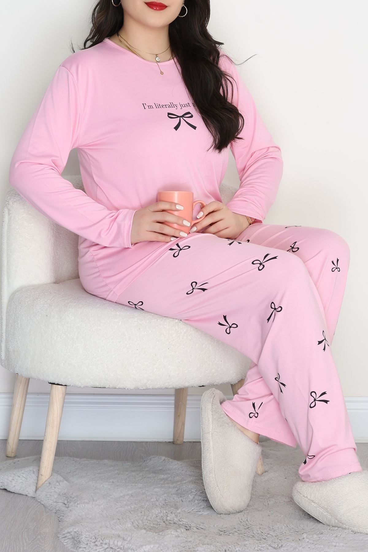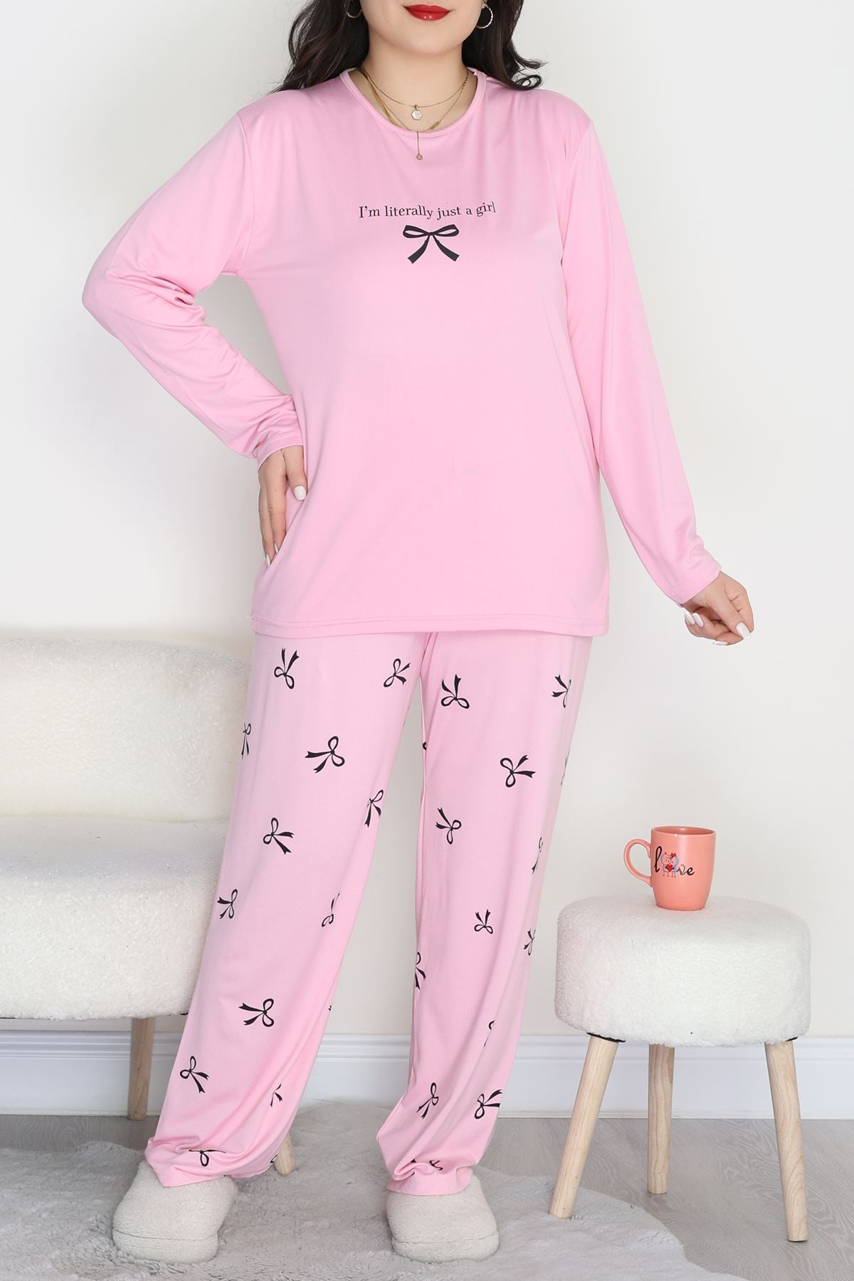 Şardonlu Milan Büyük Beden Pijama Takımı Pembefiyonk - 665.1287.