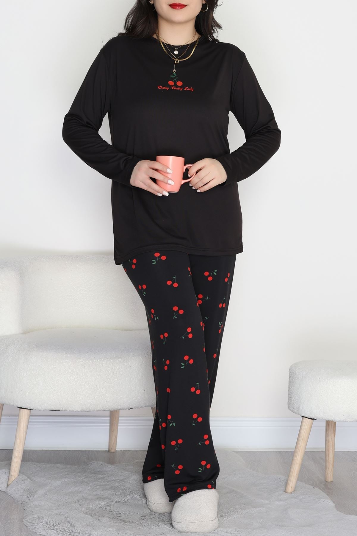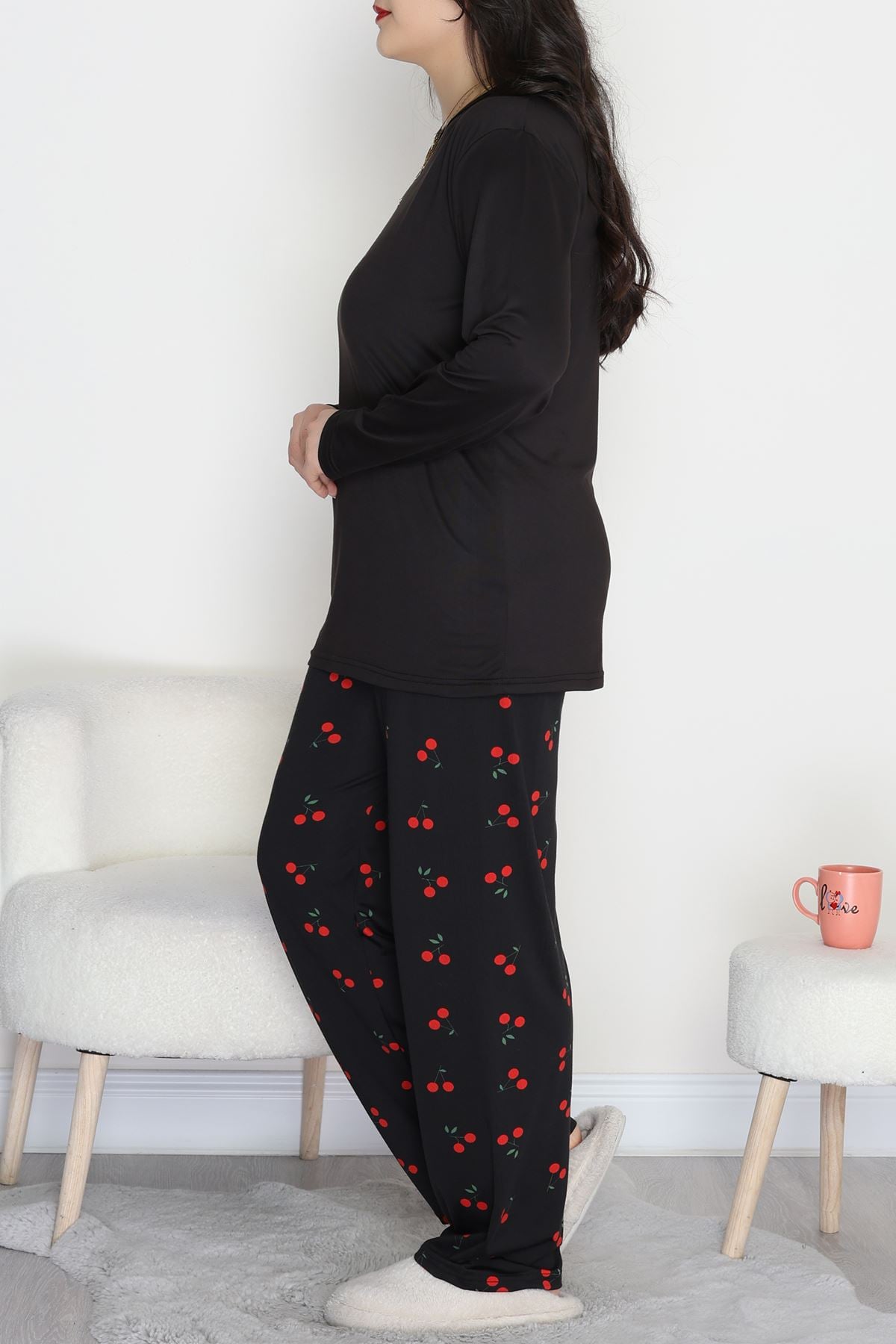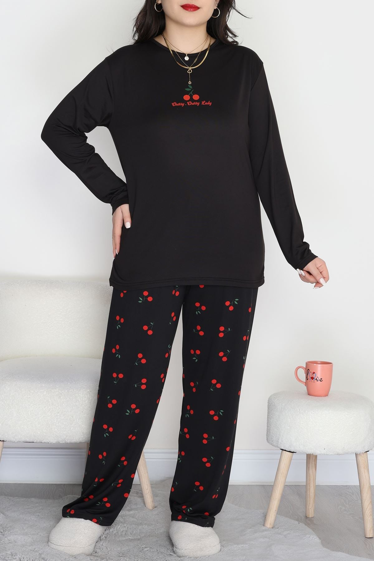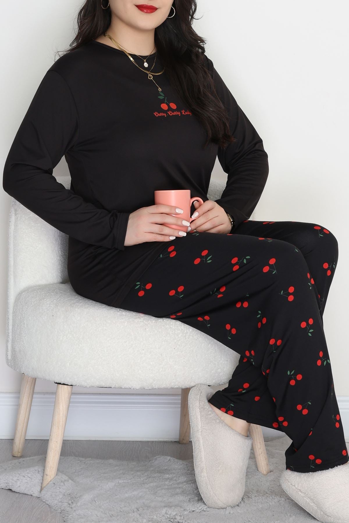 Şardonlu Milan Büyük Beden Pijama Takımı Siyahkiraz - 665.1287.