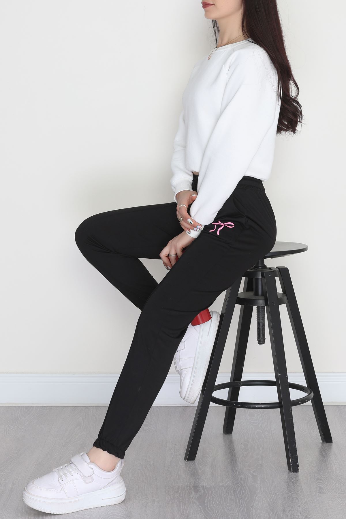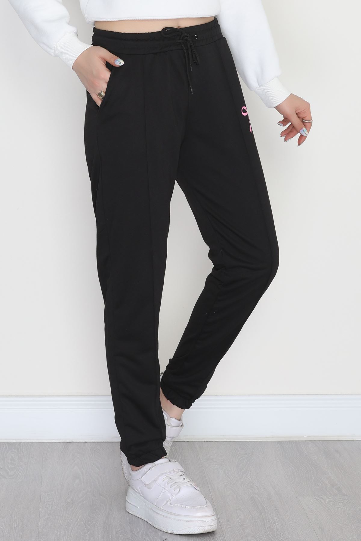 Baskılı Paça Lastik Eşofman Altı Siyahpembe - 41316.1431.