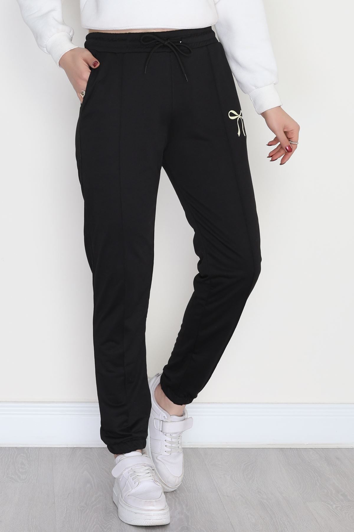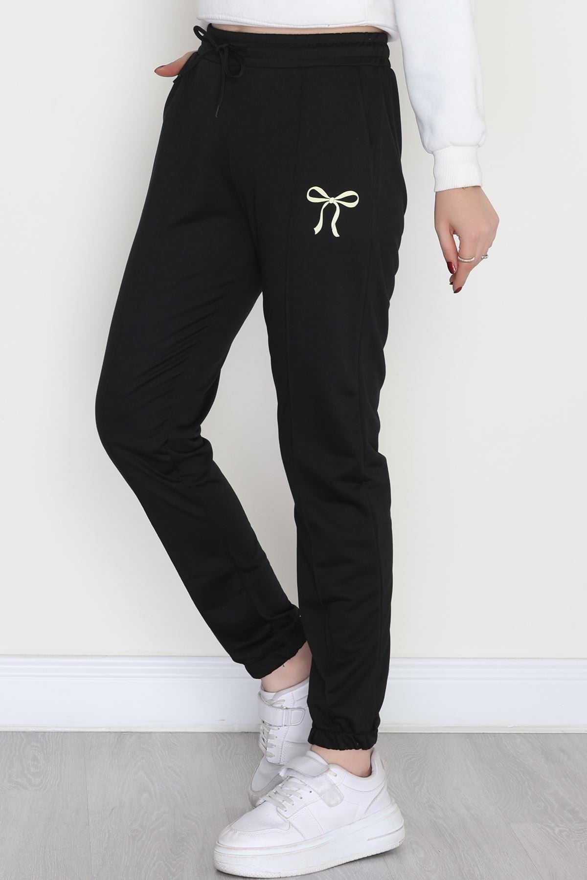 Baskılı Paça Lastik Eşofman Altı Siyahsarı - 41316.1431.