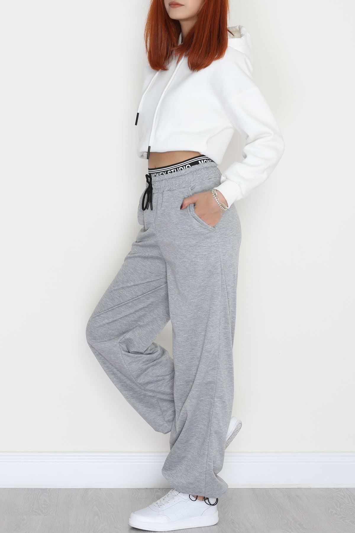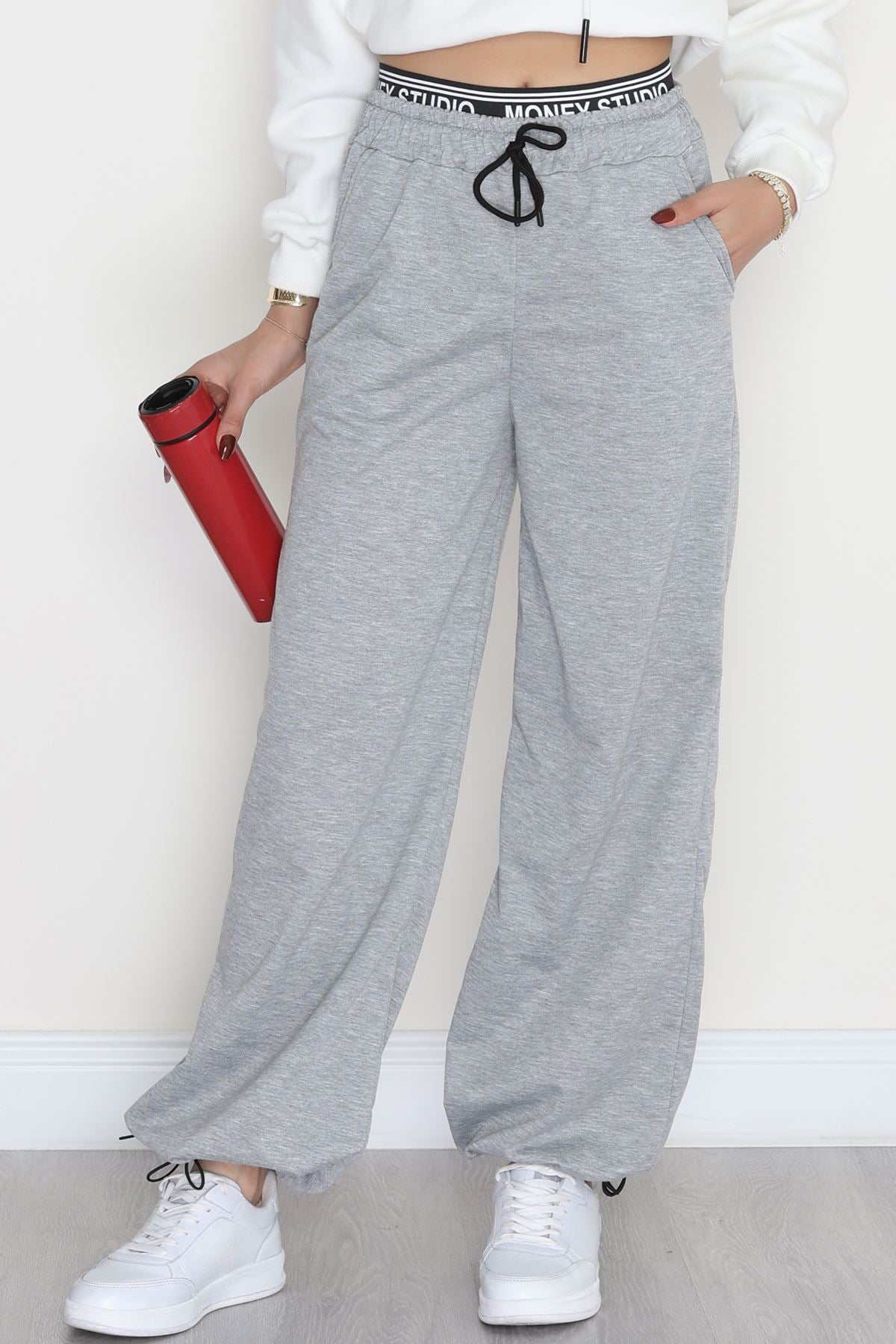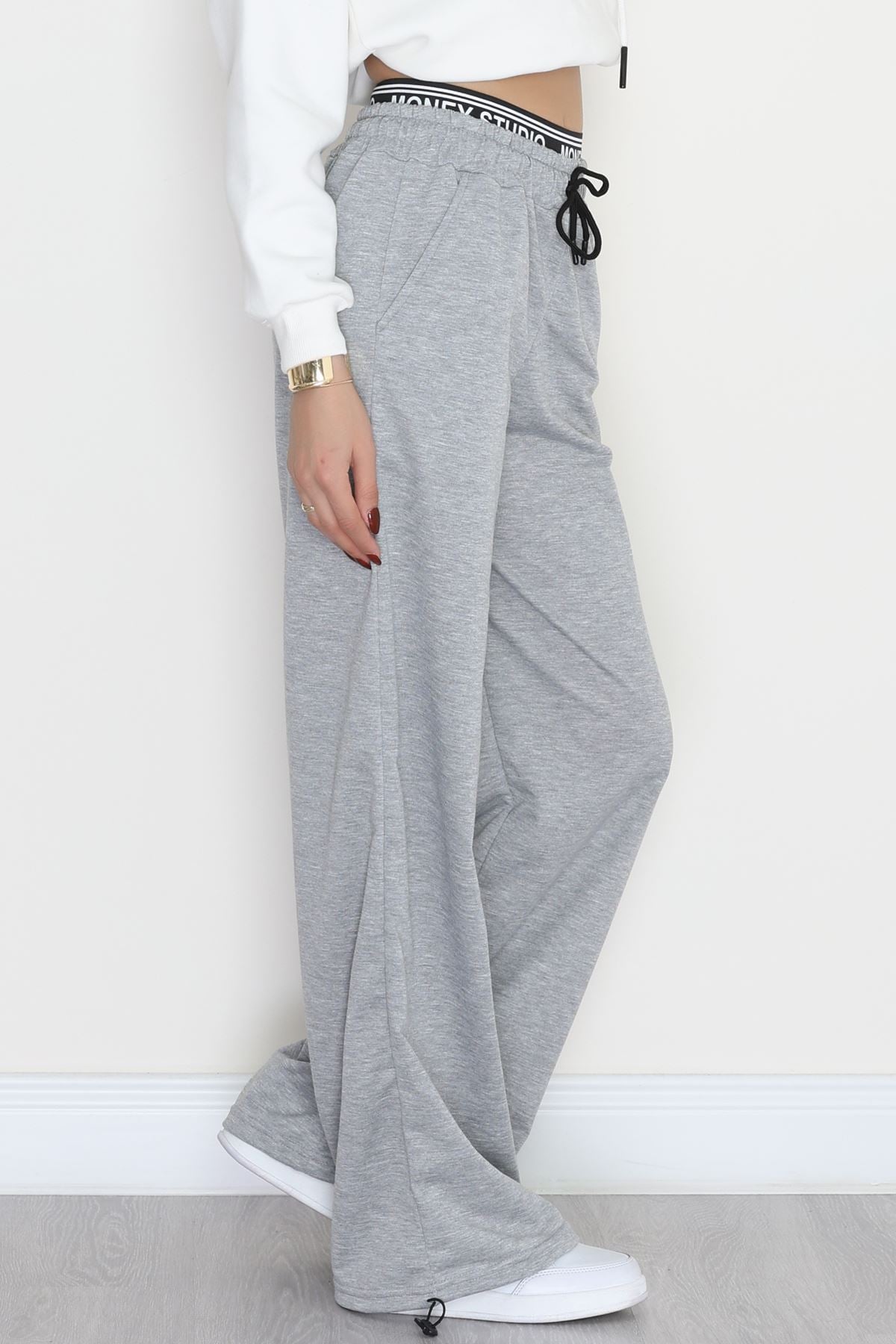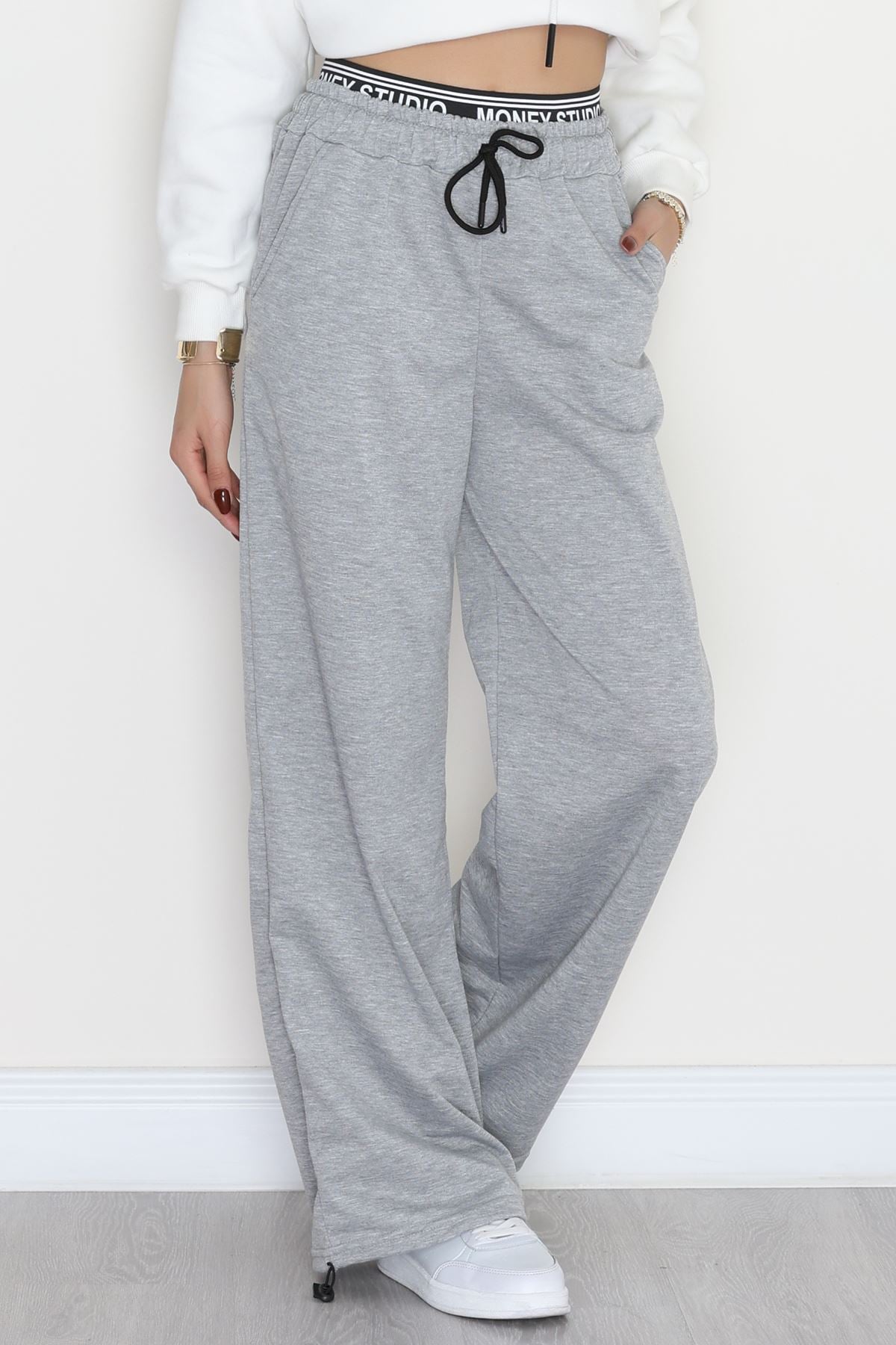Bel Detaylı 2 İplik Eşofman Altı Gri - 70169.1857.