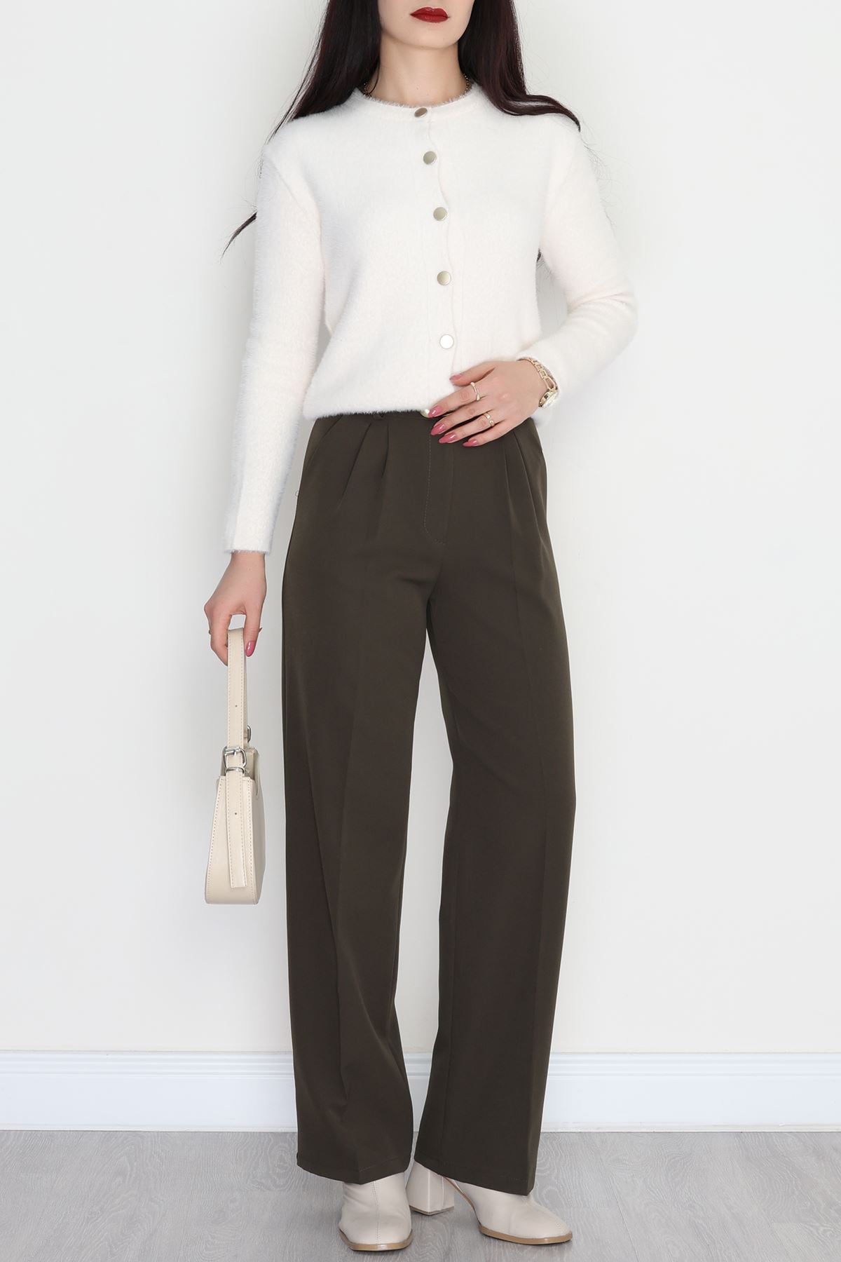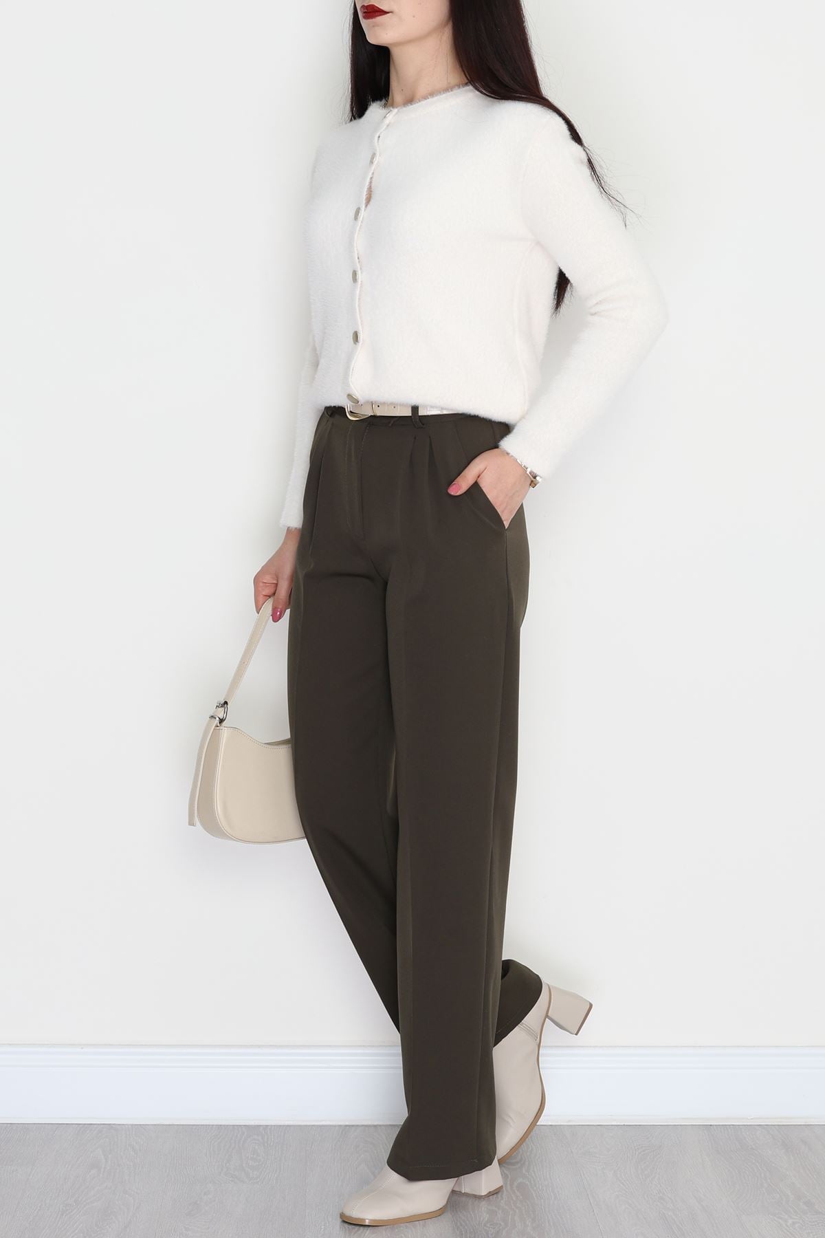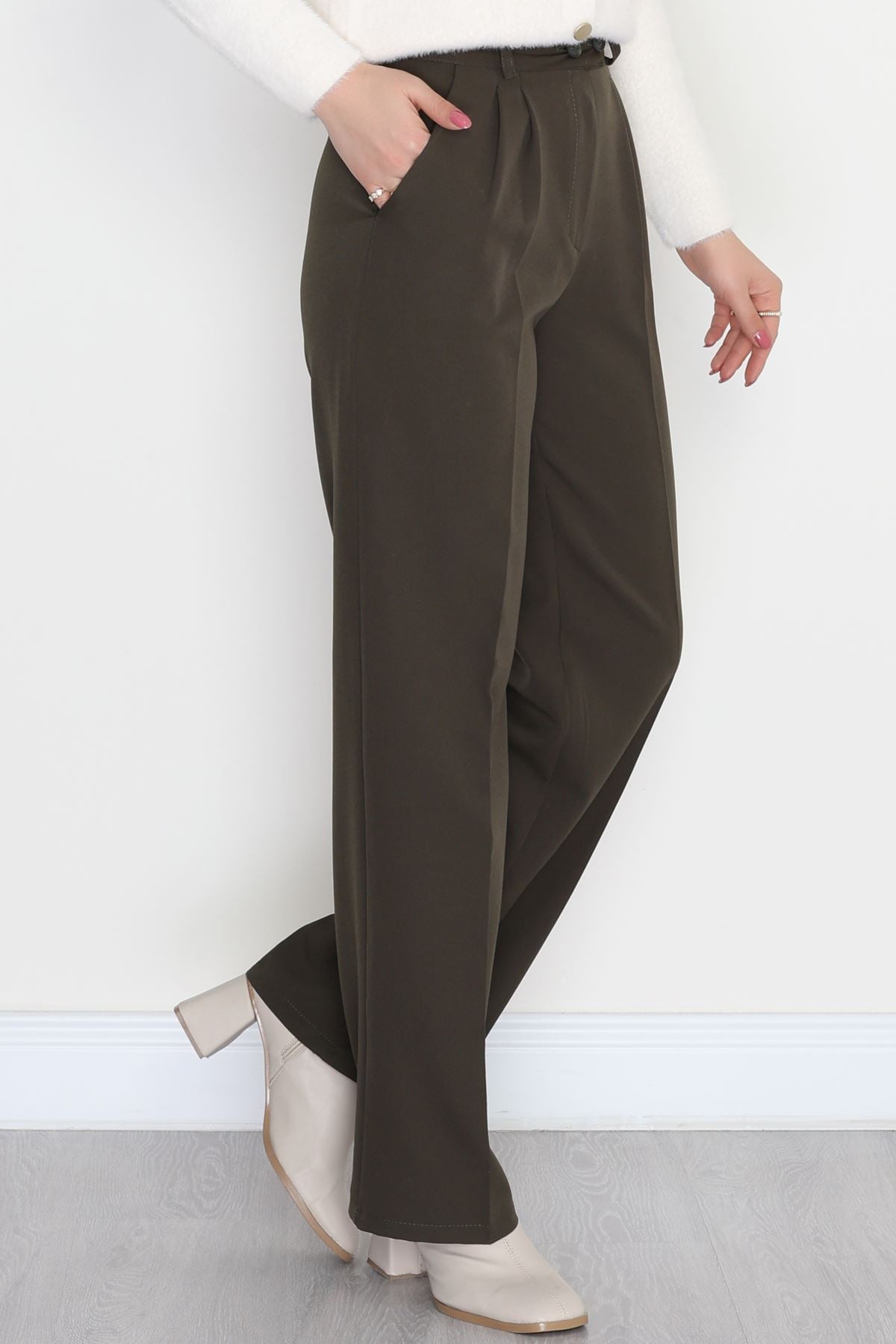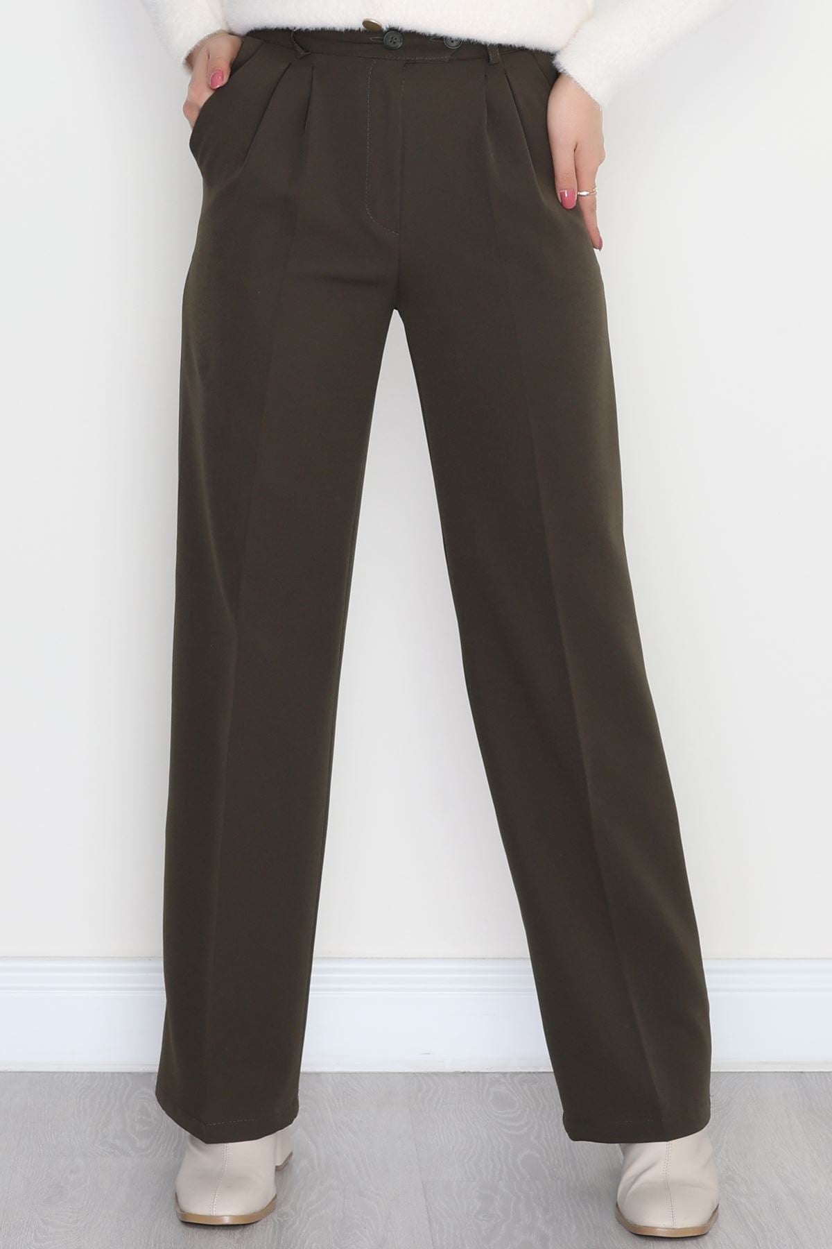 Bel Lastikli Palazzo Pantolon Haki - 30388.1397.