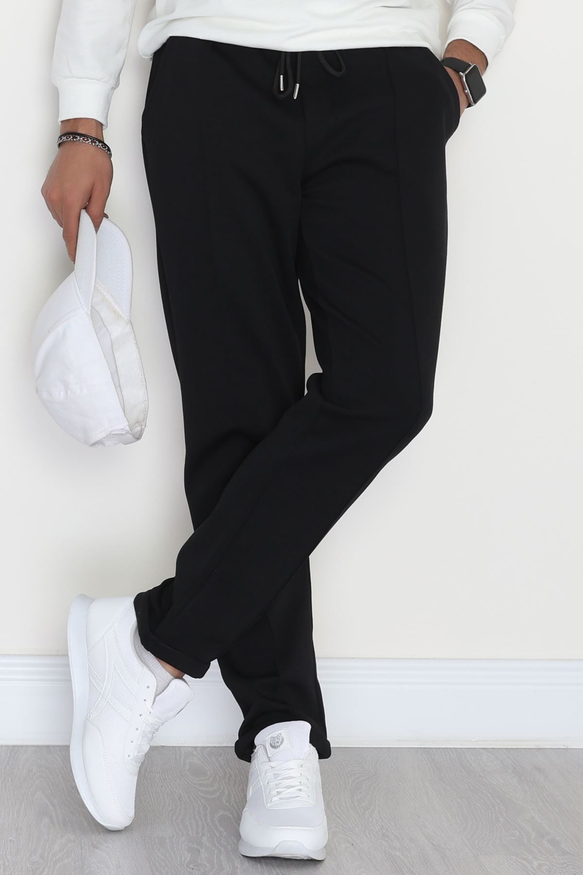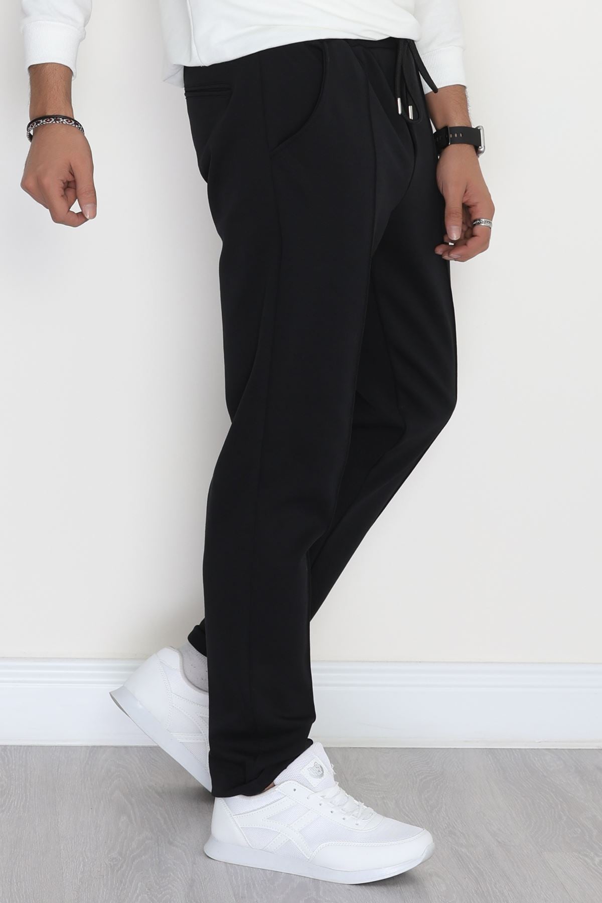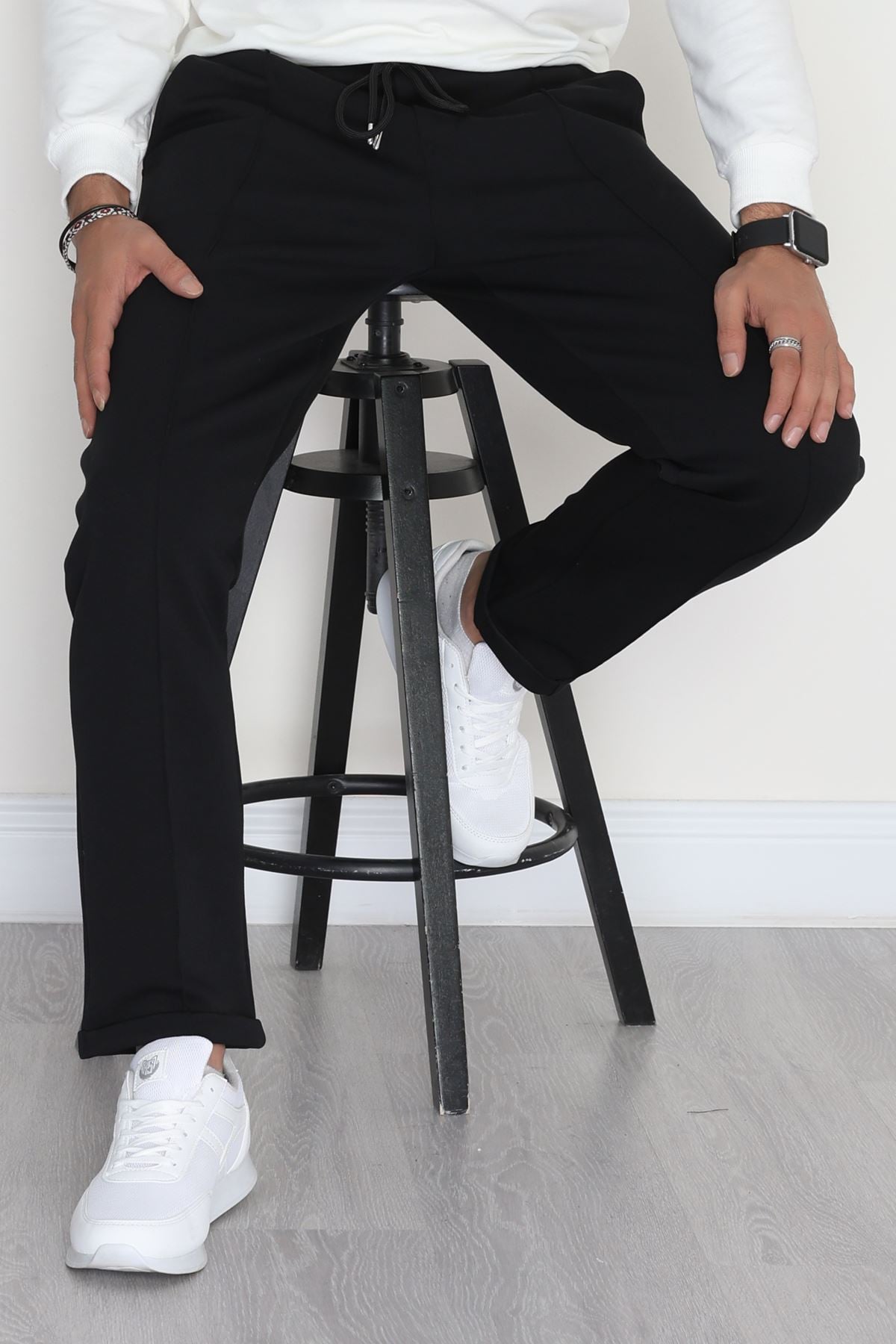 Beli Lastikli Çımalı Double Paça Erkek Pantolon Siyah - 80845.1837.