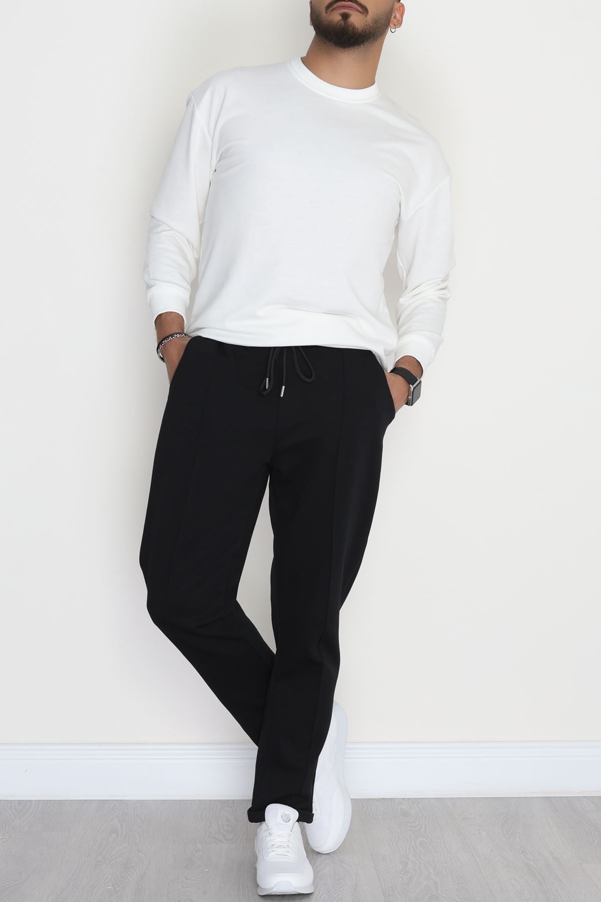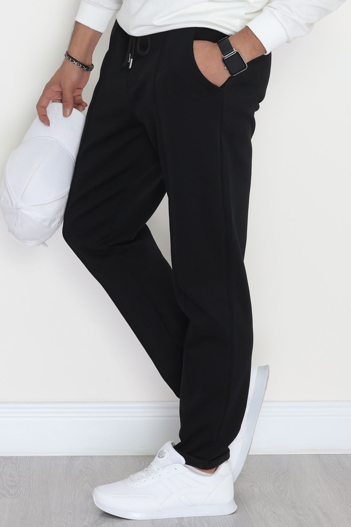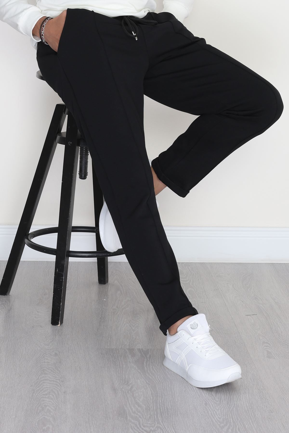 Beli Lastikli Çımalı Double Paça Erkek Pantolon Siyah - 80845.1837.