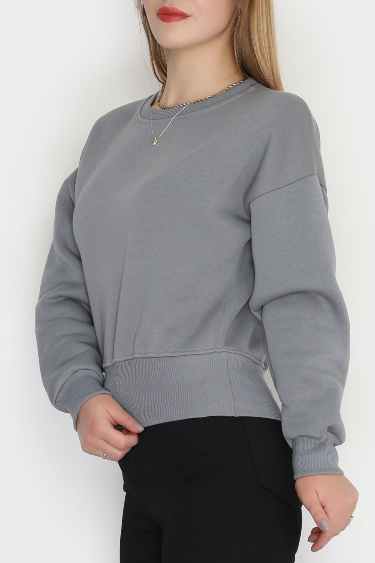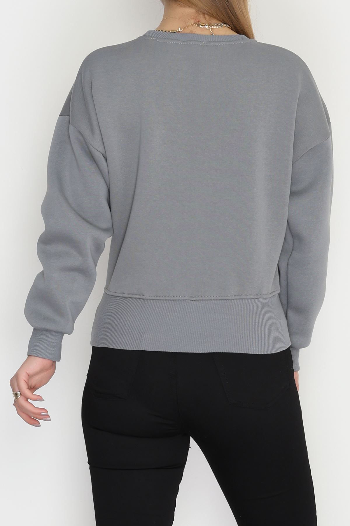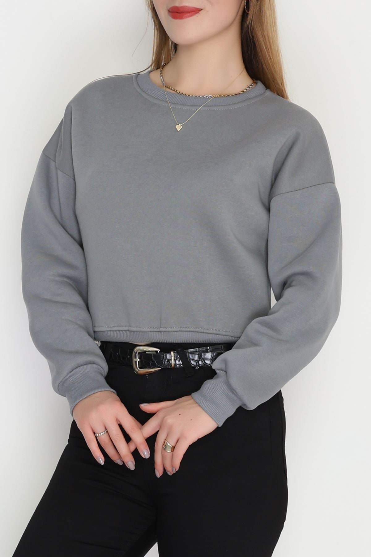 Bisiklet Yaka 3 İplik Crop Sweat Füme - 20968.1878.