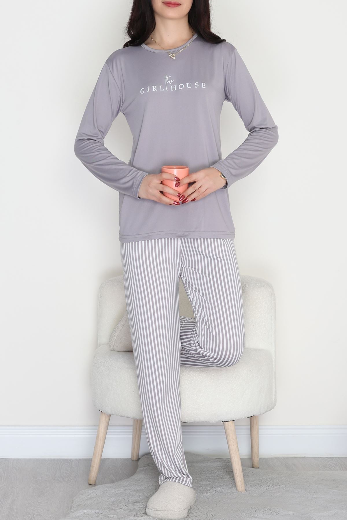 Soft Milan Enjeksiyon Baskılı Pijama Takımı Gribeyaz - 664.1287.