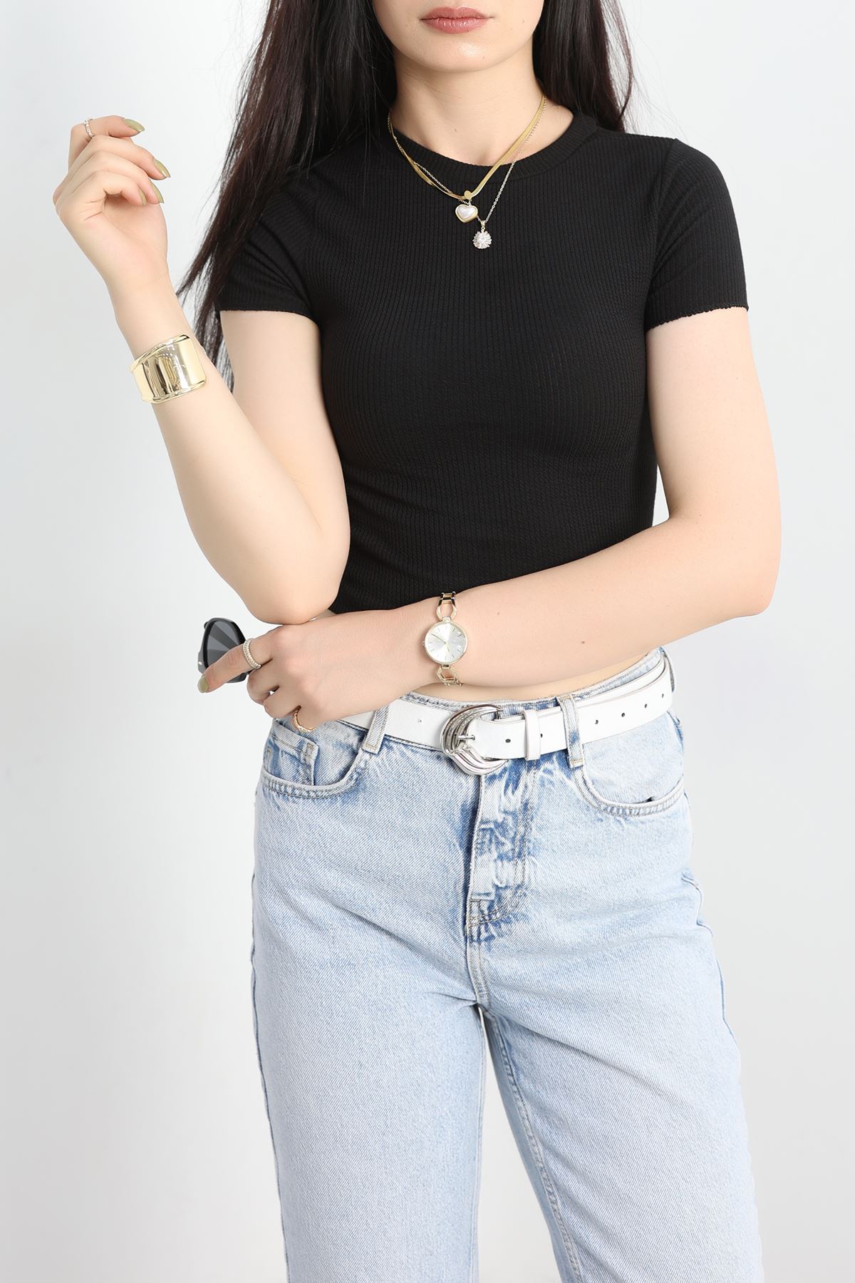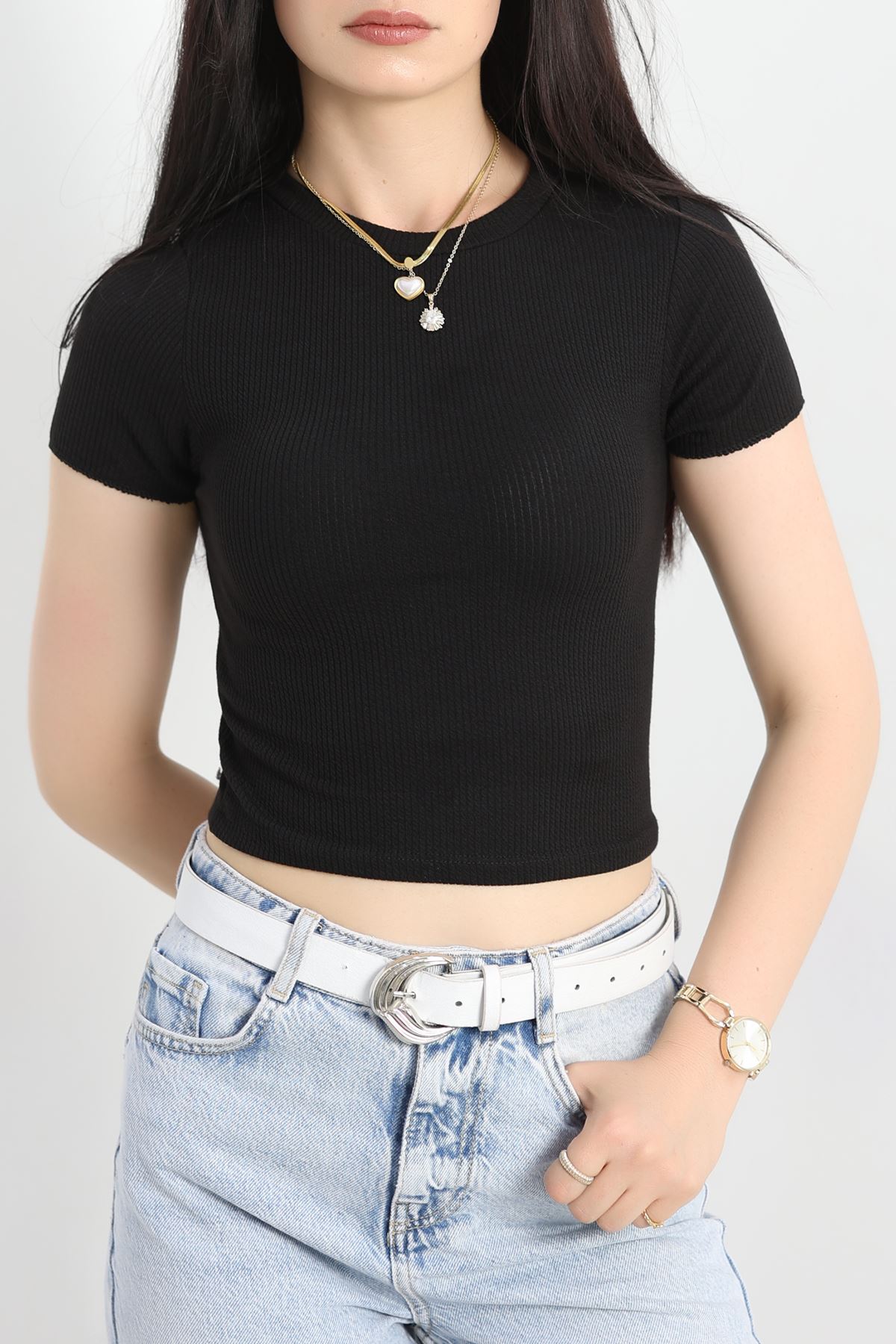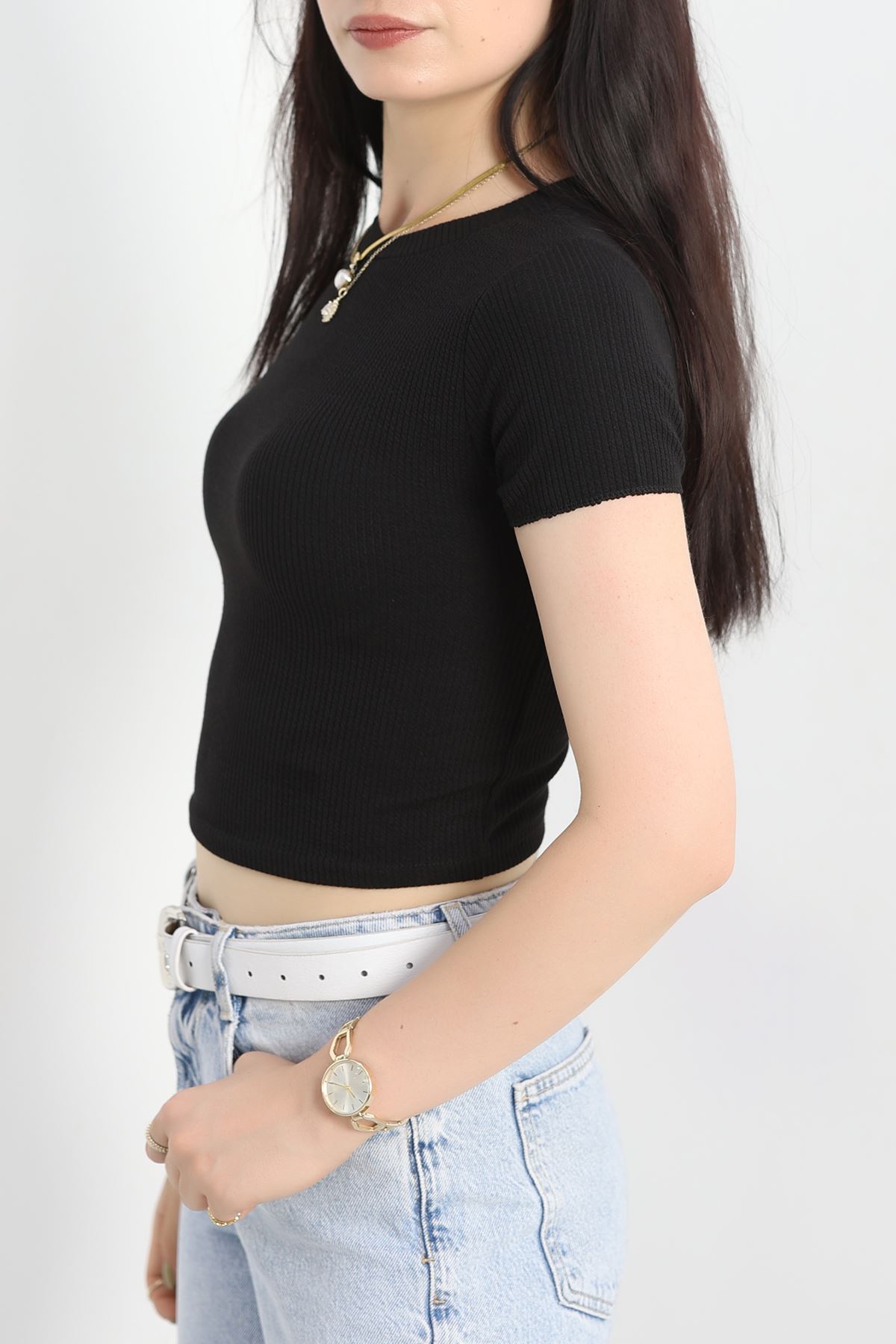 Bisiklet Yaka Crop Body Siyah - 70537.1388.