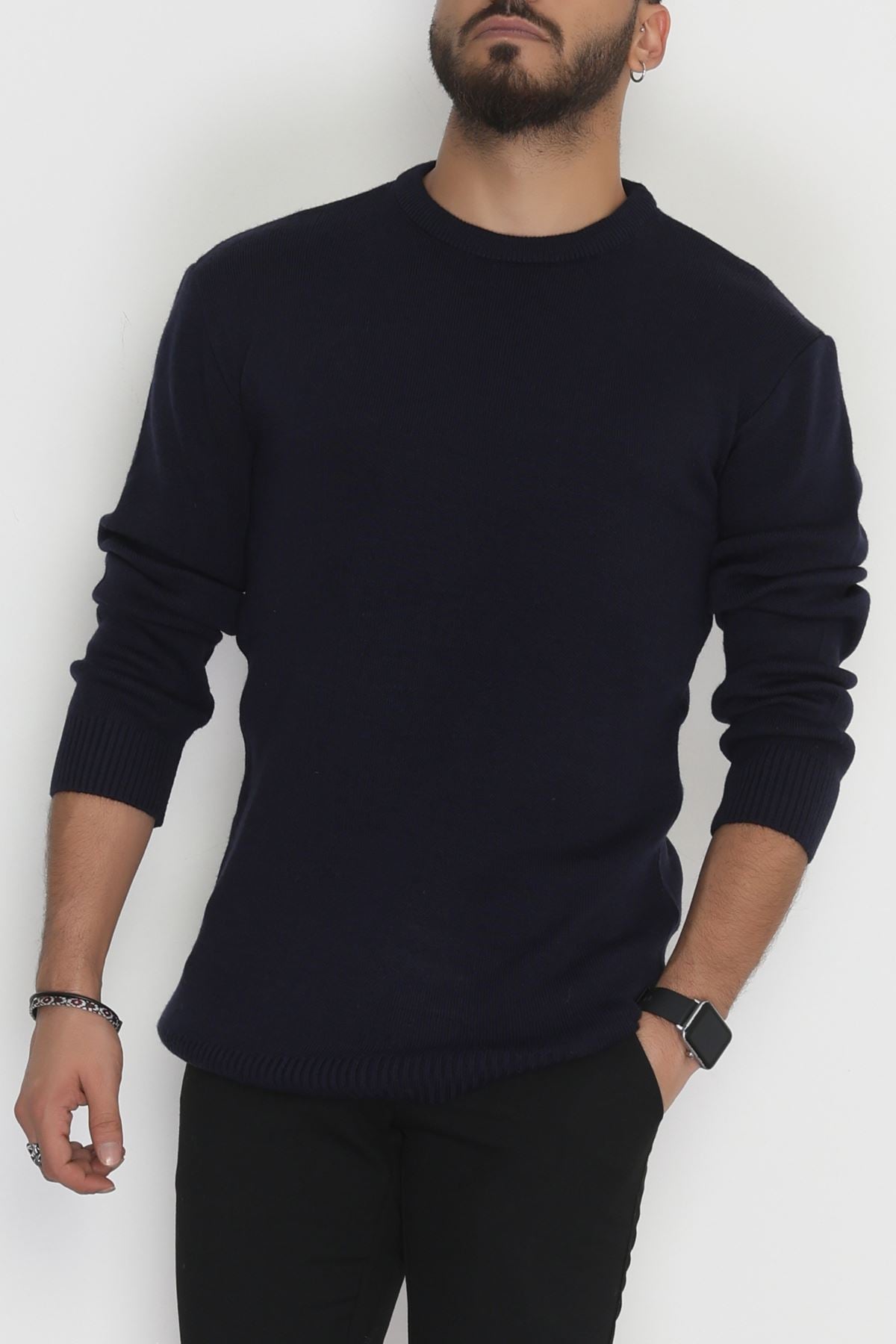 Bisiklet Yaka Erkek Triko Lacivert - 70780.1766.