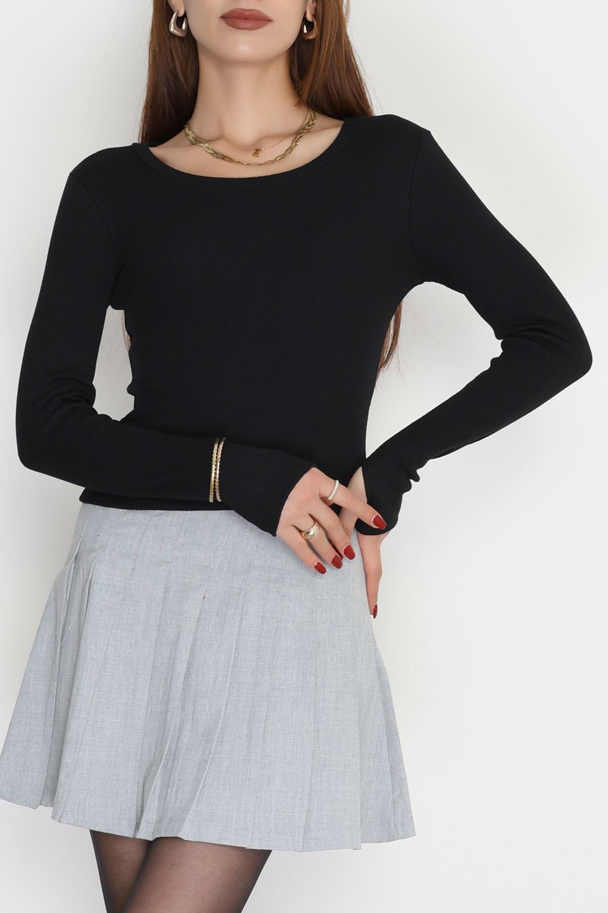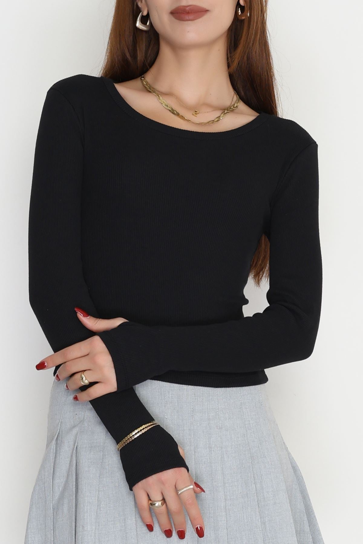Bisiklet Yaka Parmak Geçmeli Kaşkorse Body Siyah - 70708.1748.