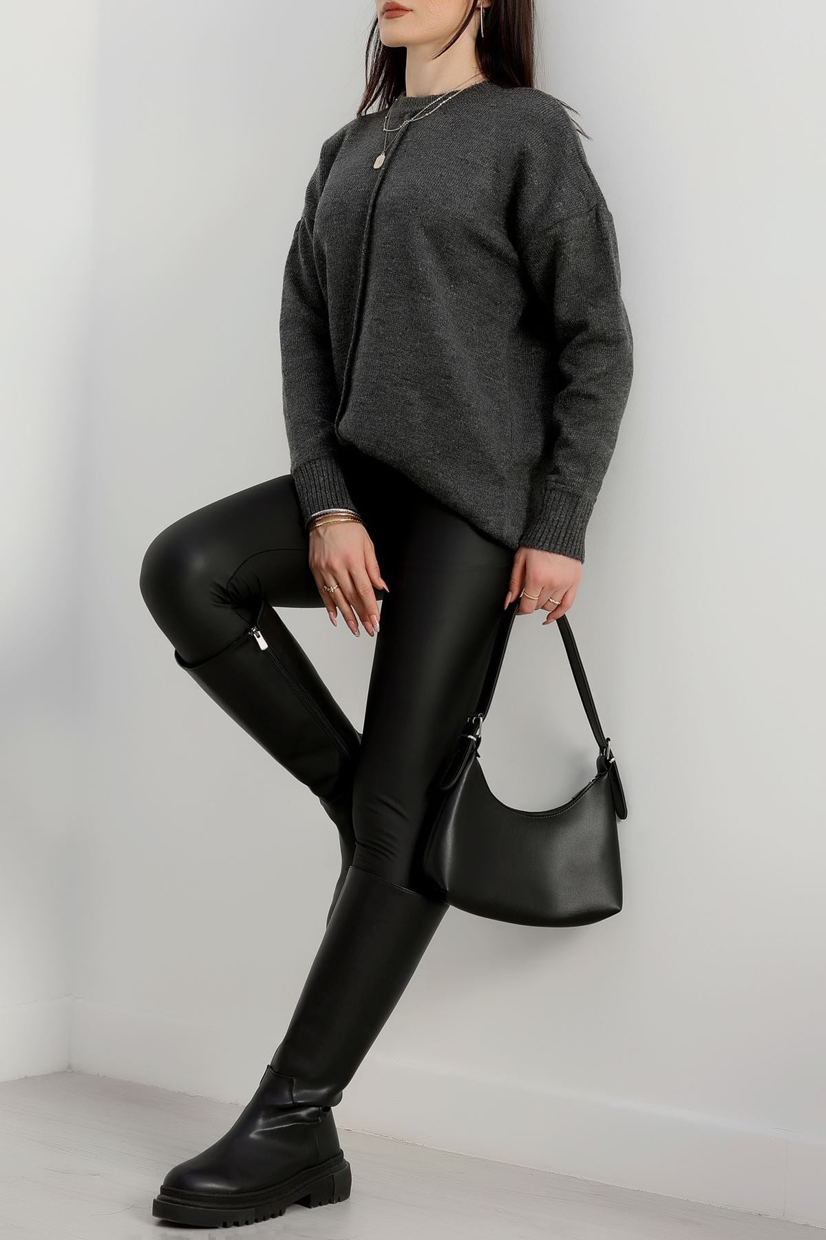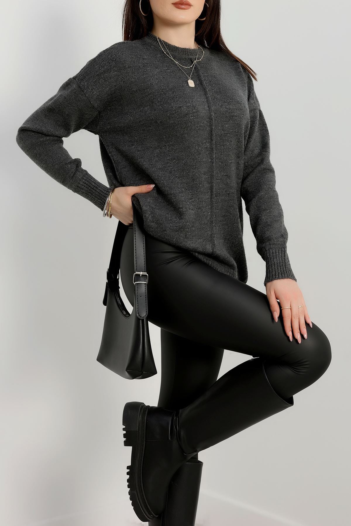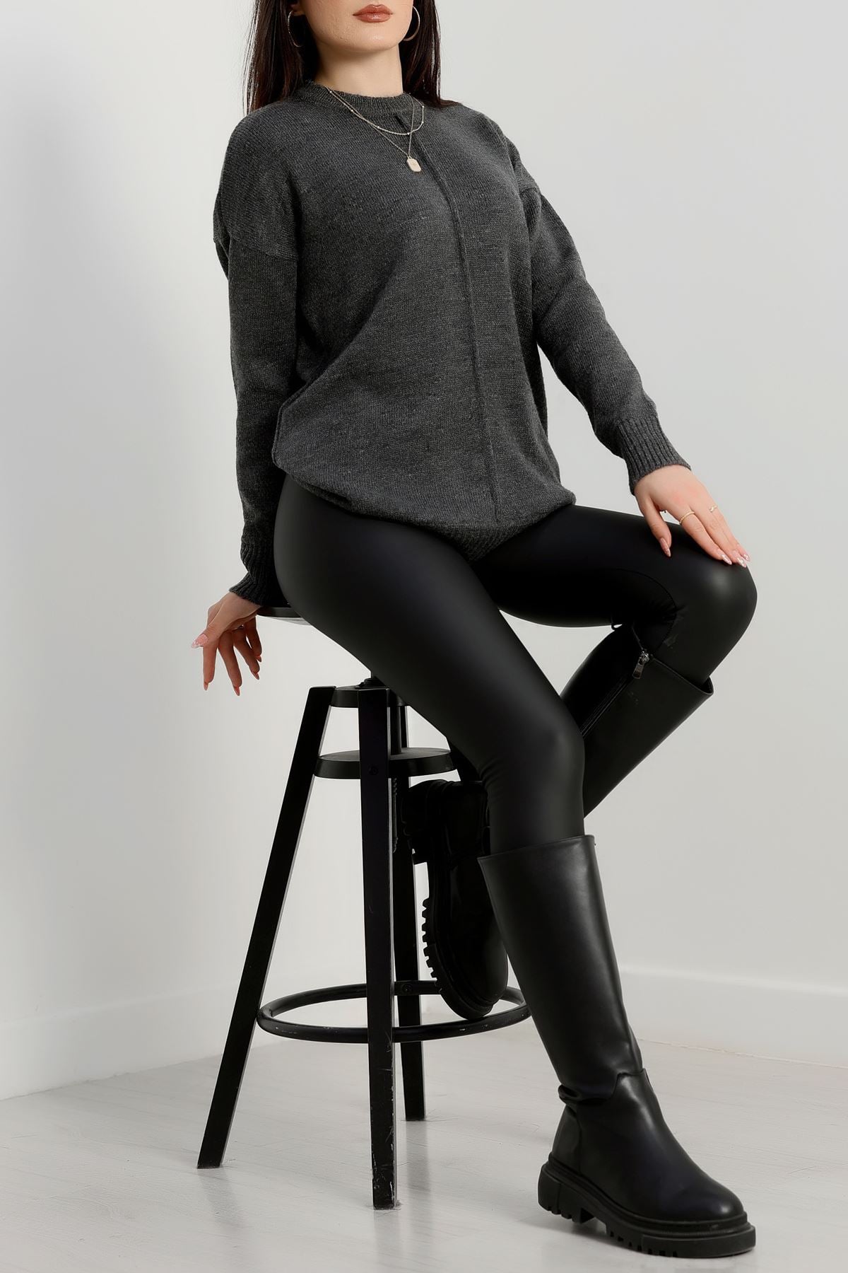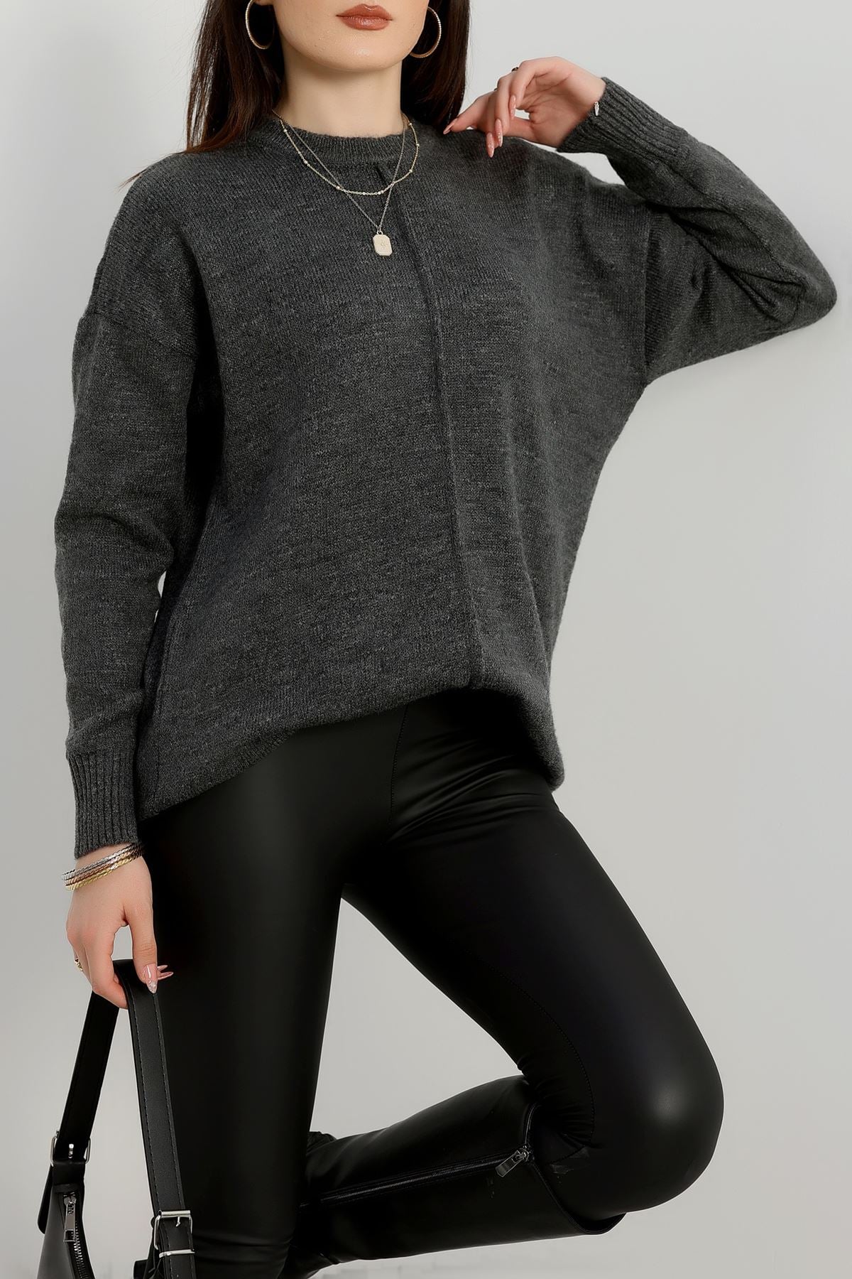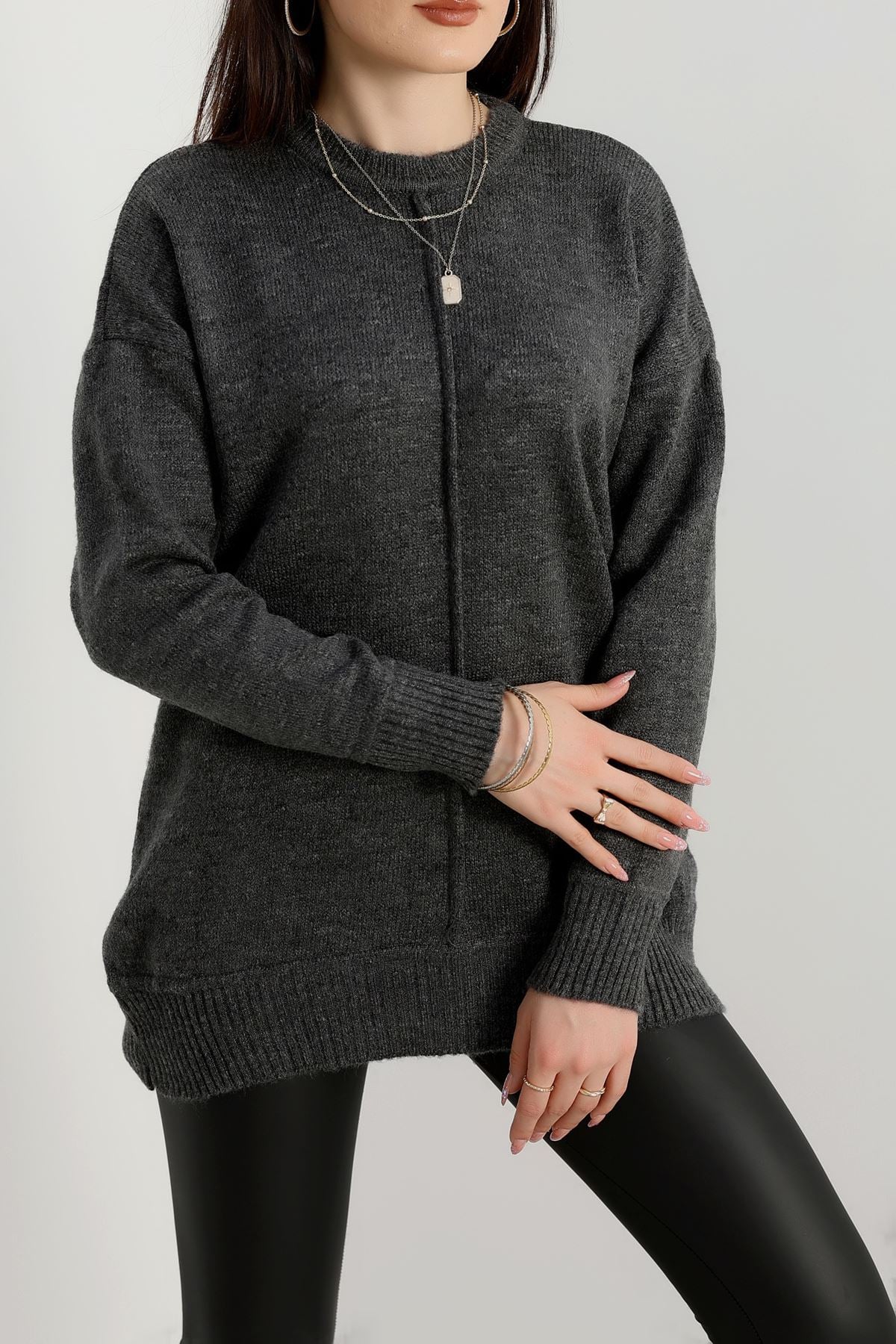 Bisiklet Yaka Triko Antrasit - 2345.1765.