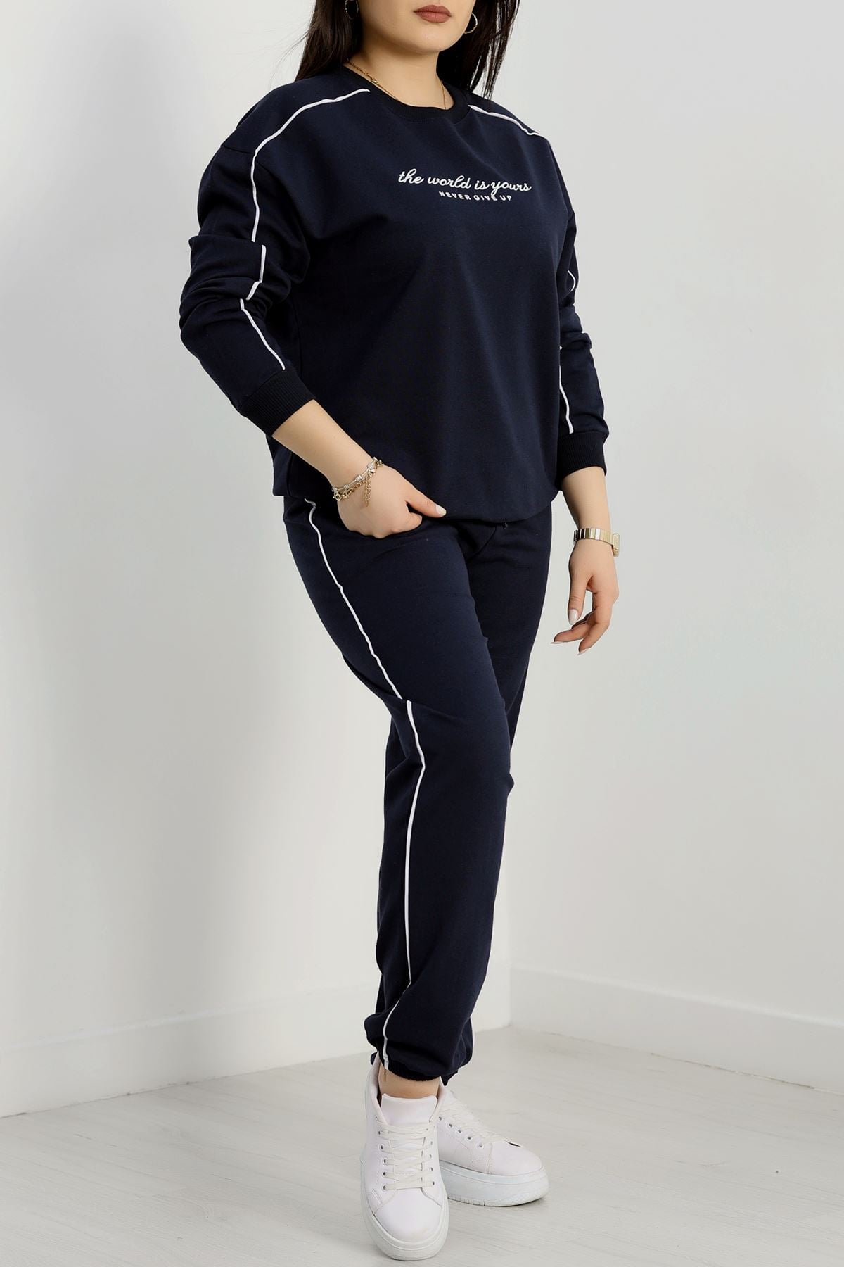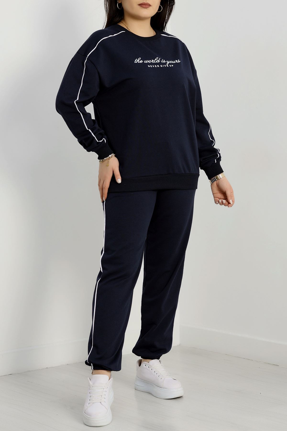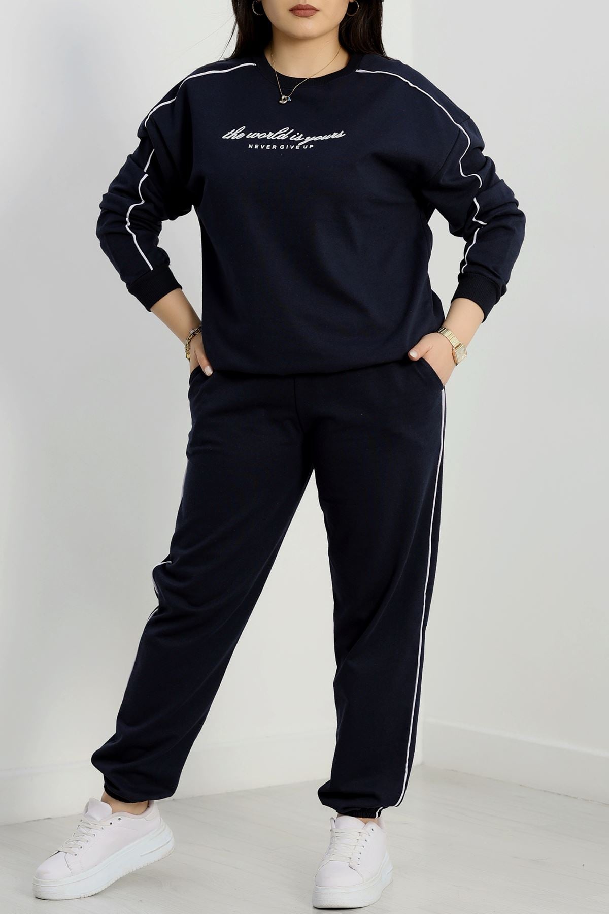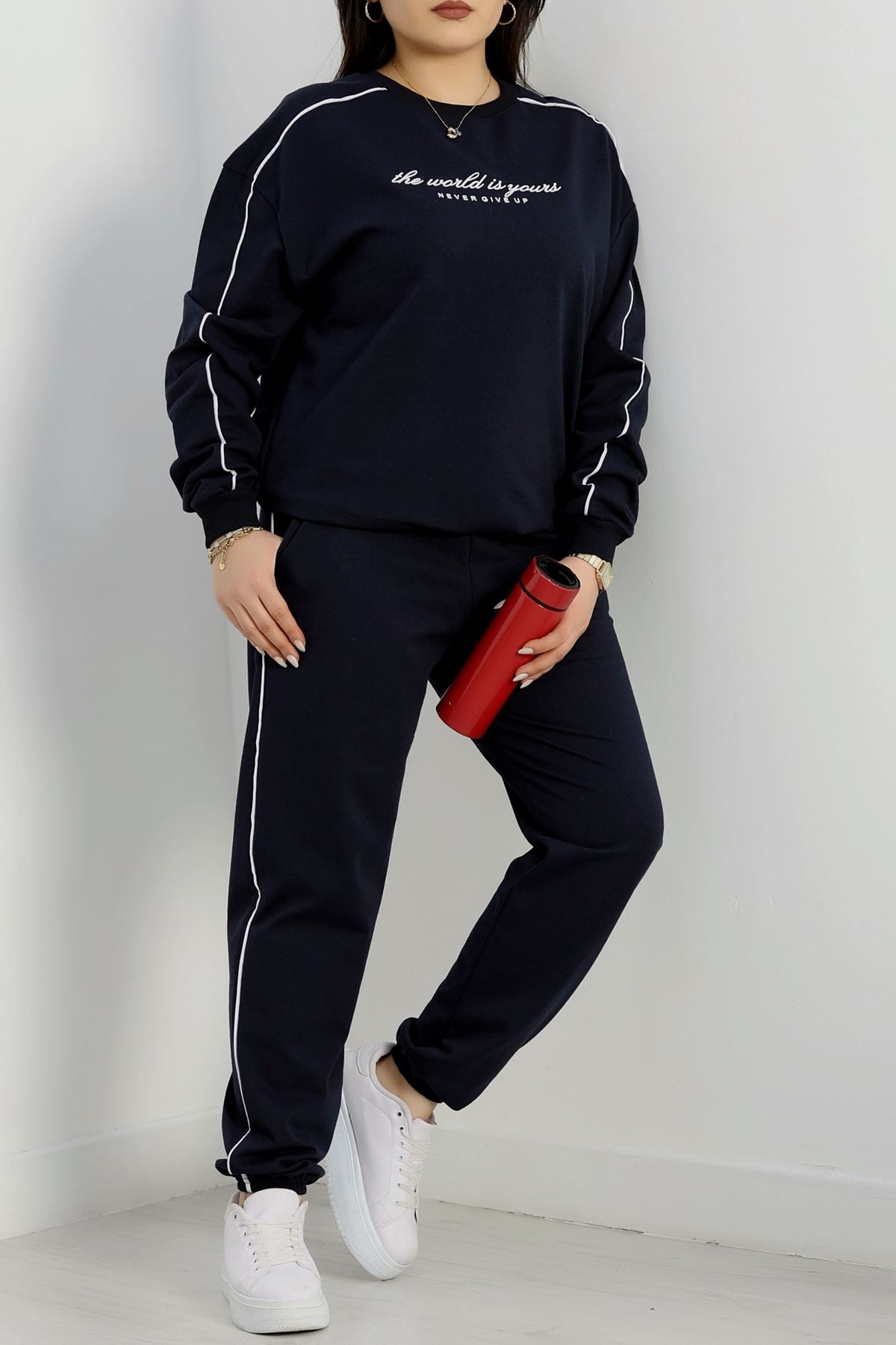 Biyeli 2 İplik Büyük Beden Eşofman Takımı Lacivert - 50805.1857.