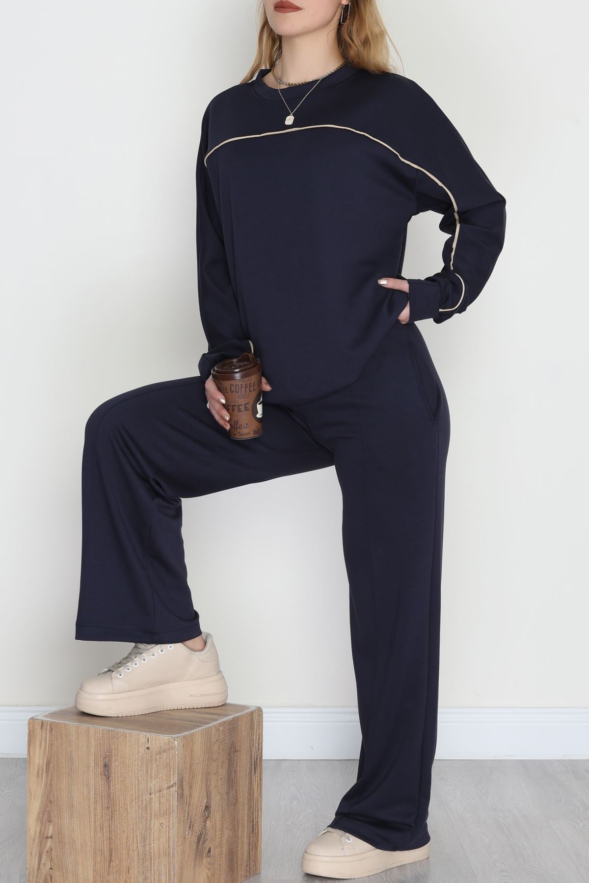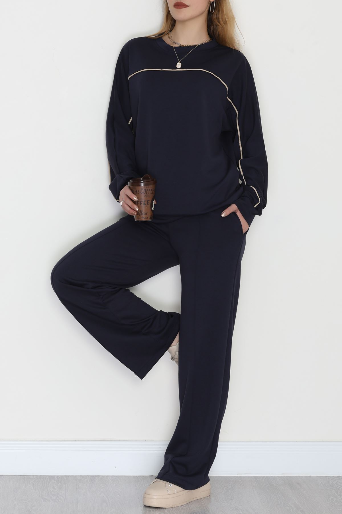 Biyeli Modal Kumaş Takım Lacivert - 4087.1247.