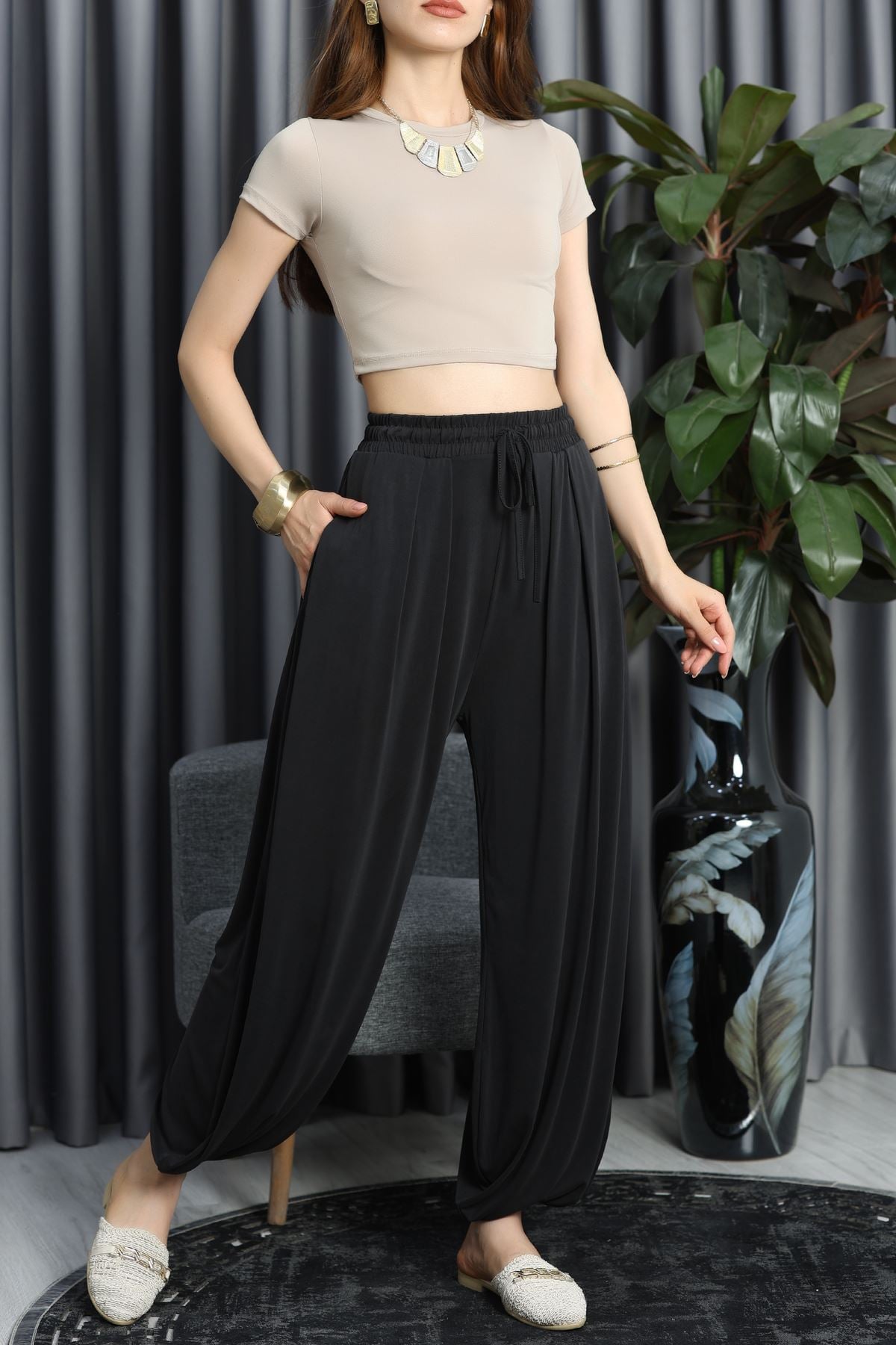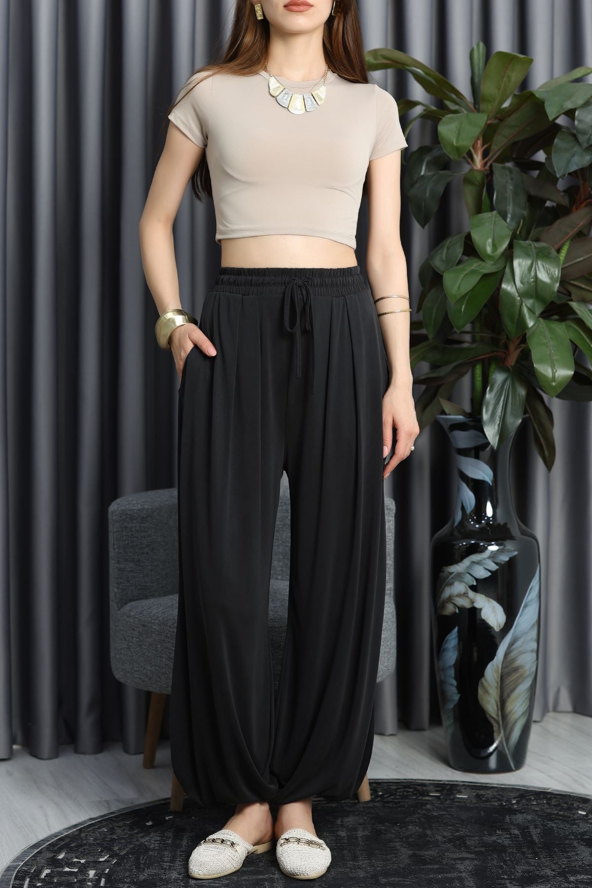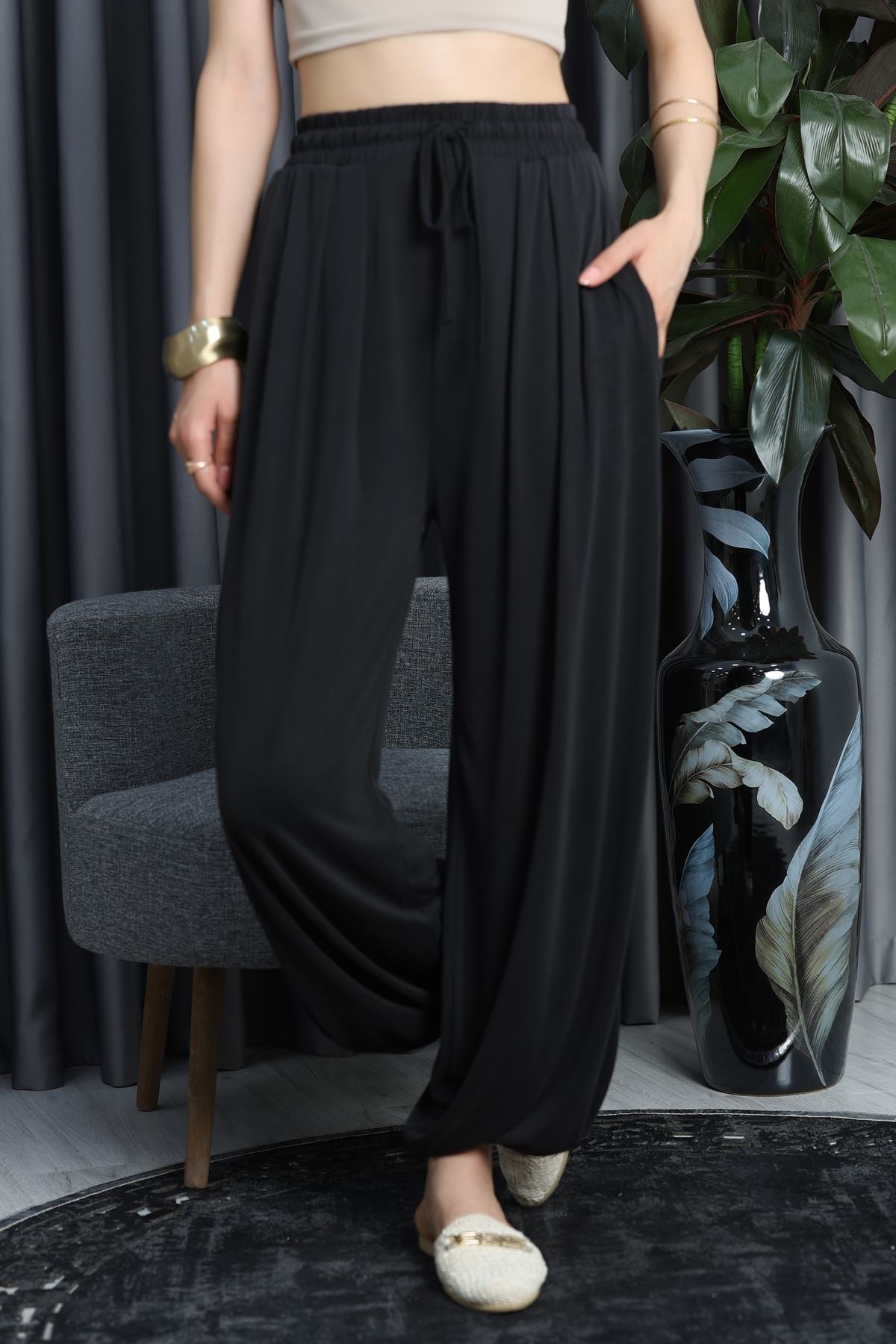 Bol Kesim Şalvar Pantolon Siyah - 90063.1758.