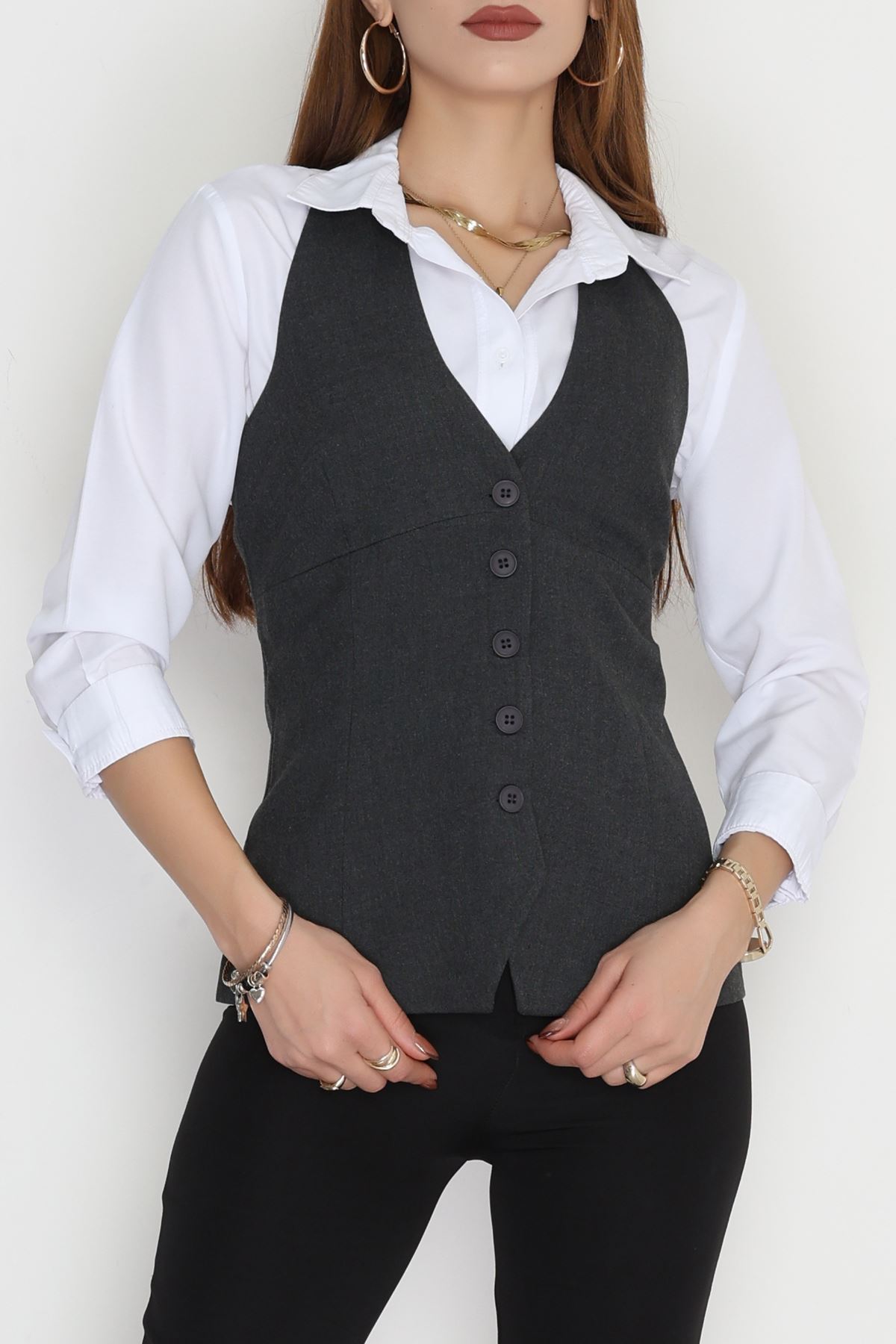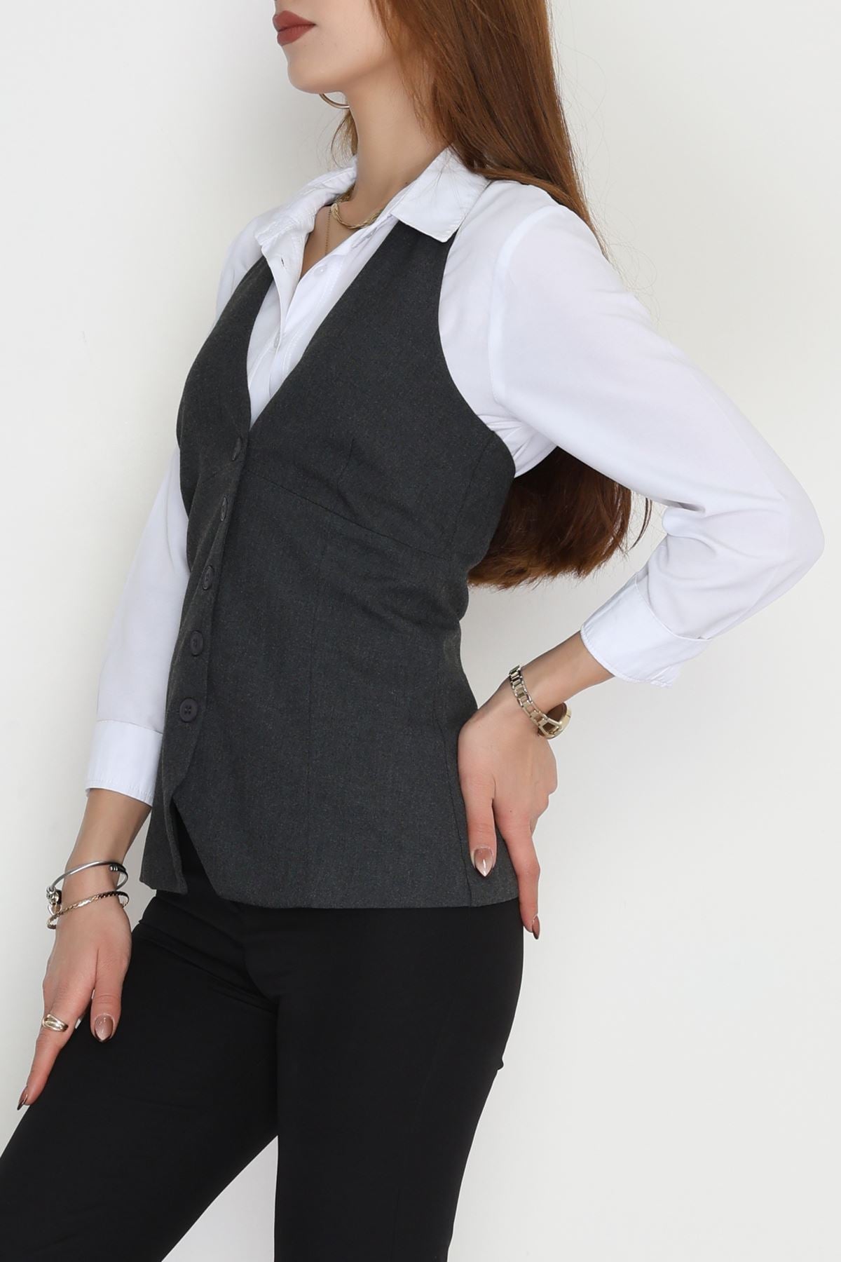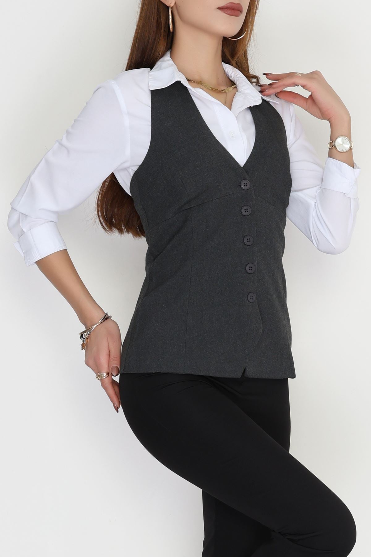 Boyundan Geçmeli Düğmeli Yelek Antrasit - 120564.444.