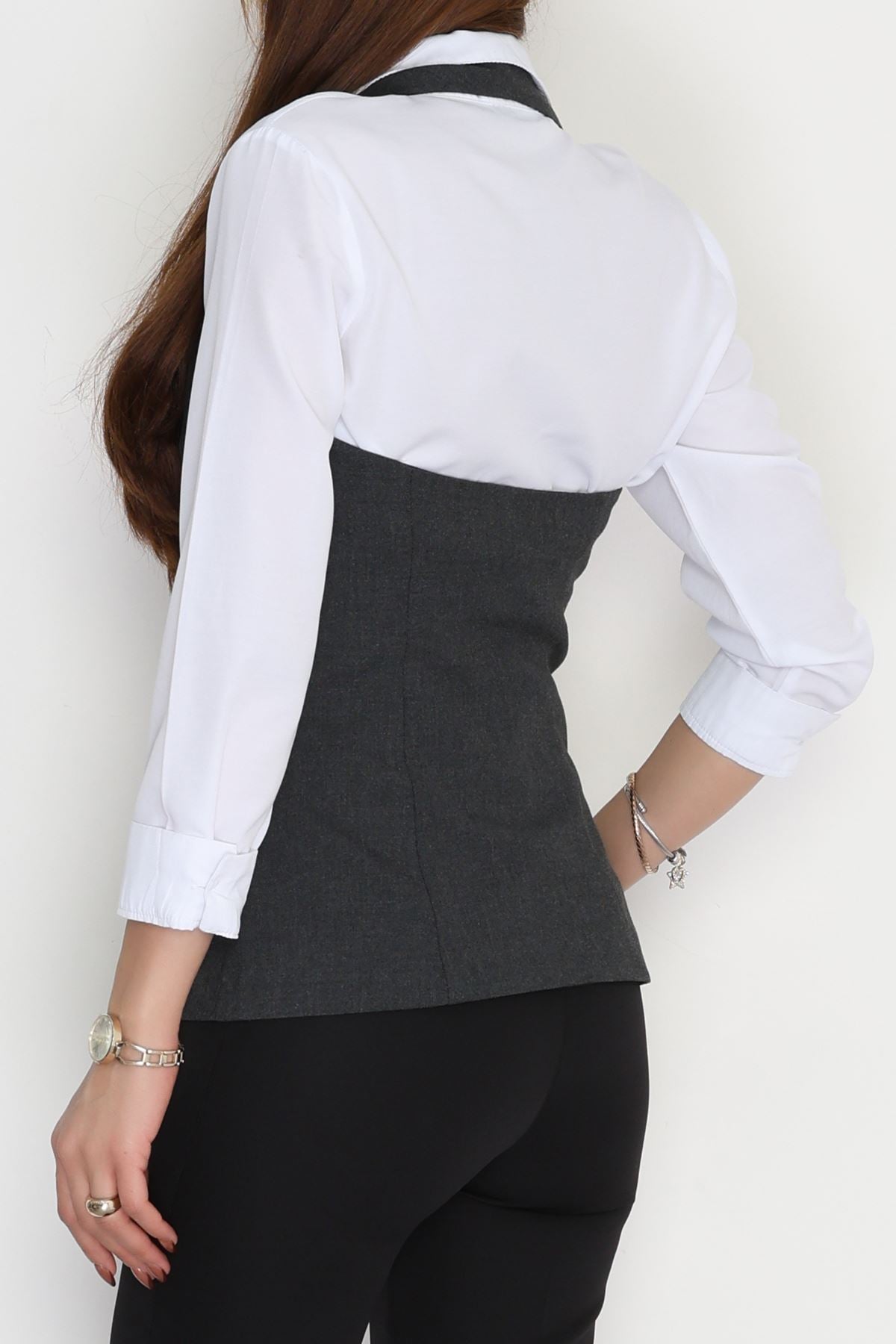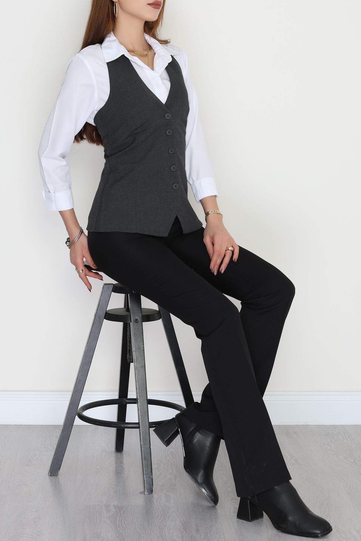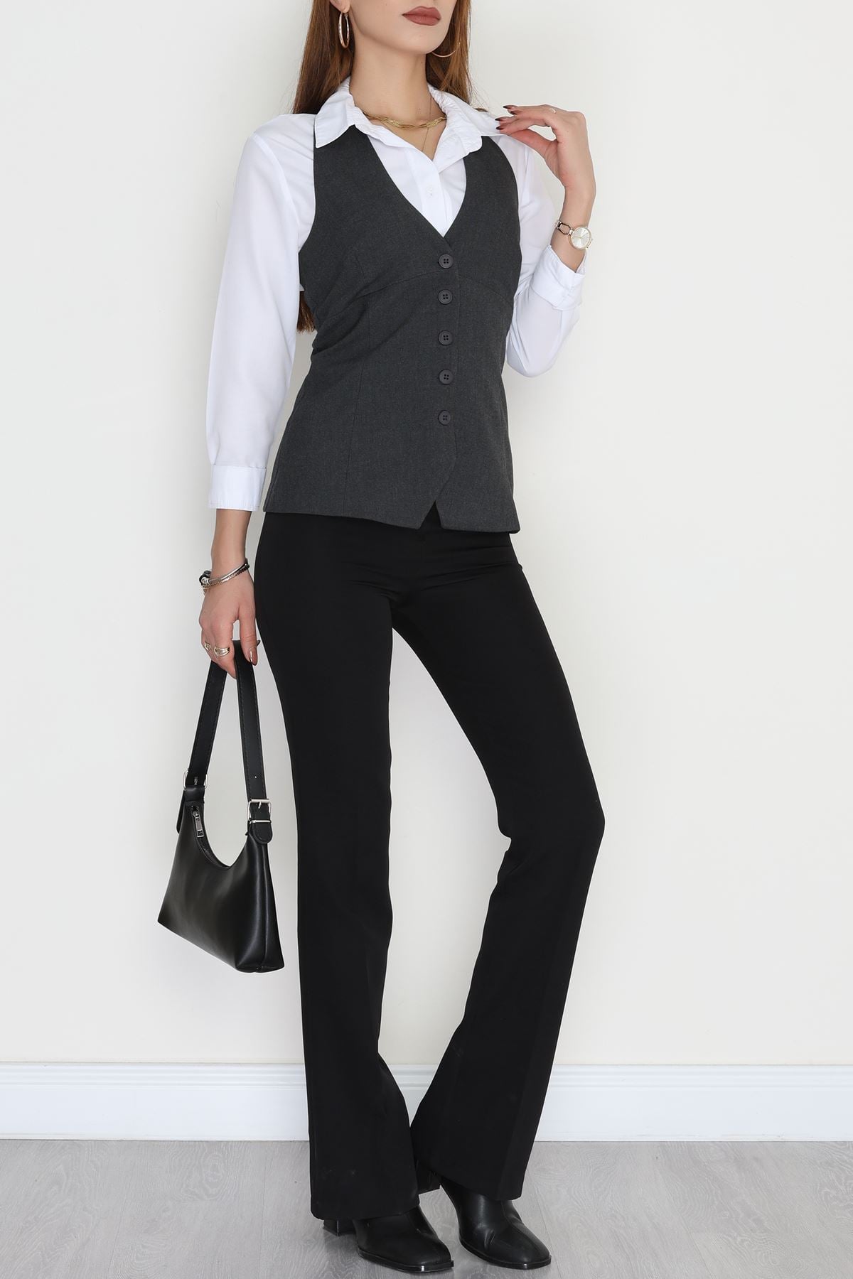 Boyundan Geçmeli Düğmeli Yelek Antrasit - 120564.444.