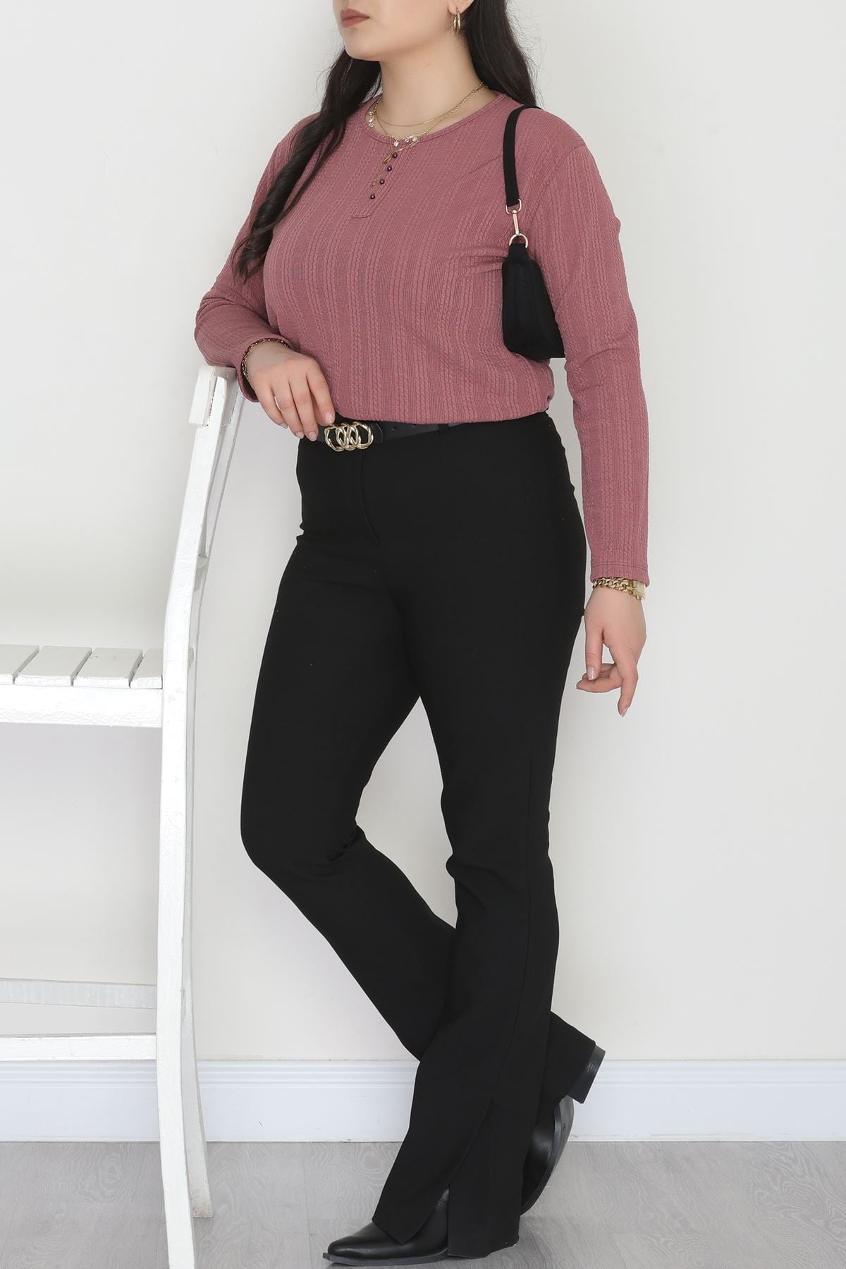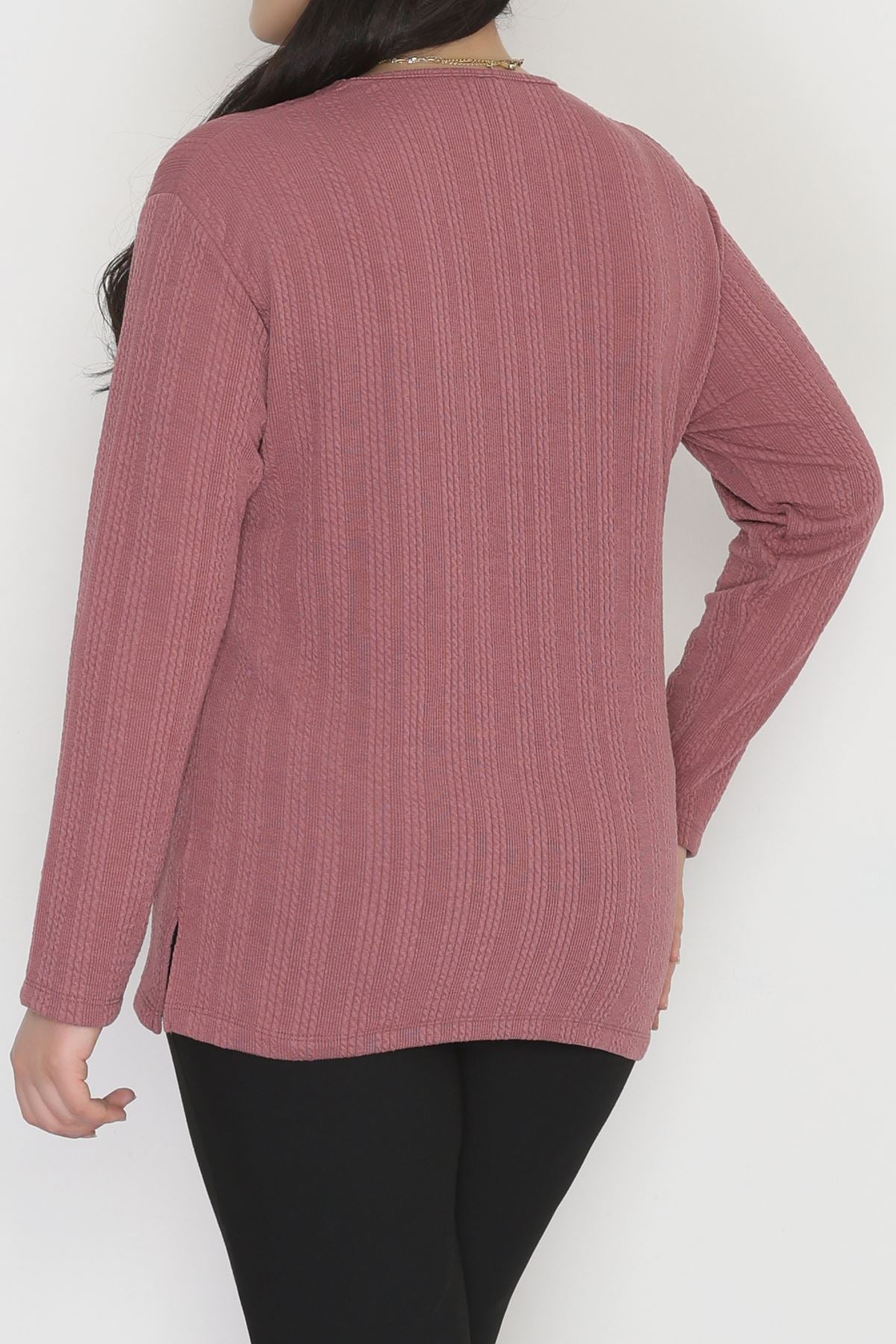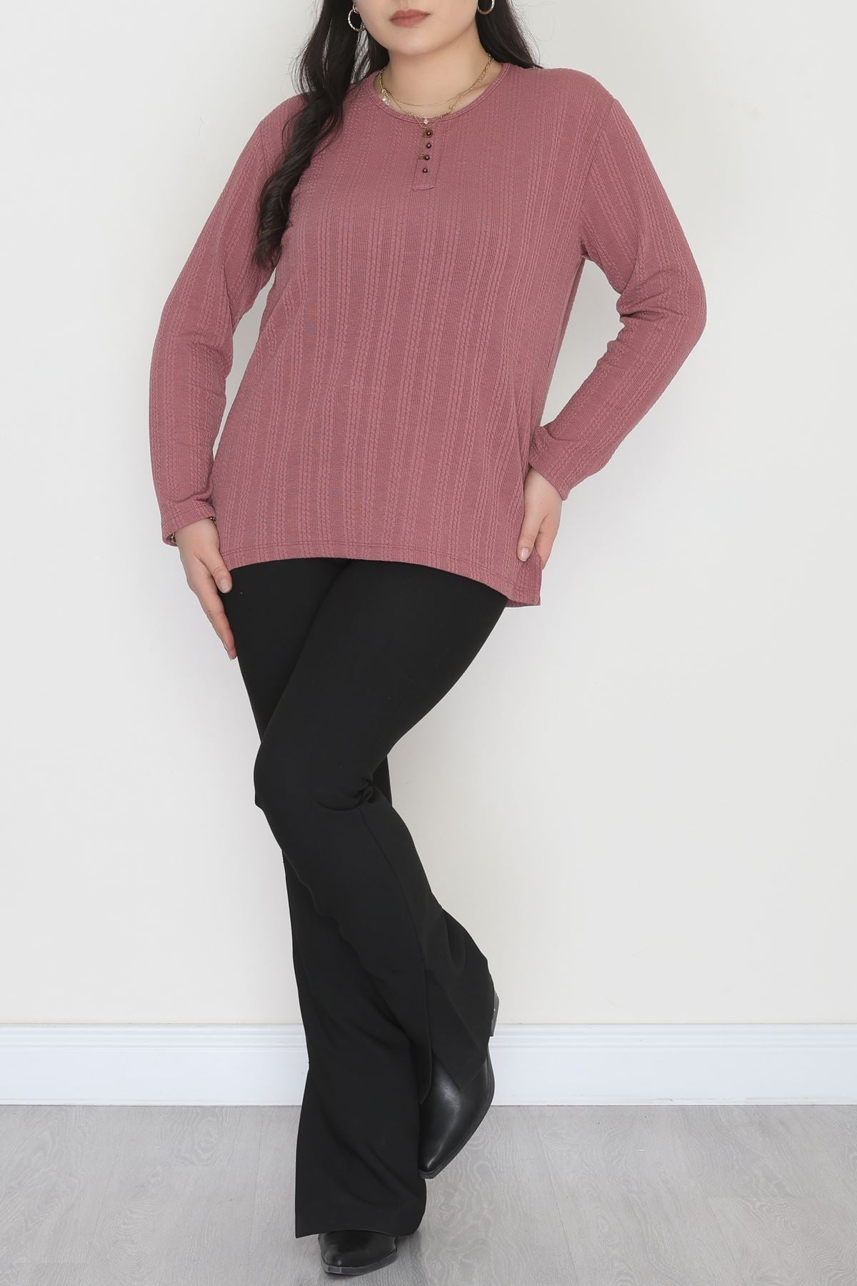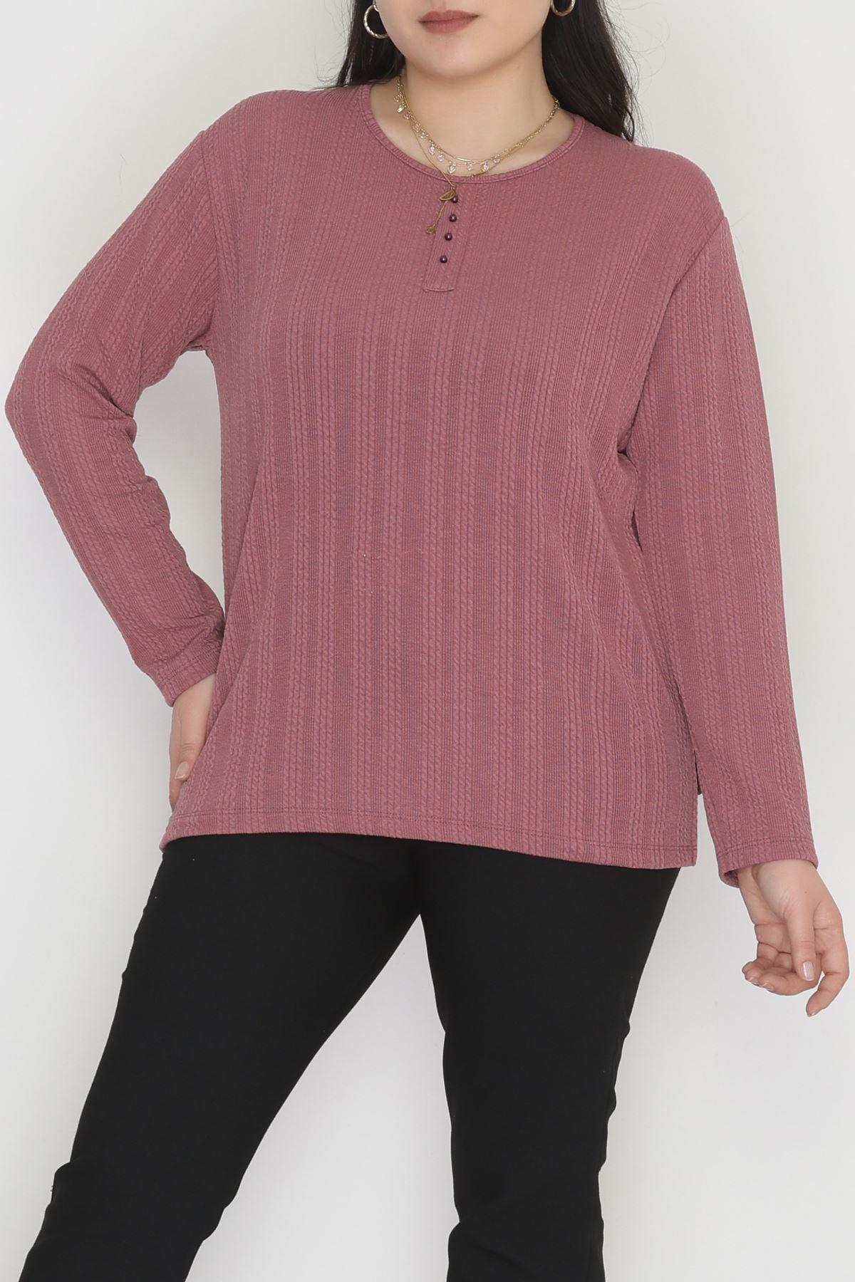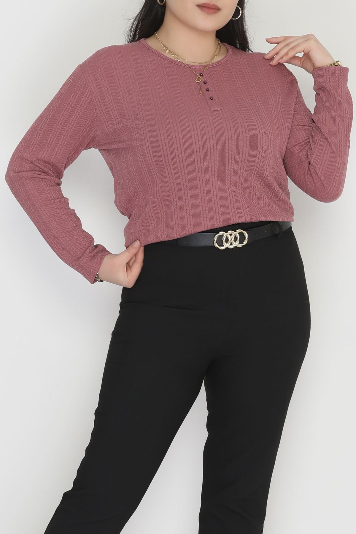 Burgu Kumaş Bisiklet Yaka Büyük Beden Bluz Gülkurusu - 70756.1954.