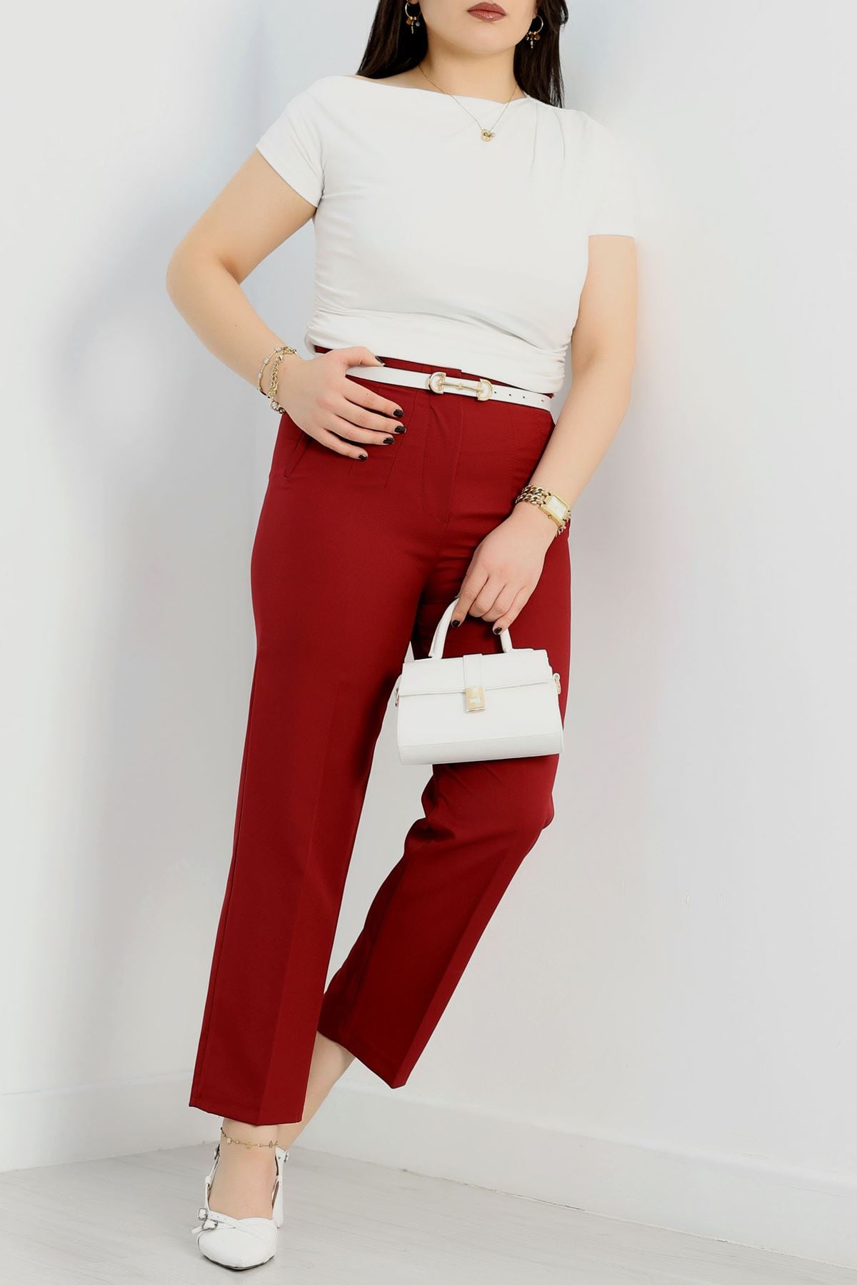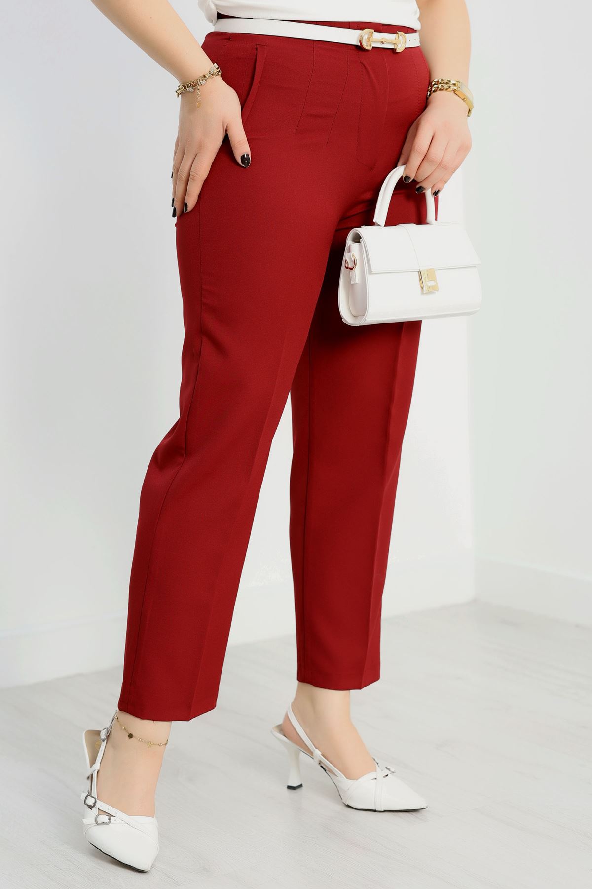 Büyük Beden Double Kumaş Pantolon Bordo - 90055.1920.