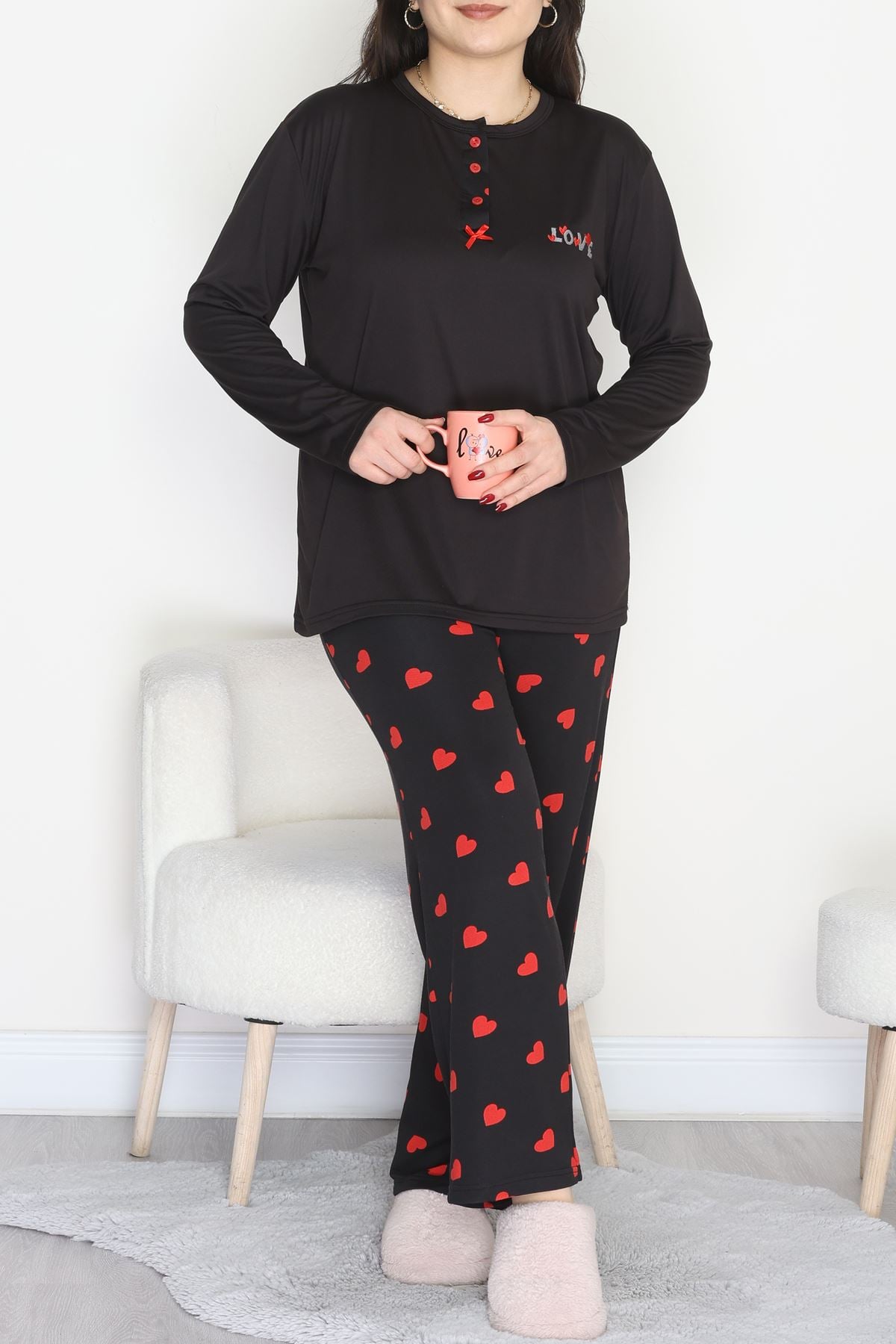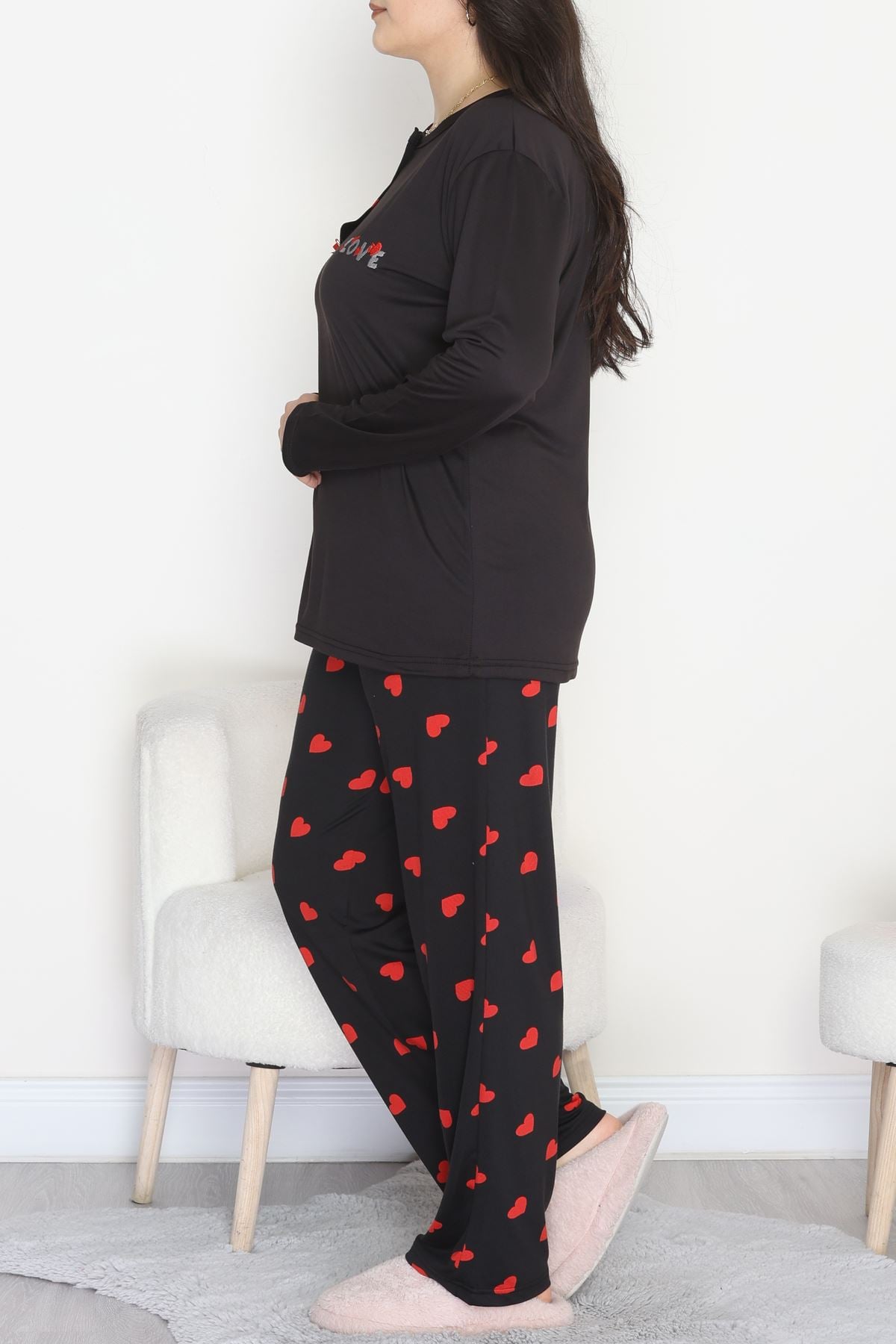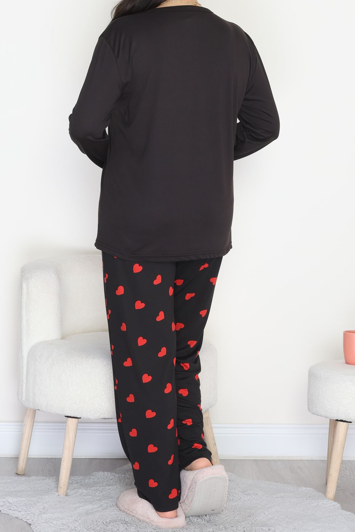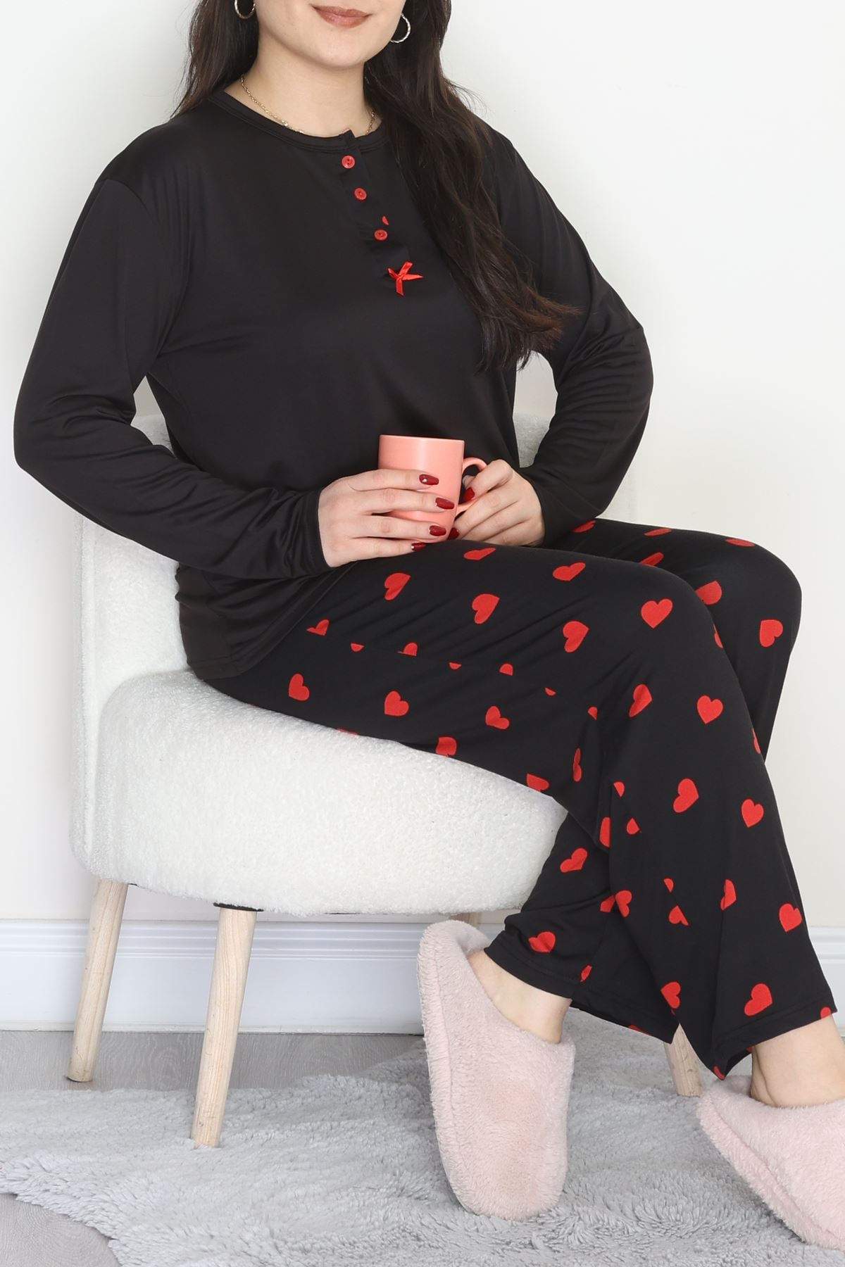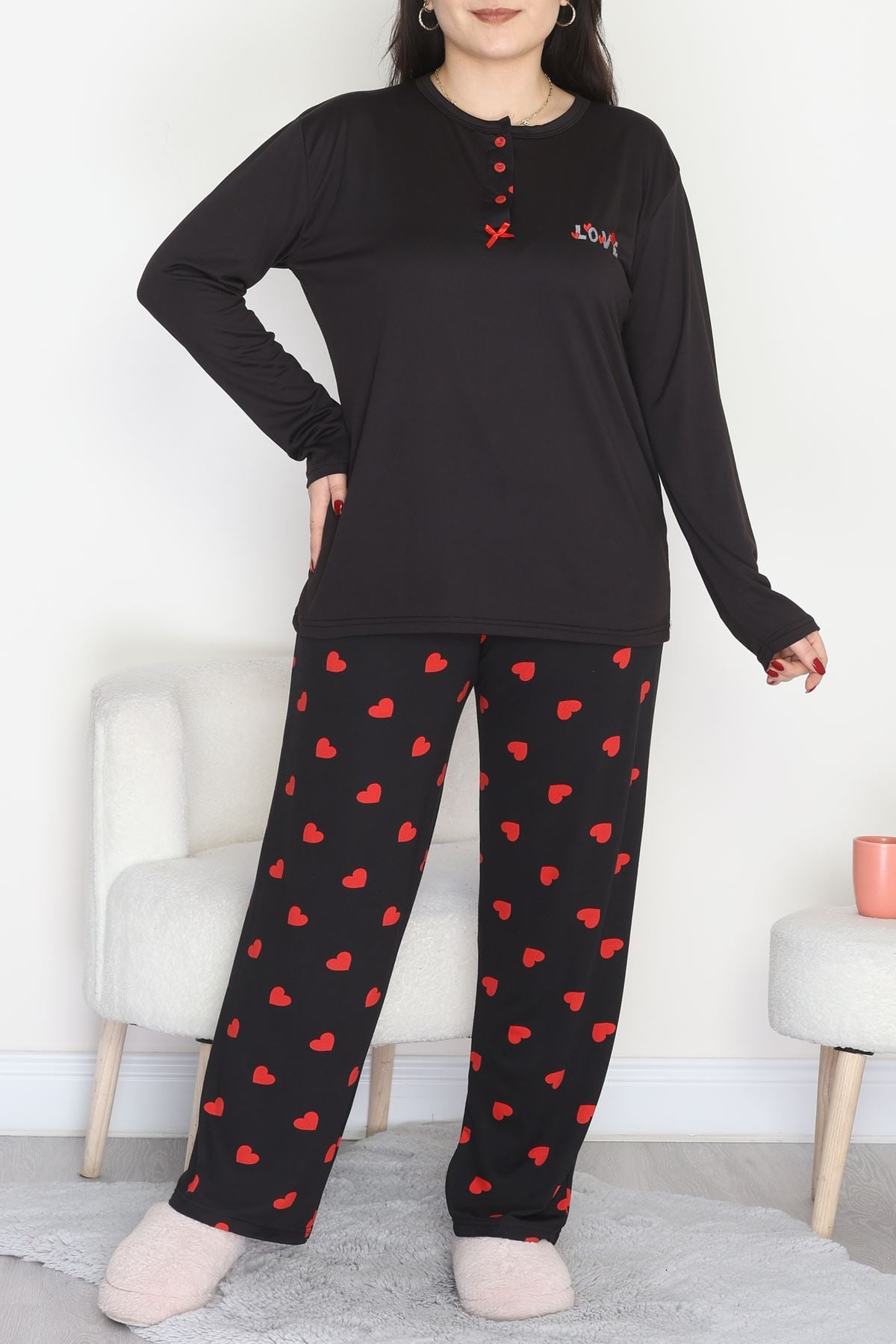 Büyük Beden Patlı Pijama Takımı Siyahkırmızı - 258.1287.