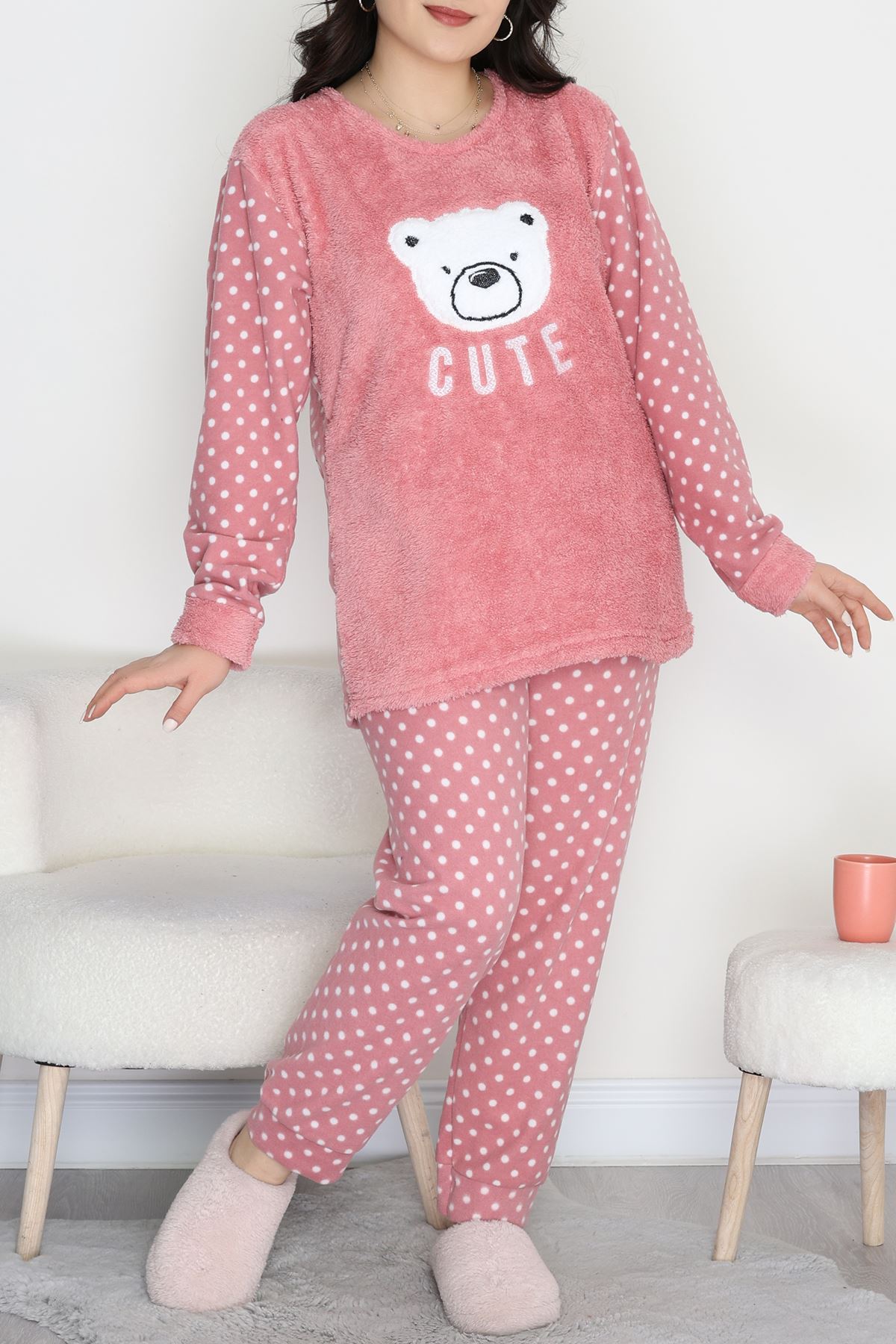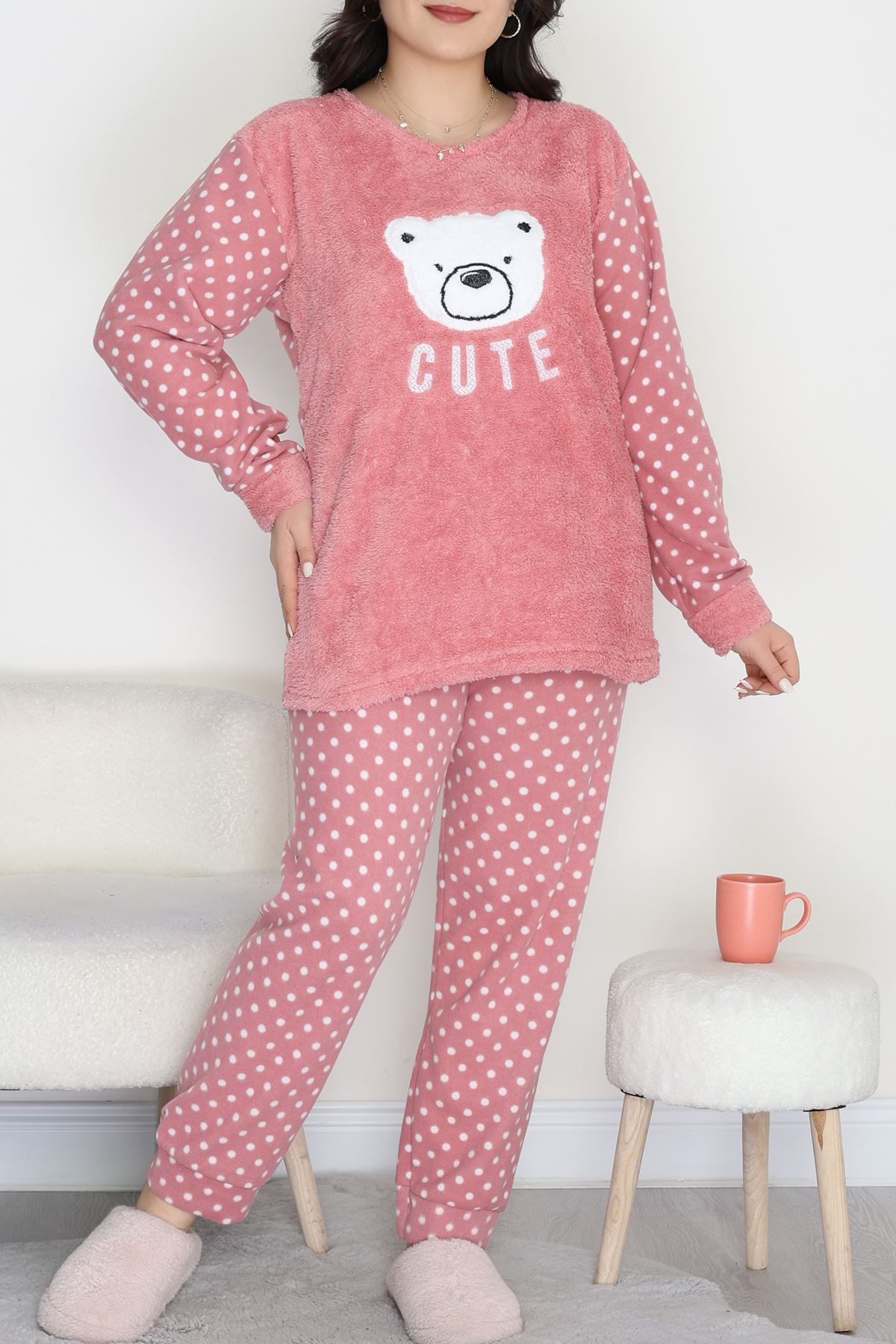 Büyük Beden Polar Pijama Takımı Pudra - 50768.1961.