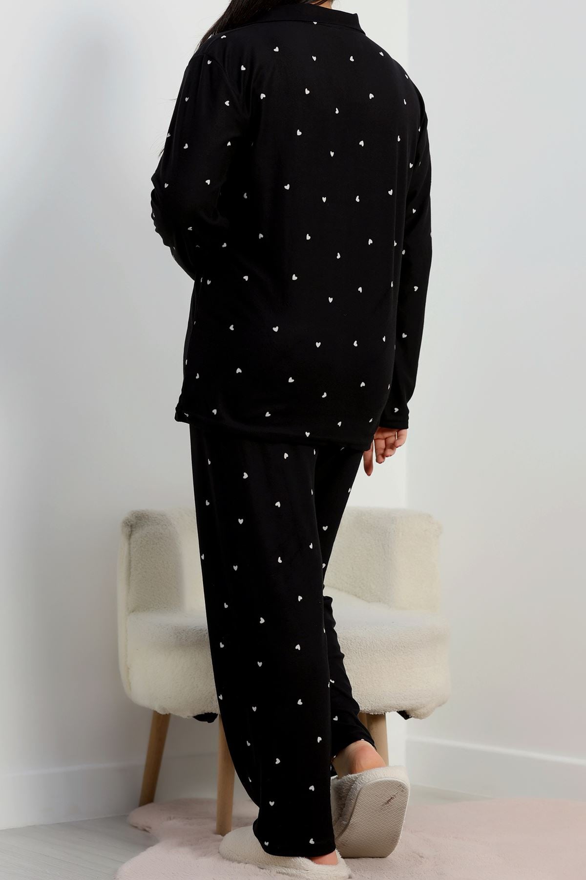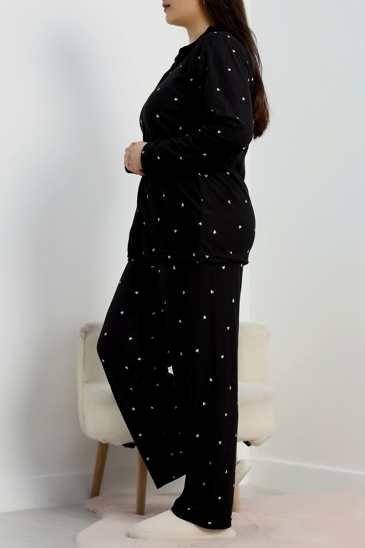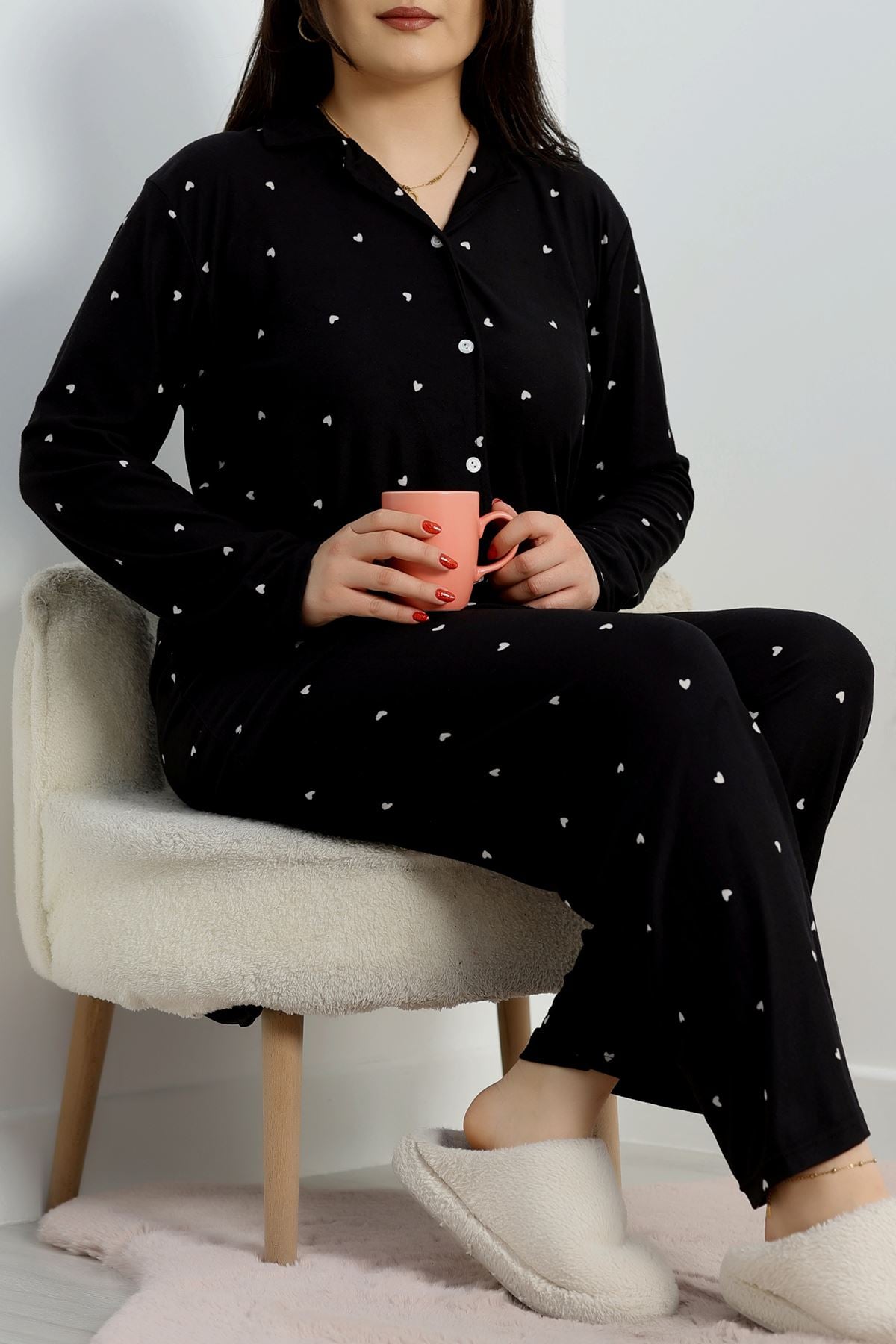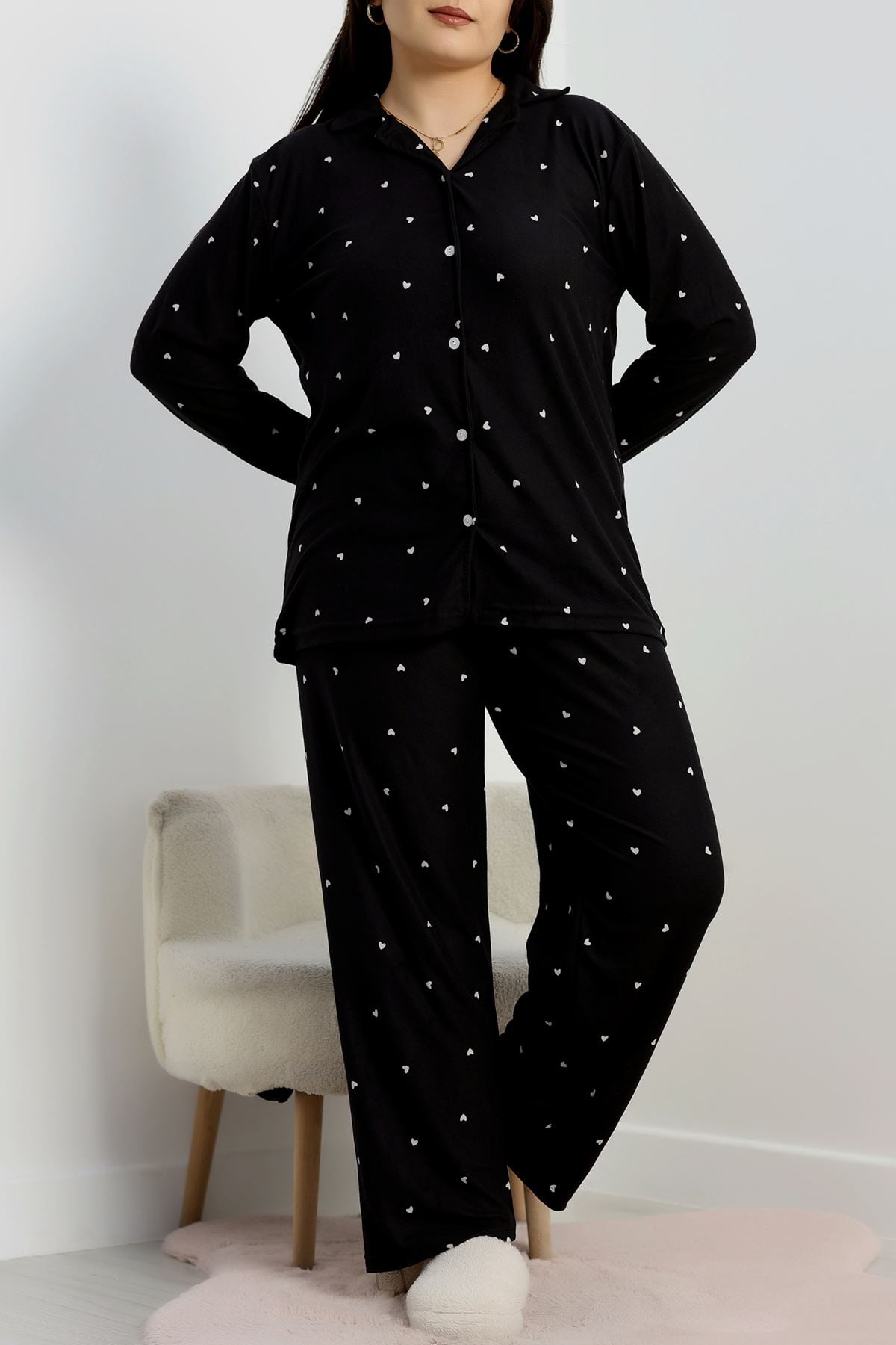 Büyük Beden Süet Düğmeli Pijama Takımı Siyahkalp - 455.1287.